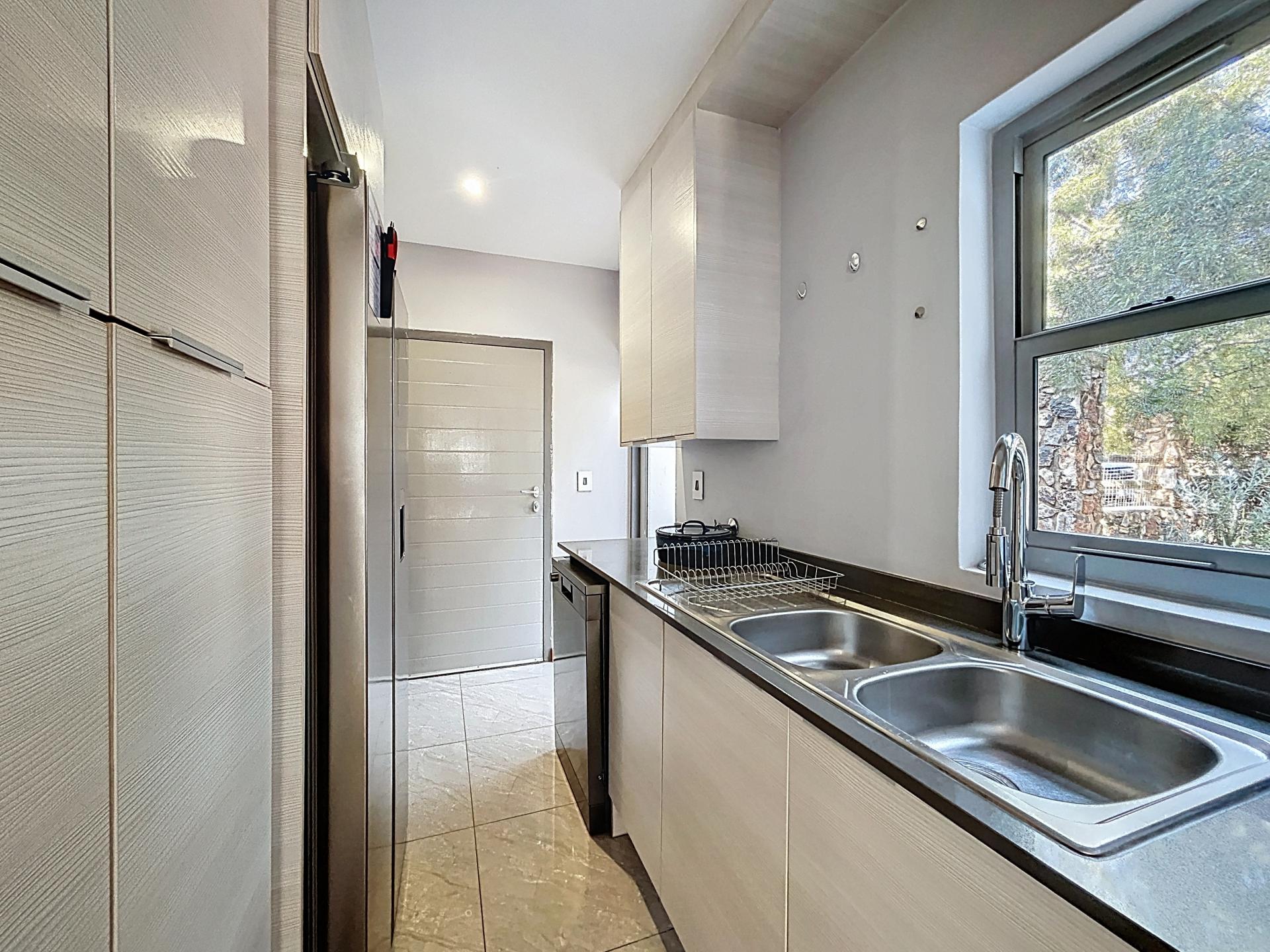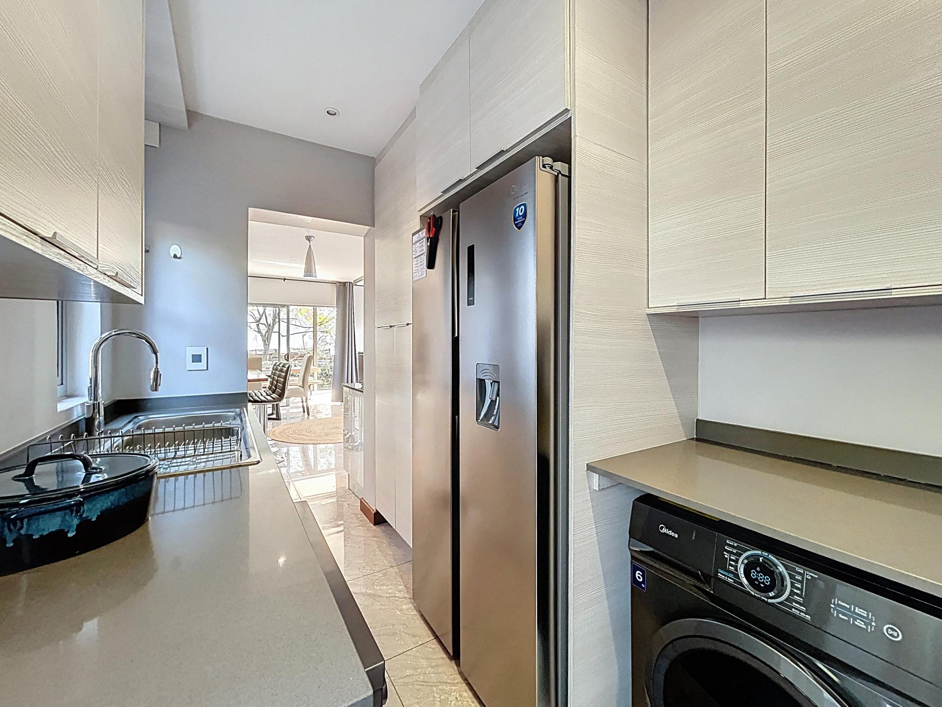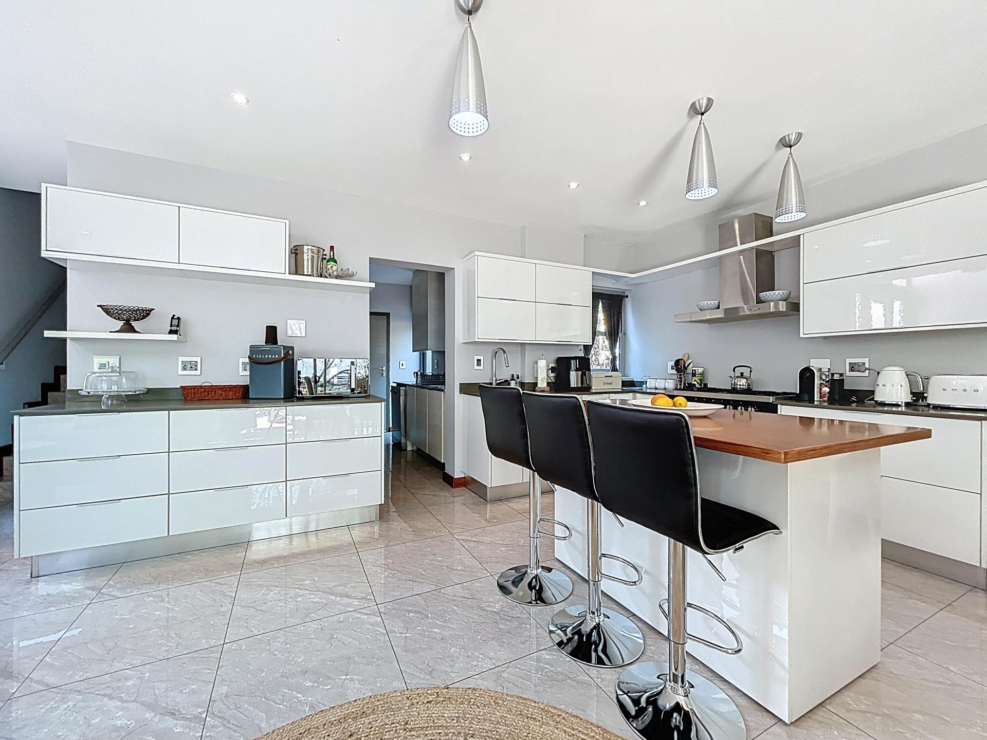 The ground floor level boasts with a seamless flow of an open-plan lounge, dining room and modern kitchen that offers the ideal space for entertaining. Porcelain tiles , high ceilings and large glass windows for natural light rounds off this picture perfect space.