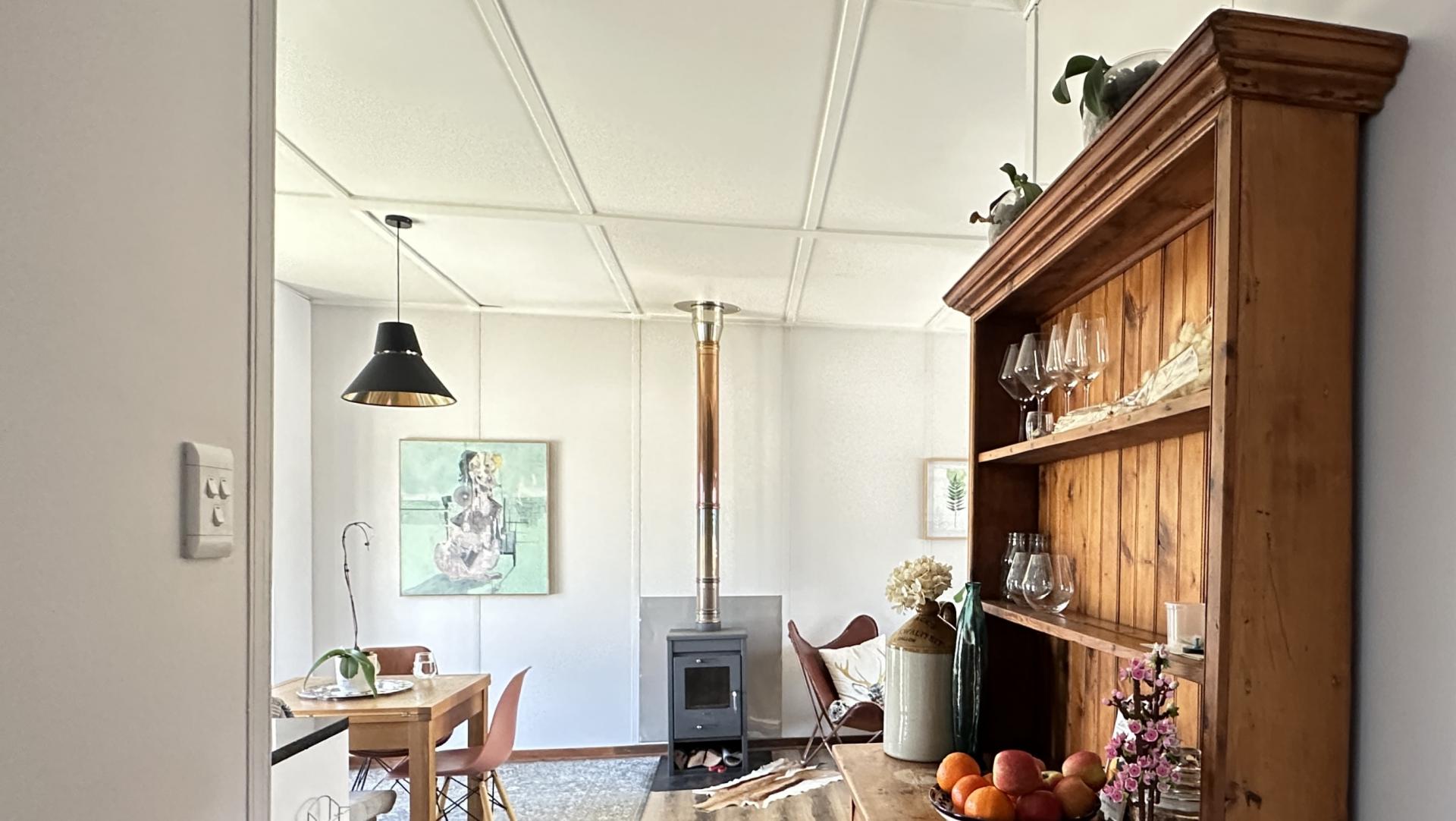 Combustion stove in living areas and a 5 kW Solar system. 5000- liter Water tank.