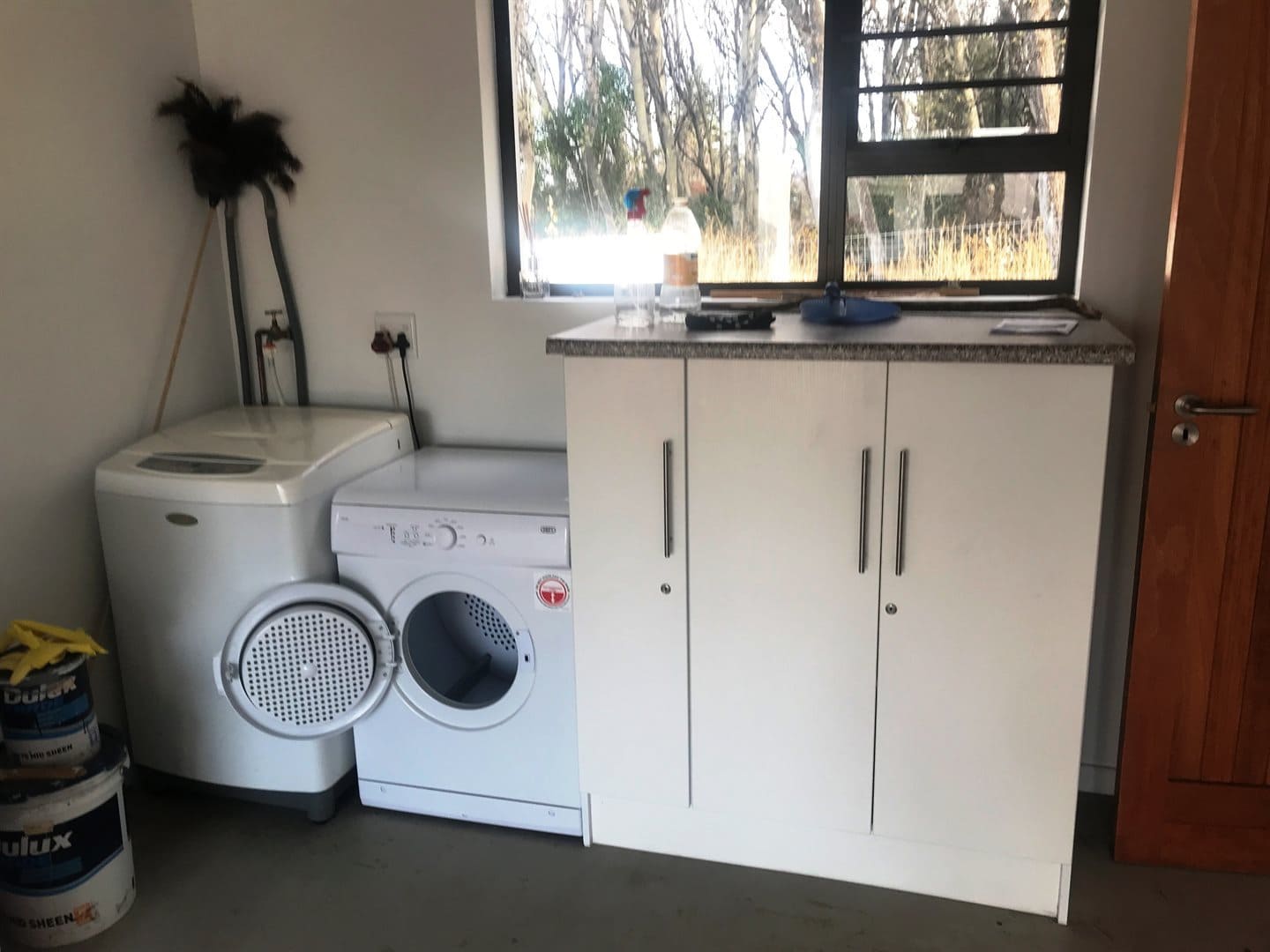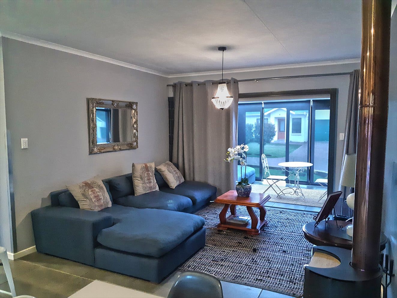 Open plan lounge with beautiful kitchen and an extra sunroom. Undercover braai with a forest tree line in front. Remote-controlled lock-up garage with washing machine connections.