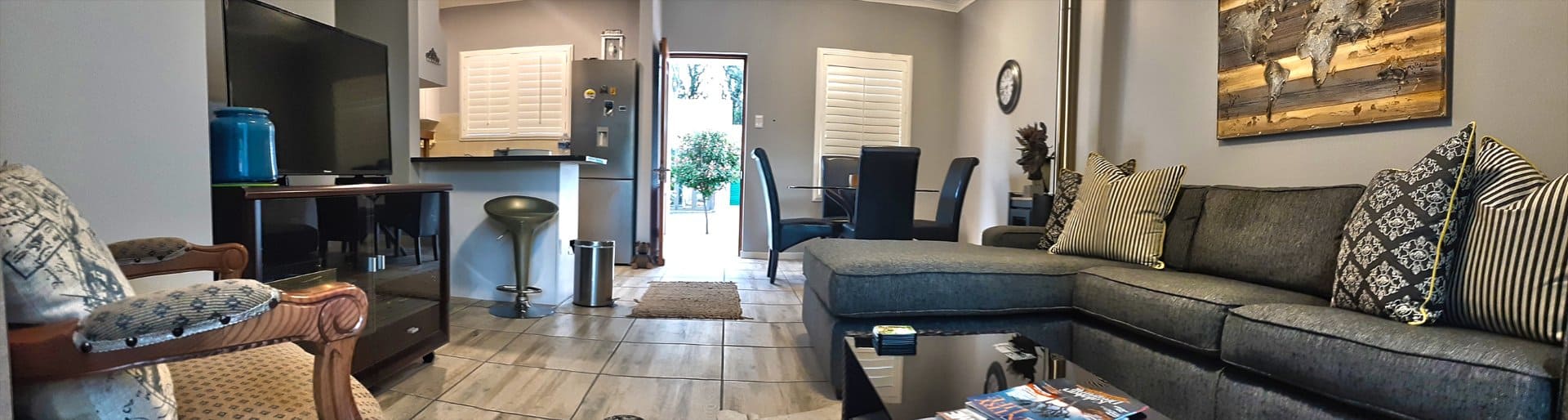 The home is finished with beautiful modern tiling and roll-up blinds. Fully furnished, linen excluded.