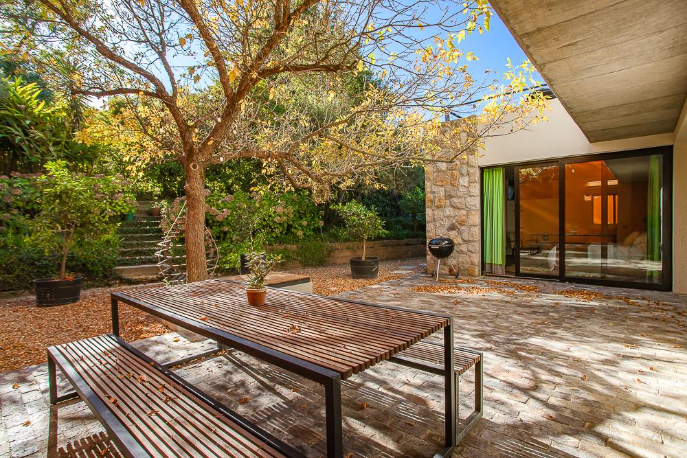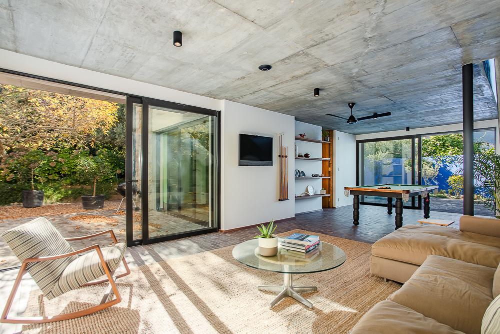 Perfect for entertaining, the downstairs living area flows to two patios—one for dining under the stars, the other for lounging by the pool. The lush garden and sparkling pool are enclosed for privacy and peace of mind.
