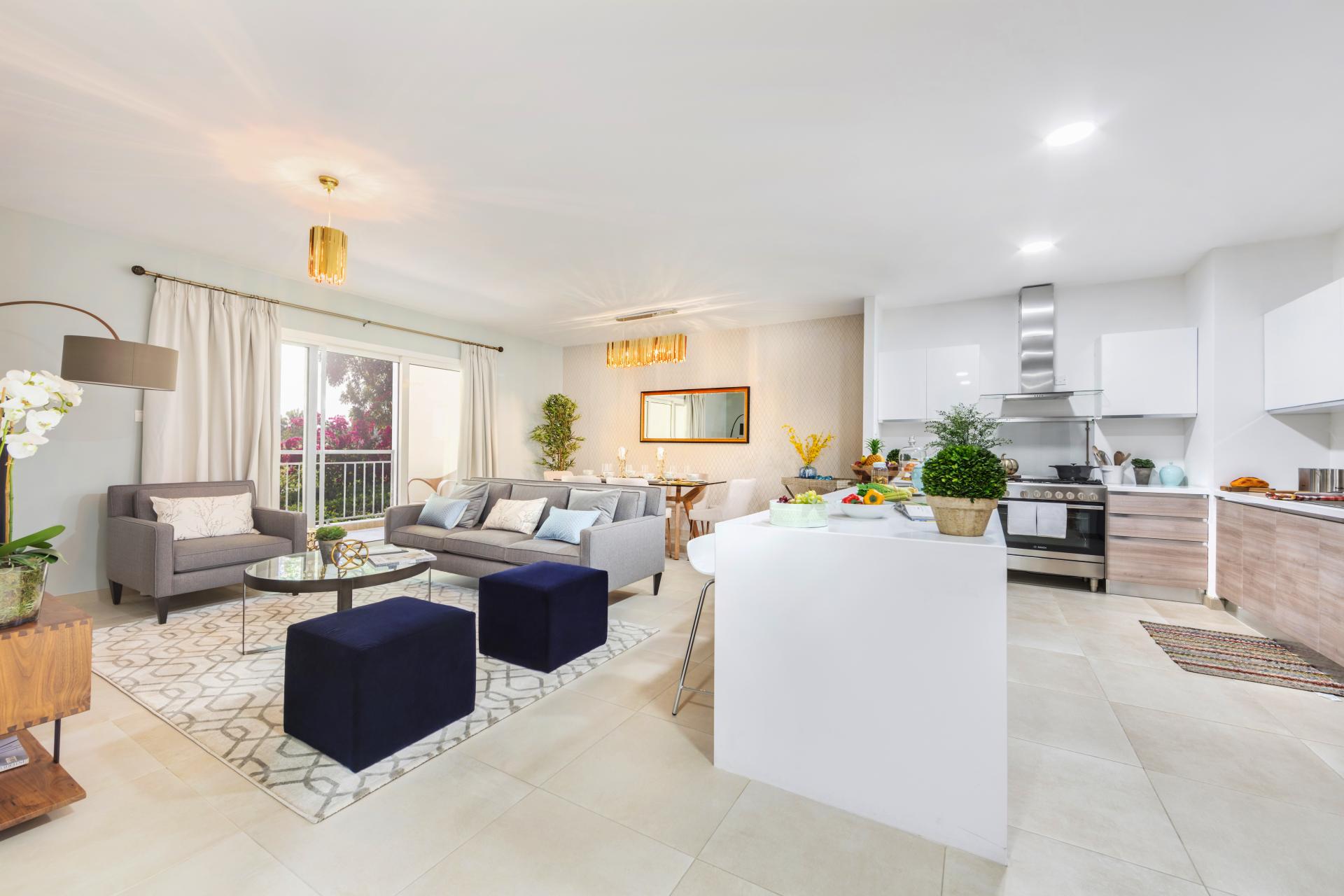 This ‘Ready to Move in’ apartment comprises of three bedrooms, a study room and a large living room with an open kitchen. The large covered terrace allows for an indoor-outdoor lifestyle and bring the green of the golf course very close to residents. The community living here enjoys wellness and fitness facilities, entertainment and large dining choices.