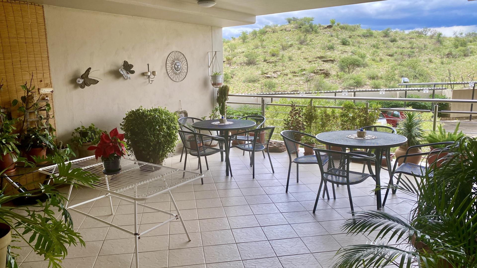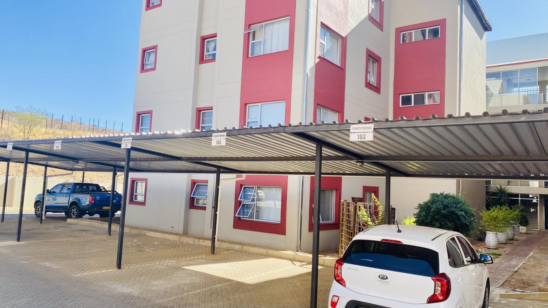 Security is paramount at Auas Hills, with boundary walls, CCTV cameras, and round-the-clock guards providing peace of mind for residents. While the complex may not accommodate pets, the convenience of an allocated carport near the unit adds to the overall appeal.