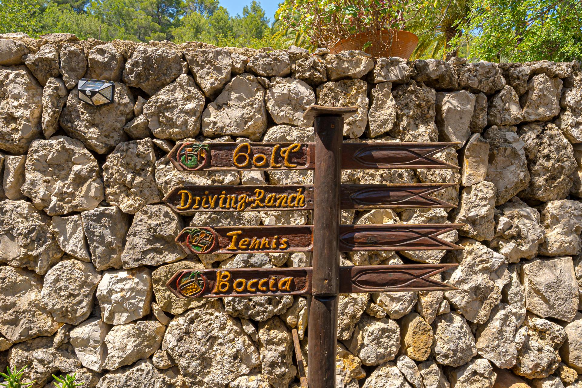 - Tennis court, Mini-golf course, Archery range, Garden Chess