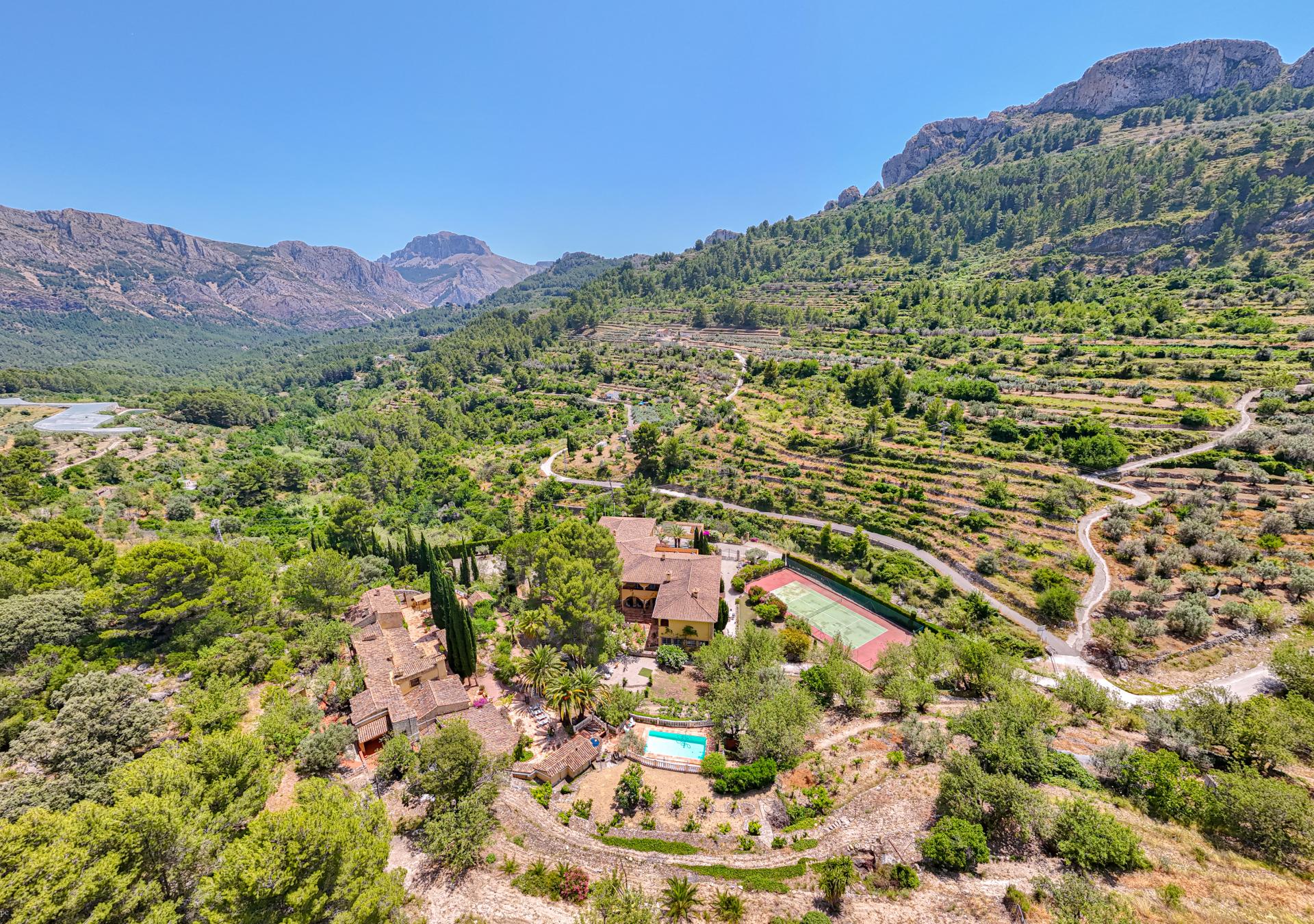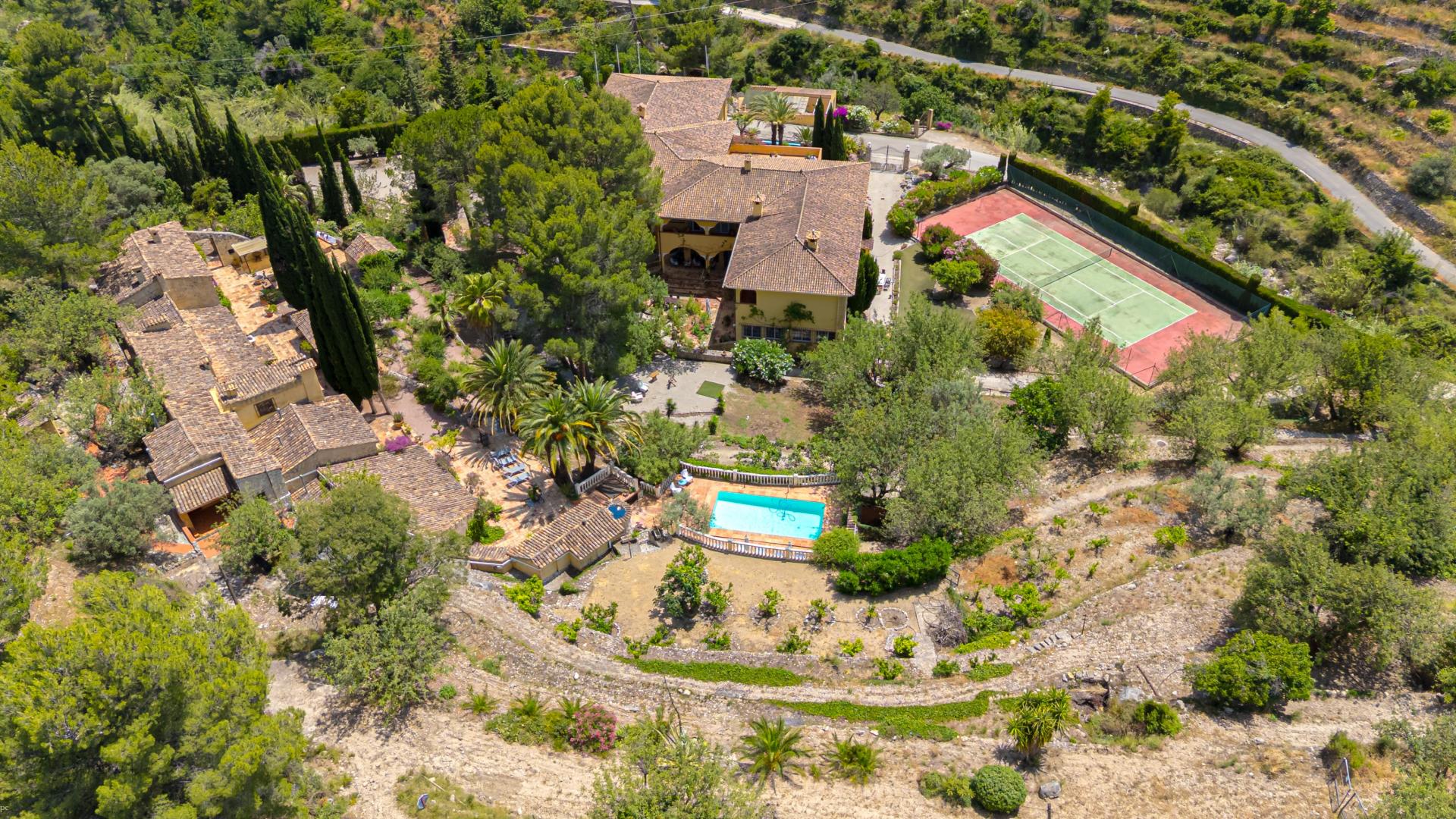 PROPERTY AT A GLANCE A rare sanctuary of privacy, nature, and Mediterranean grandeur, this remarkable country estate—set within more than 40,000 m² of tranquil, landscaped grounds with a main residence of 1,500m2 and a guest finca of 750m2—offers an exceptional blend of refined living, timeless charm, and boundless possibility. Comprising two independent residences—a grand, elegant main villa and a rustic, character-filled finca—this is a lifestyle destination designed for connection, celebration, and calm.