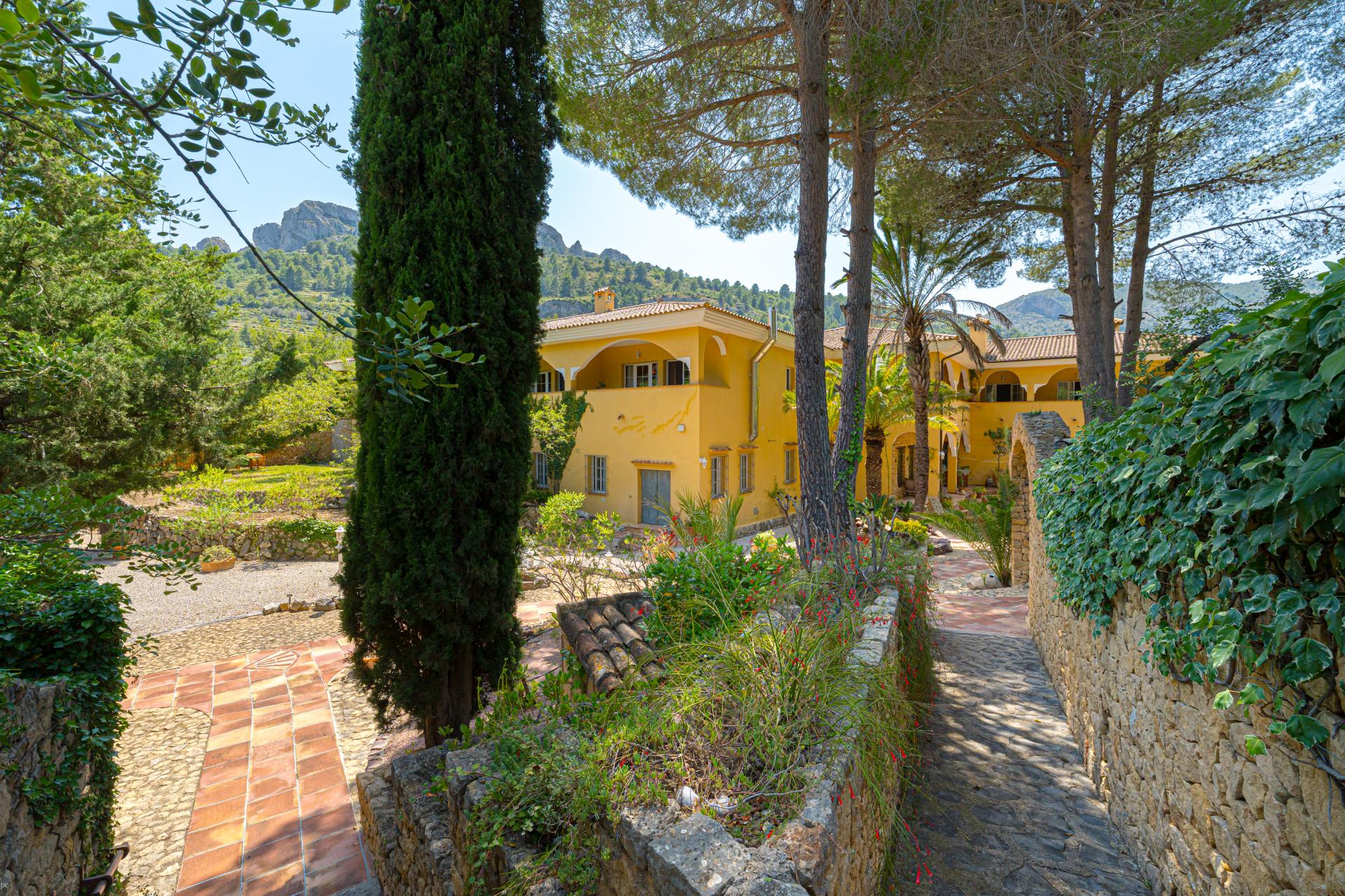 PROPERTY DETAILS A HOME ROOTED IN HERITAGE, RICH IN DETAIL Set against the dramatic backdrop of the Serra de Bèrnia, the estate's architectural identity draws from Spain’s Moorish and Mediterranean traditions—earth-toned walls, clay tile roofs, hand-forged ironwork, and soft arches that frame mountain and garden views alike.