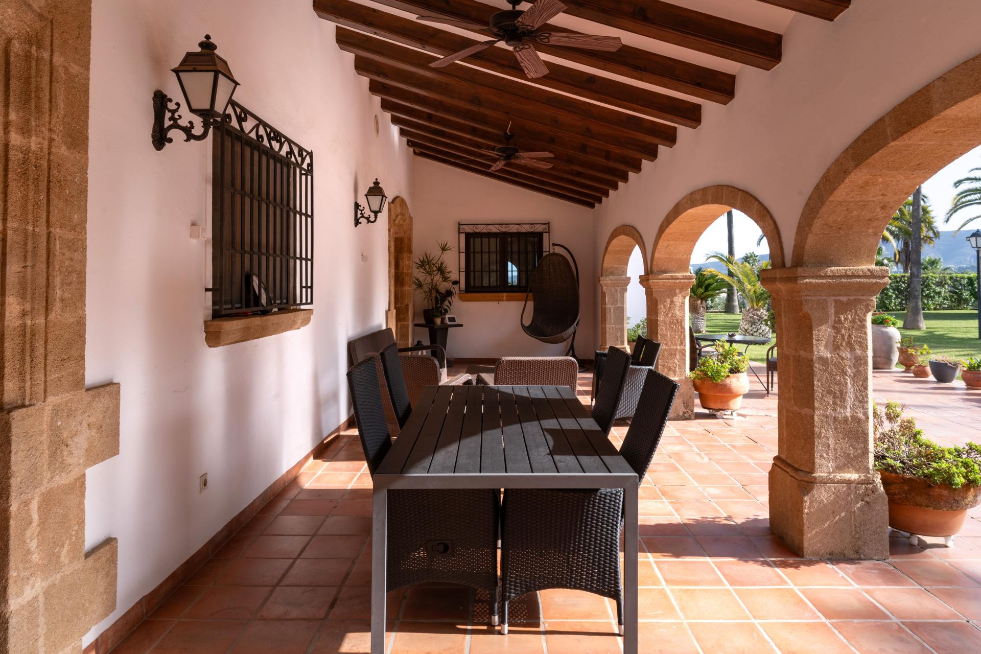 PROPERTY DETAILS Architecture & Design This exceptional home is a celebration of Jávea’s architectural legacy, elegantly composed using authentic materials that reflect the rich cultural heritage of the region. Encased within Tosca stone archways, the villa’s pristine white façade and terracotta tiled roof convey the essence of Mediterranean tradition, while the arched wooden entrance—framed in carved local stone—ushers guests into a world of refined grandeur. The layout is thoughtfully arranged around a central courtyard and expansive covered terraces, including a magnificent riu-rau with signature archways that speak to the property’s historic roots.