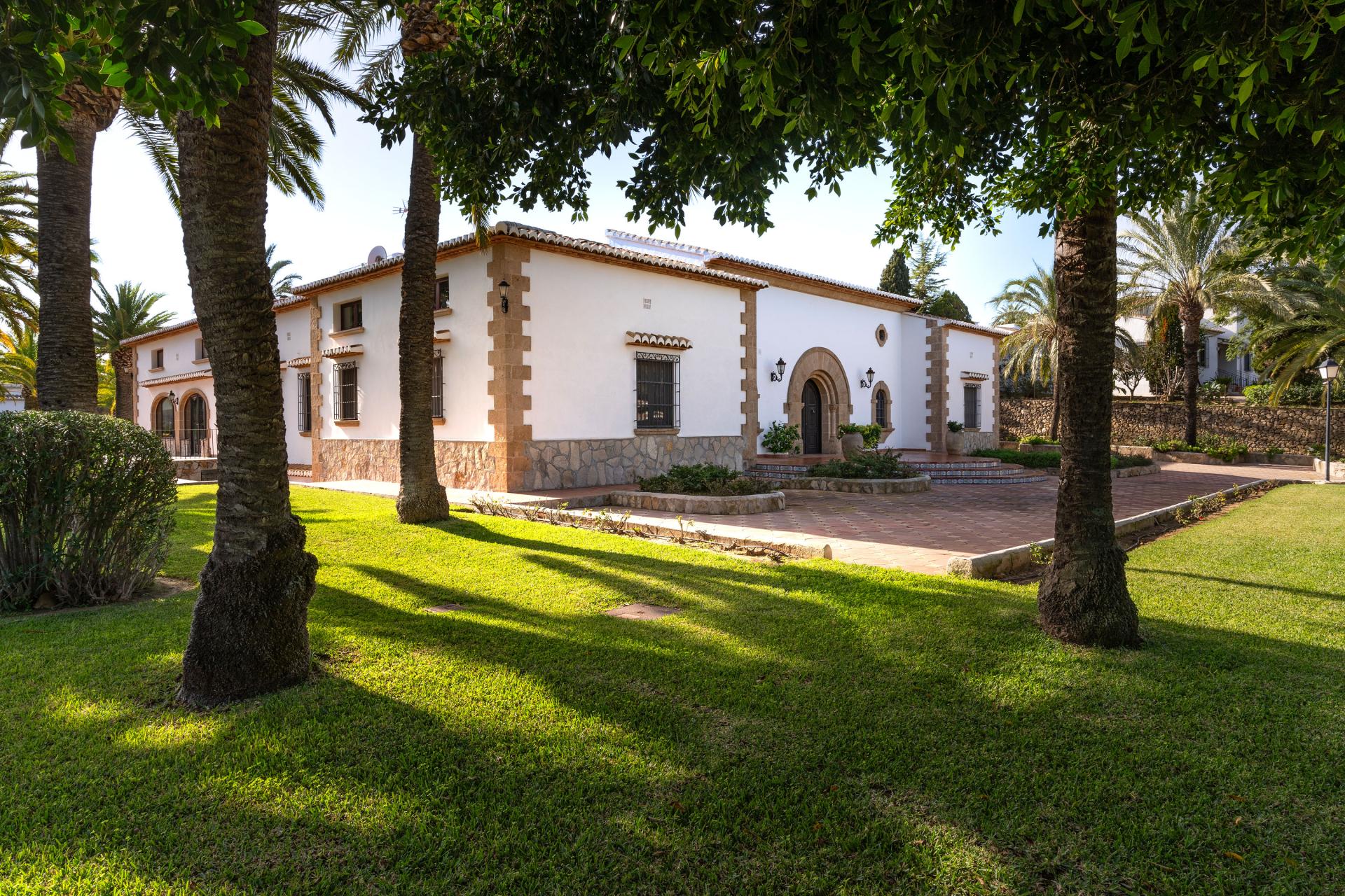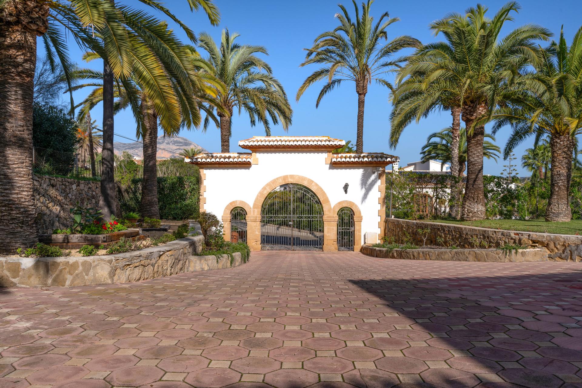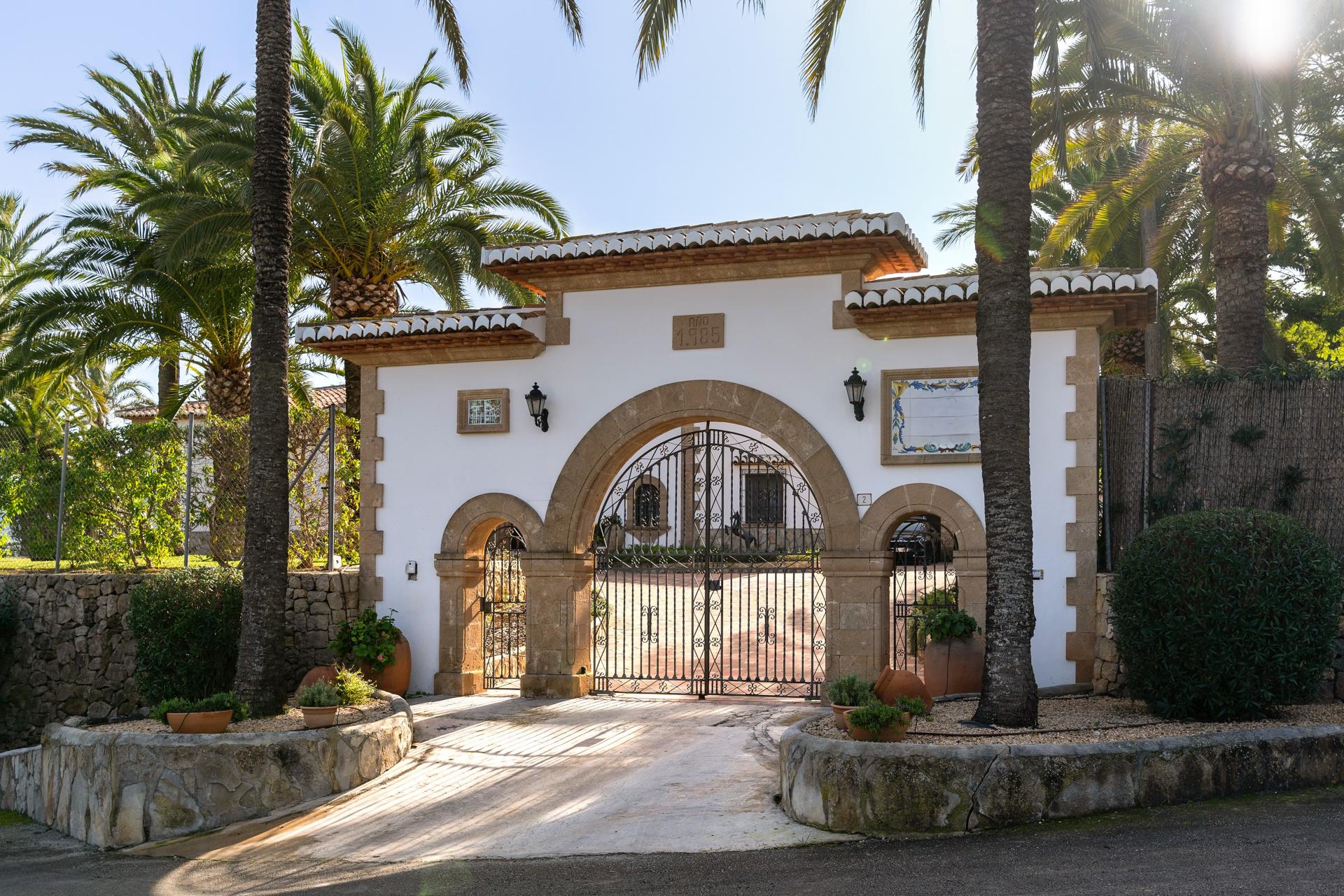 PROPERTY AT A GLANCE A landmark estate of rare distinction, this exceptional Mediterranean villa fuses timeless Spanish architecture with the authentic character of Jávea’s heritage. Privately positioned on a vast 5,835m² plot within one of the area’s most prestigious enclaves, the property exudes elegance from its grand gated entrance to its sweeping landscaped gardens bordered by over 150 palm trees. A masterclass in traditional design, it showcases hallmark features such as Tosca stone arches, hand-carved wooden doors, terracotta roof tiles and riu-rau architecture. With over 1,000m² of living space, 13 bedrooms, and multiple entertaining areas, this magnificent residence is an extraordinary sanctuary offering both serenity and stature in equal measure—just minutes from Jávea Golf and the golden sands of Arenal Beach.