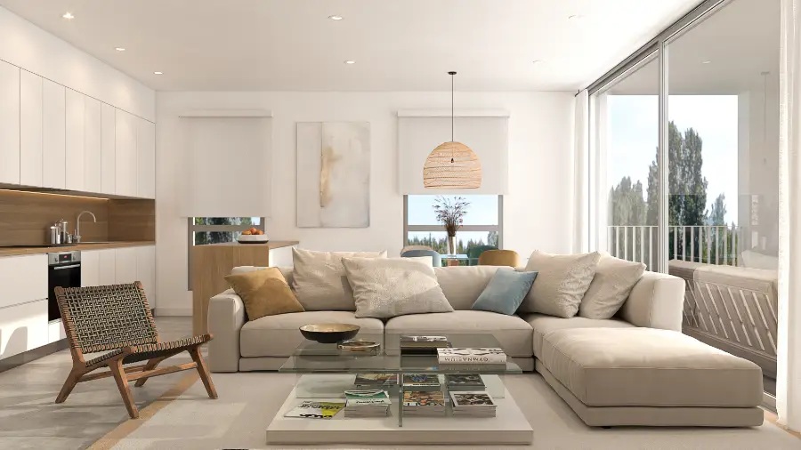 PROPERTY DETAILS Each residence is crafted with high-end materials and finishes, offering a sophisticated yet comfortable living experience. Apartments are designed with meticulous attention to detail, featuring furnished kitchens equipped with top-brand appliances, PVC exterior carpentry, Climalit glazing, Stadip safety glass, and an aerothermal air conditioning system for energy efficiency and sustainability. Large windows flood the interiors with natural light, enhancing the sense of space and connection to the surrounding landscape.