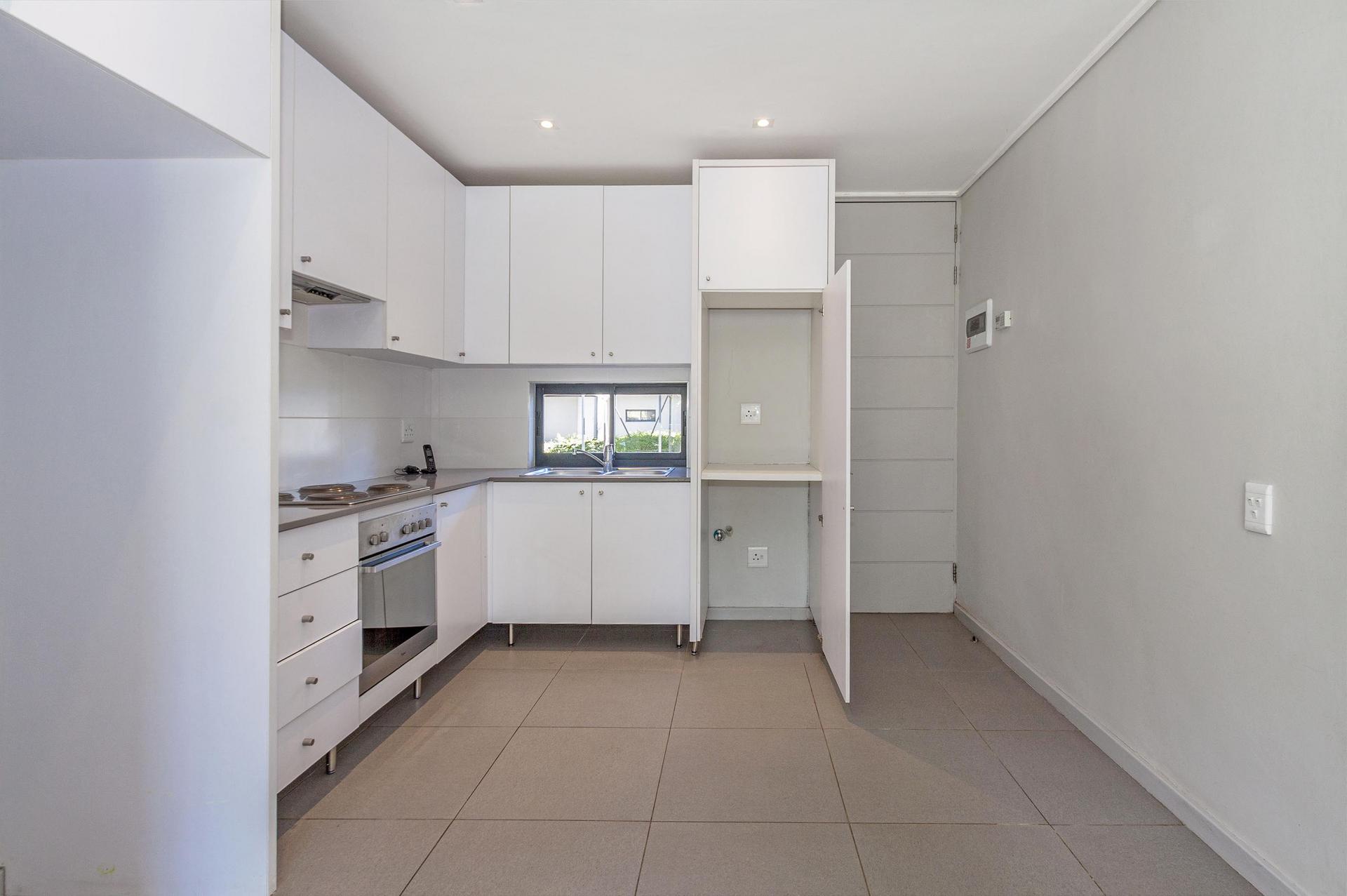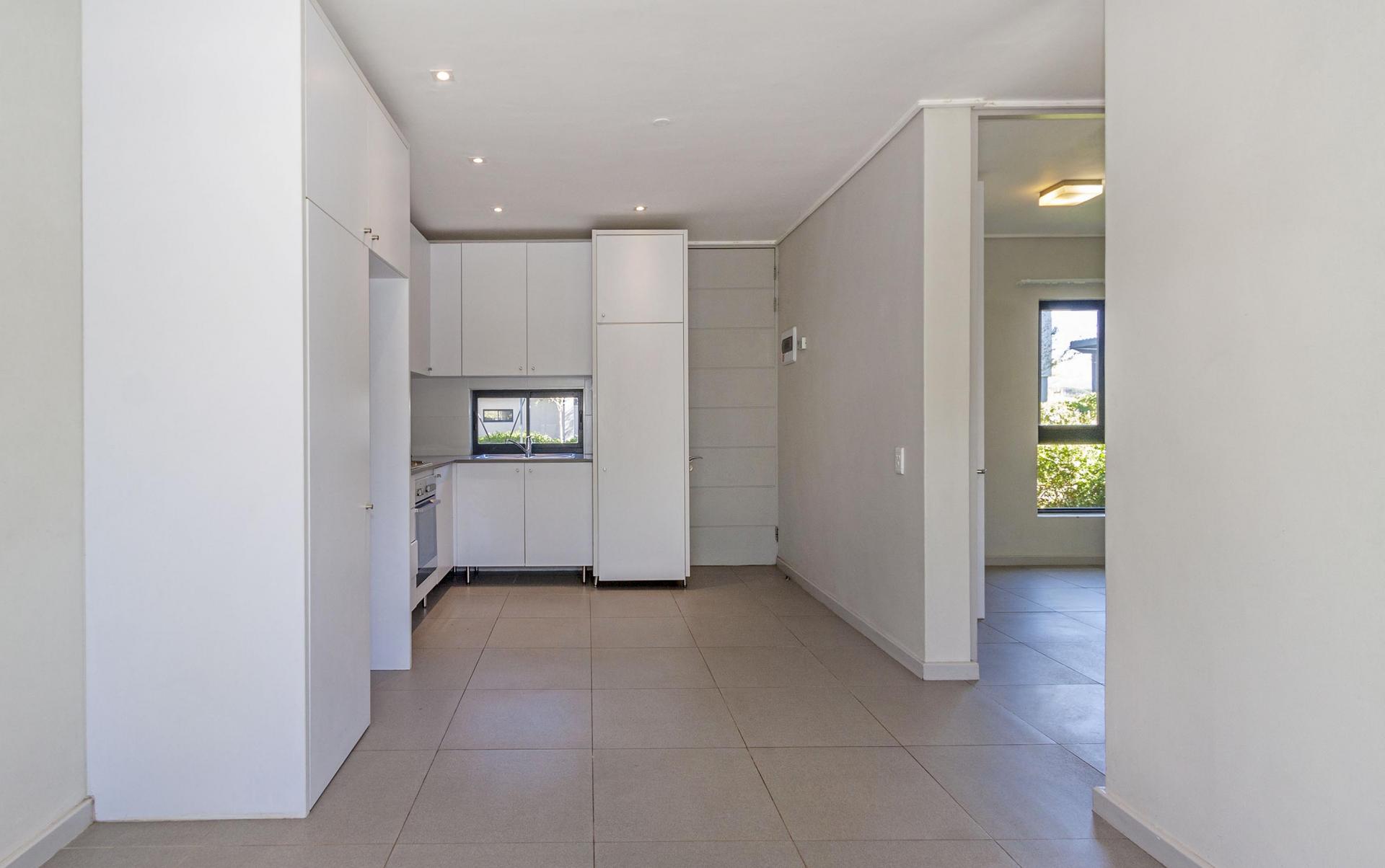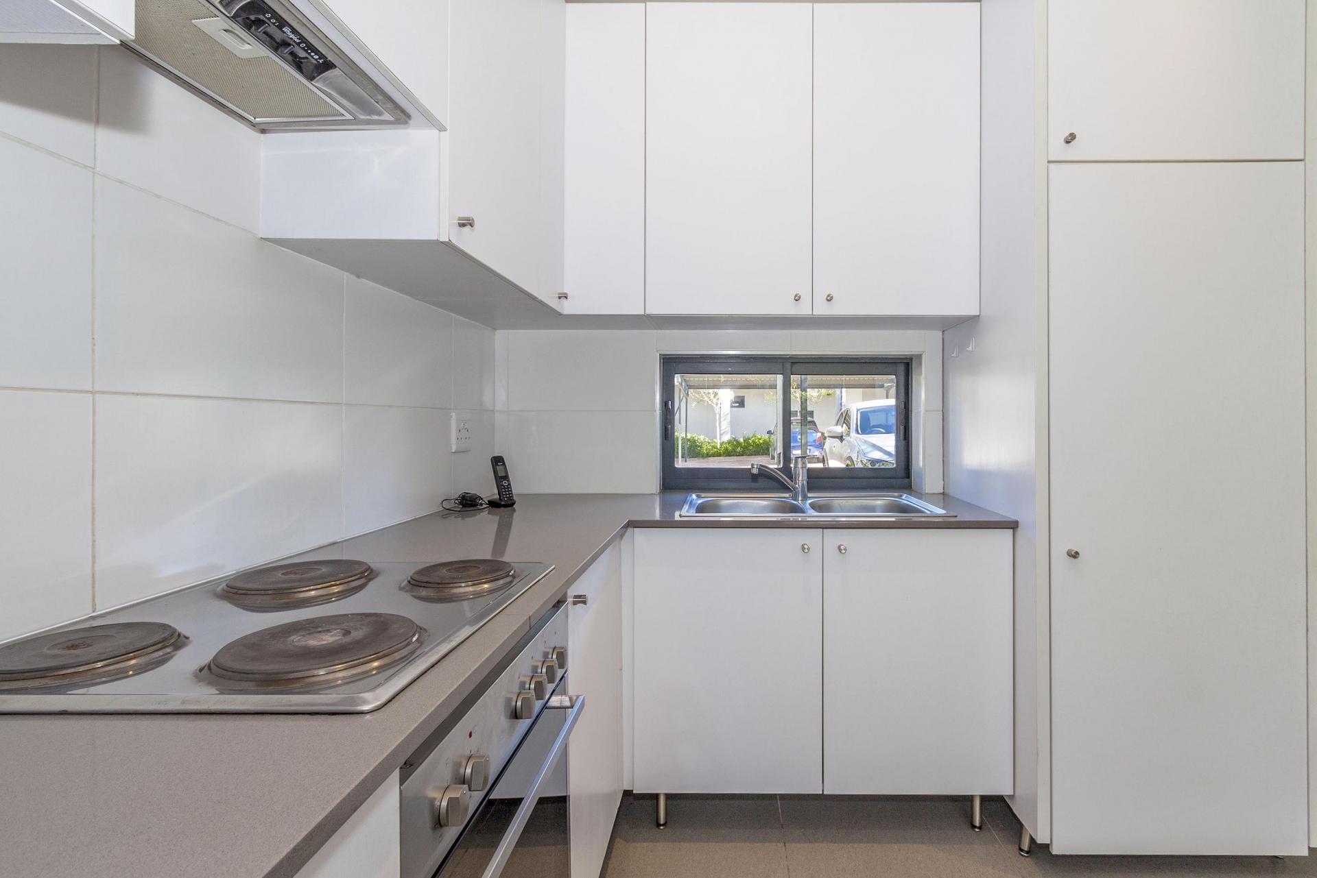 Both bedrooms comfortably fit double beds, and the well-appointed bathroom features a bath, shower, basin, and toilet. The modern kitchen includes ample storage and a concealed cupboard with space for two front-loading appliances.