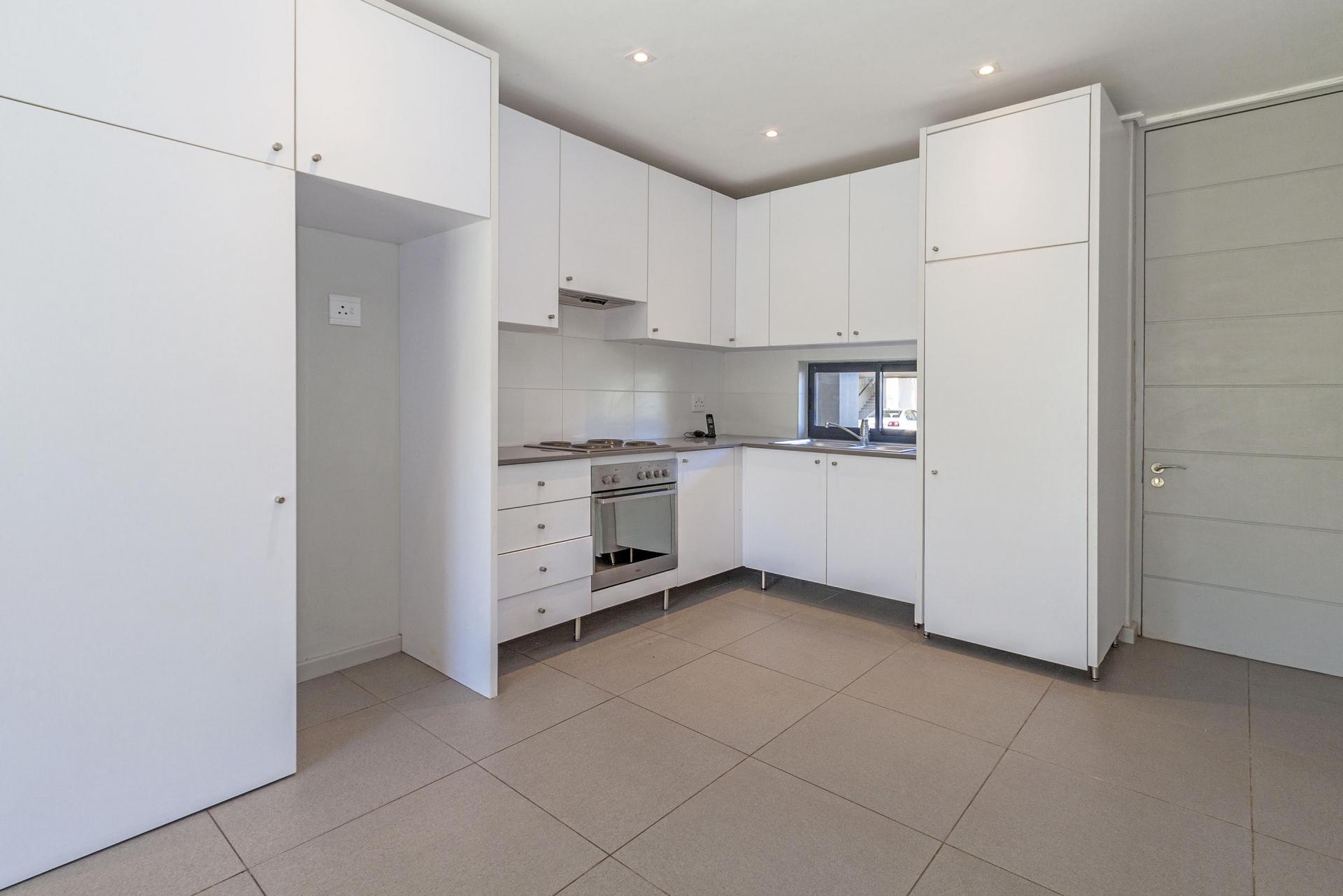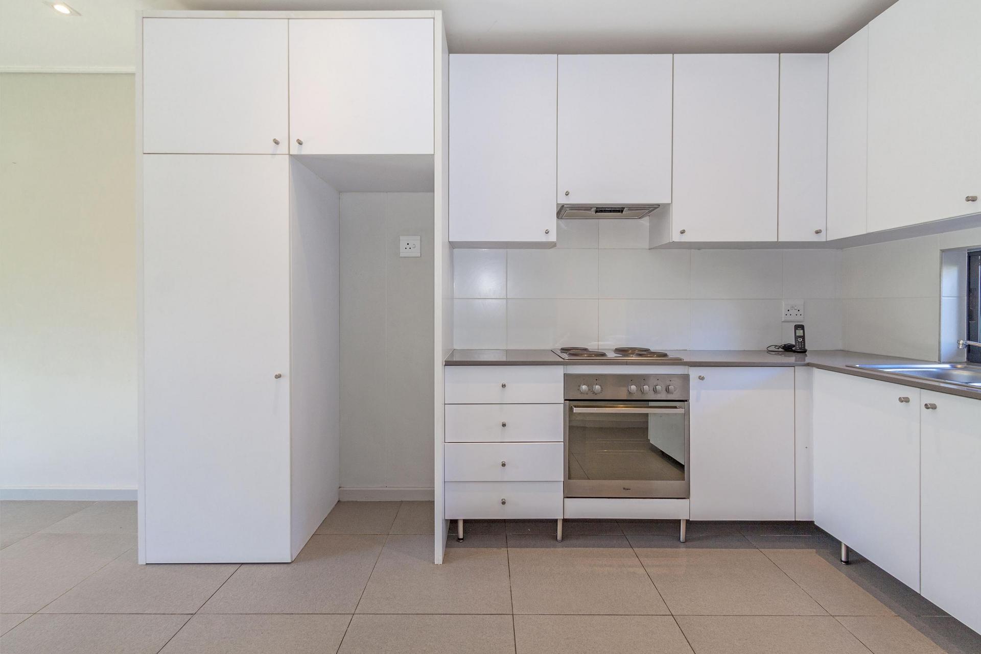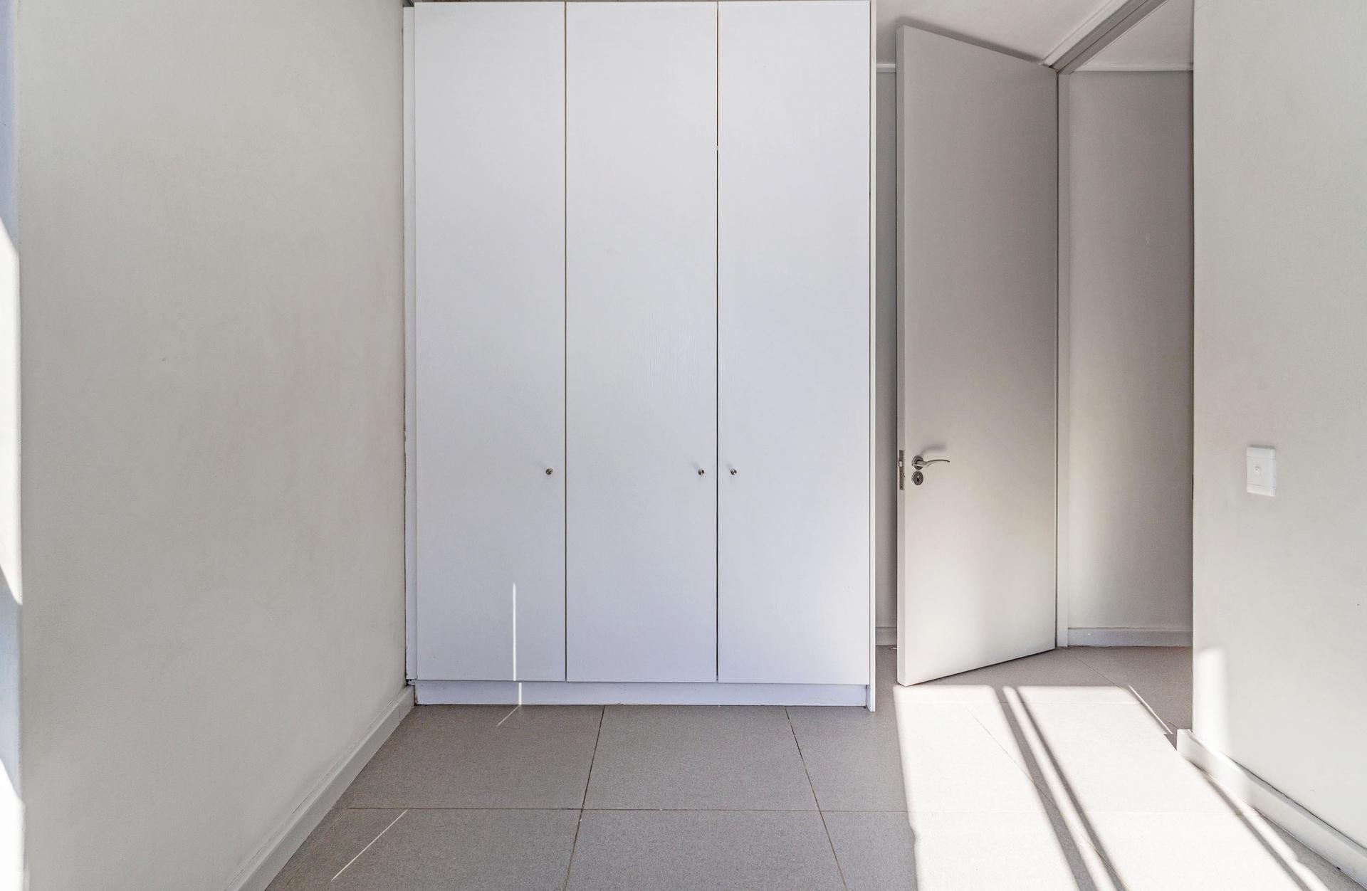 Both bedrooms comfortably fit double beds, and the well-appointed bathroom features a bath, shower, basin, and toilet. The modern kitchen includes ample storage and a concealed cupboard with space for two front-loading appliances.