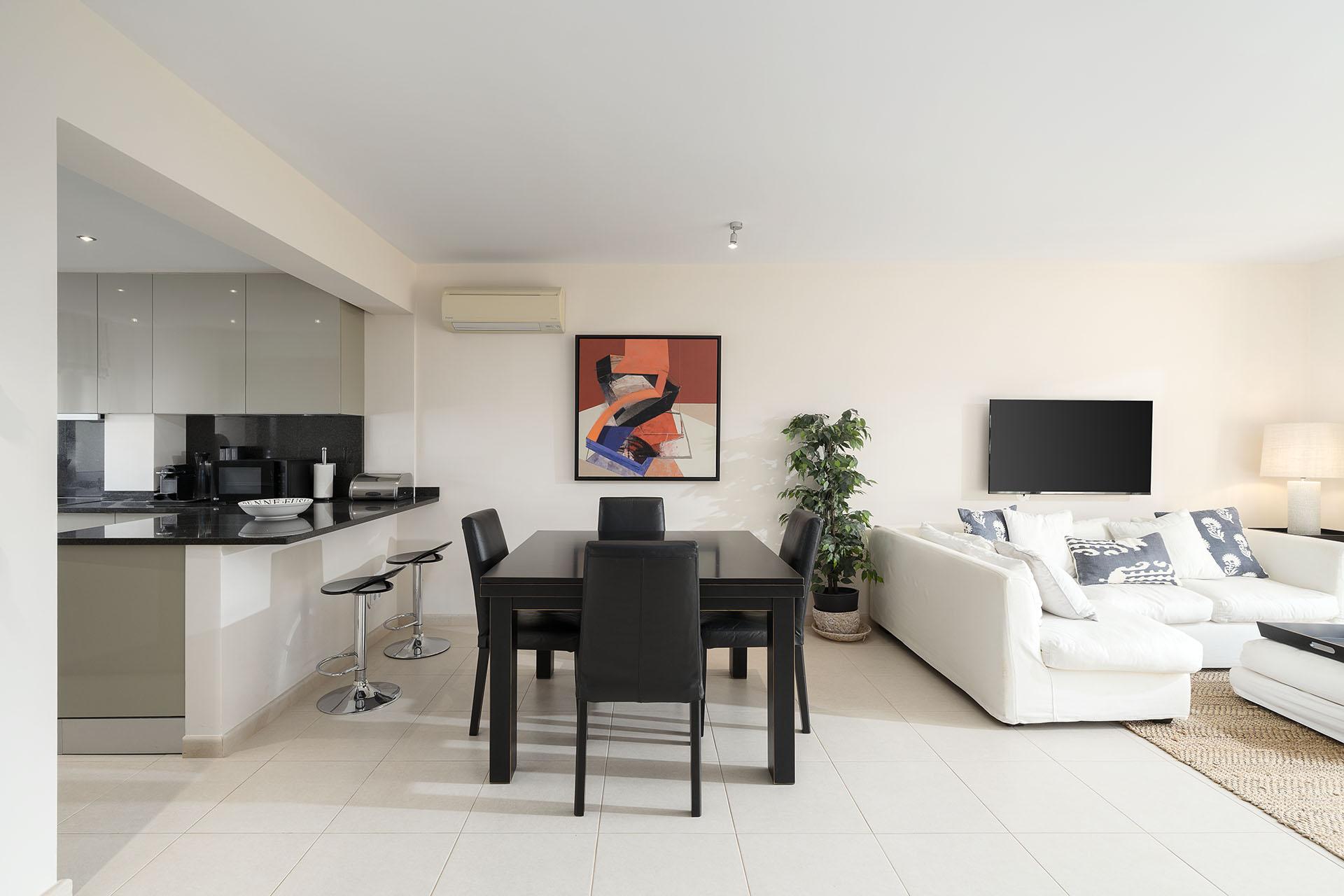 Modernly refurbished to an impeccable standard, this wonderful 2-bedroom luxury first-floor apartment is an absolute gem in the esteemed resort of Quinta do Lago. With its sleek design and contemporary finishes, this property effortlessly combines style and comfort, offering a truly exceptional living experience.