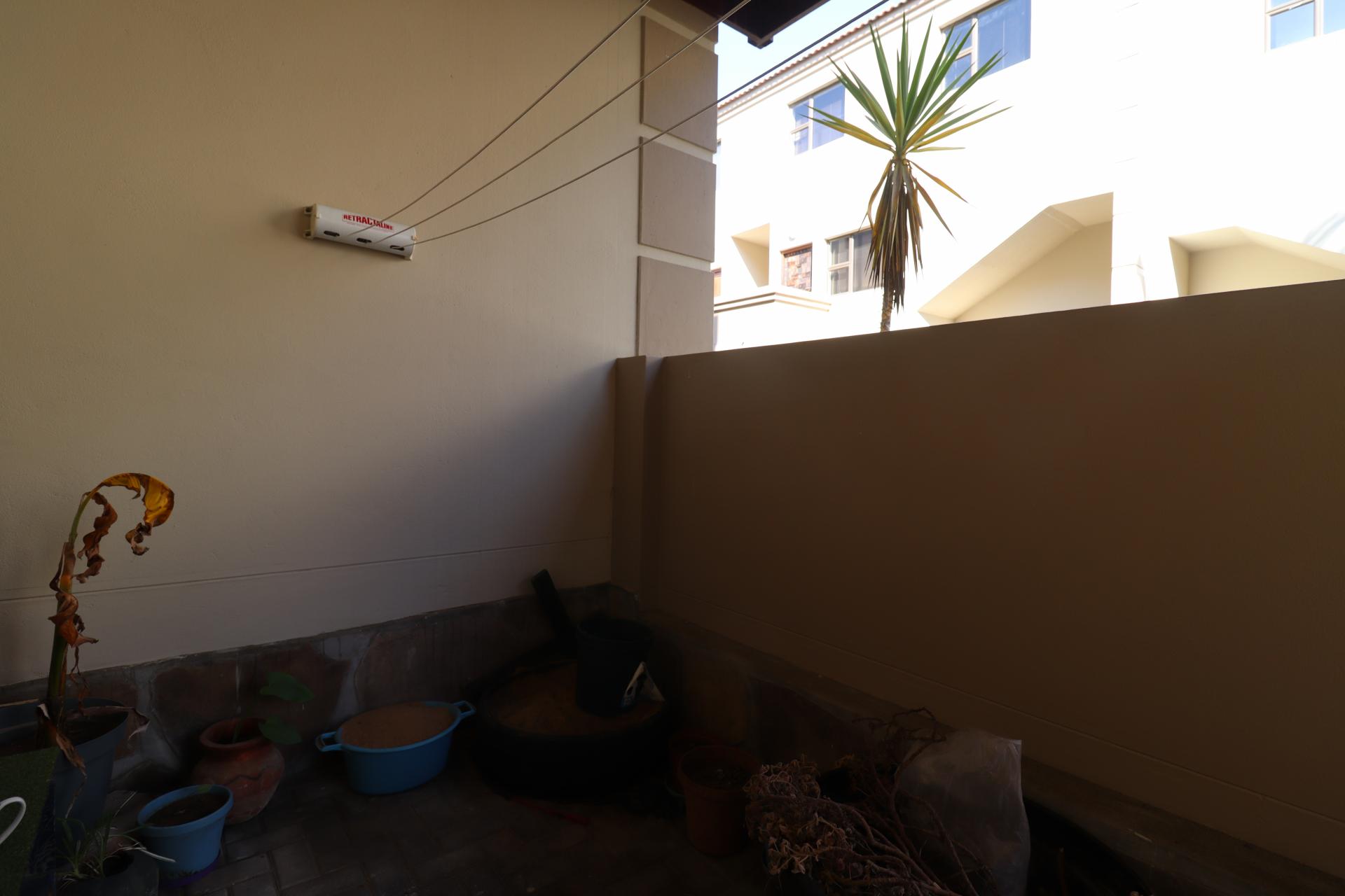Double garage with remote automated garage door. Small courtyard at the back of the garage for washing or small garden.