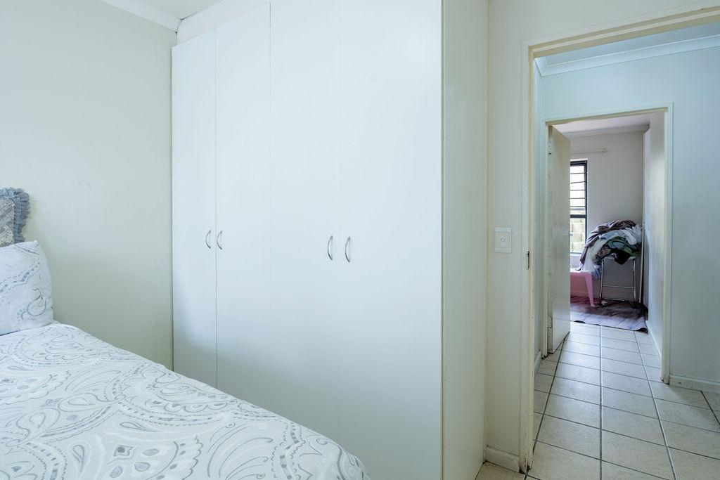 The unit offers open-plan kitchen and lounge living spaces and a bathroom that is fitted with a bath, basin and toilet. The main bedroom is generously sized, while the second bedroom is ideal for a single or ¾ bed — both featuring built-in cupboards.