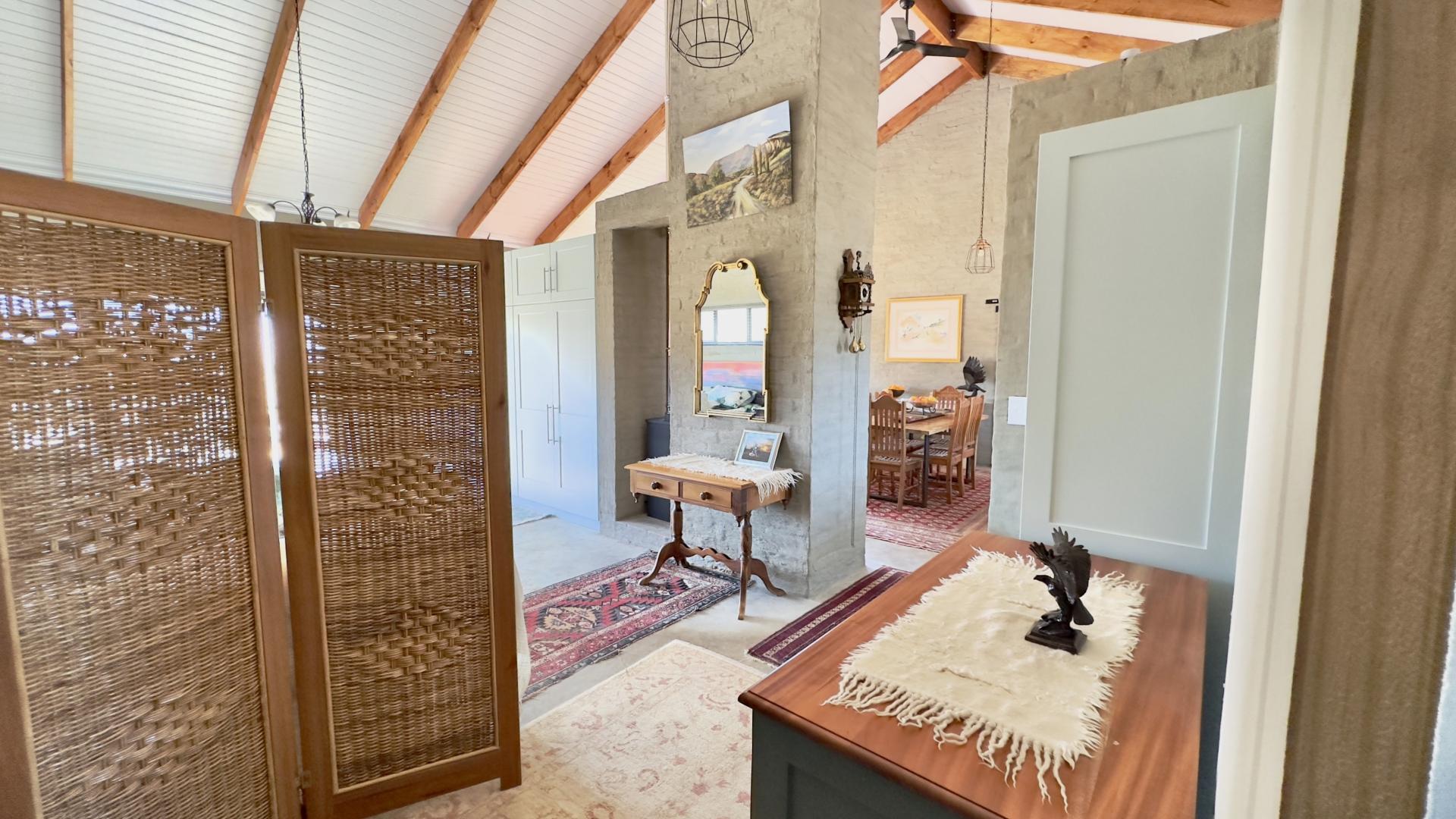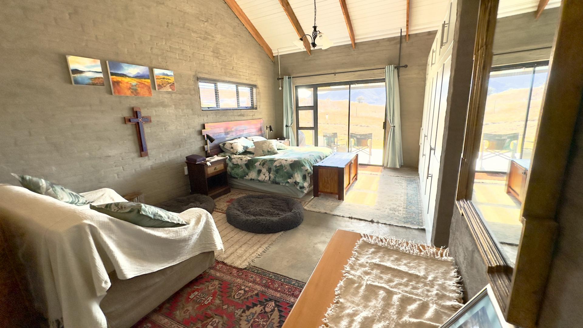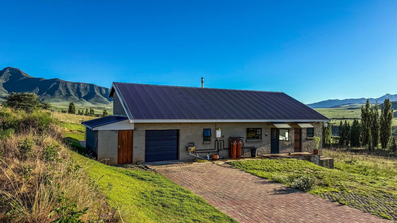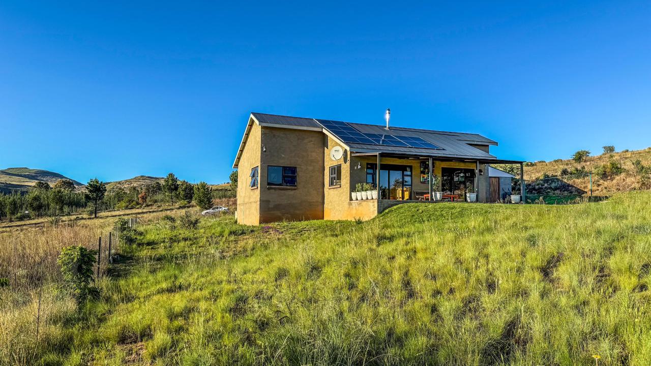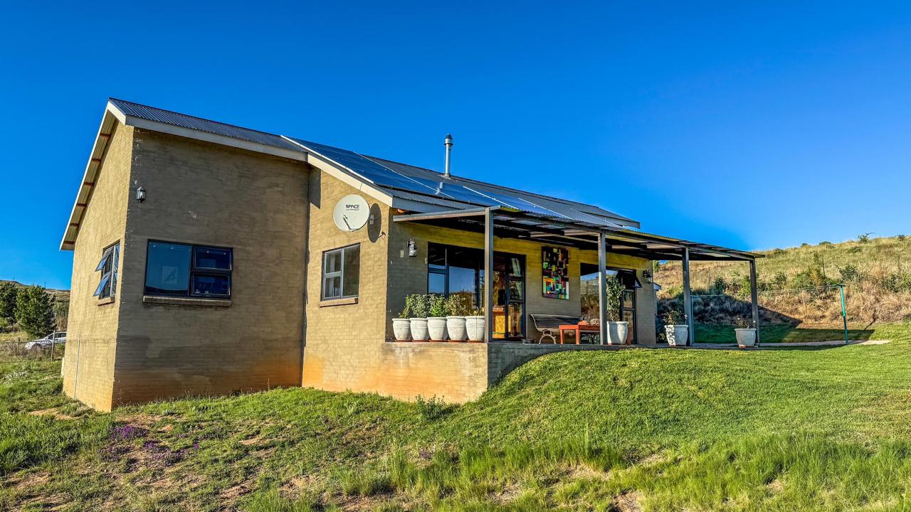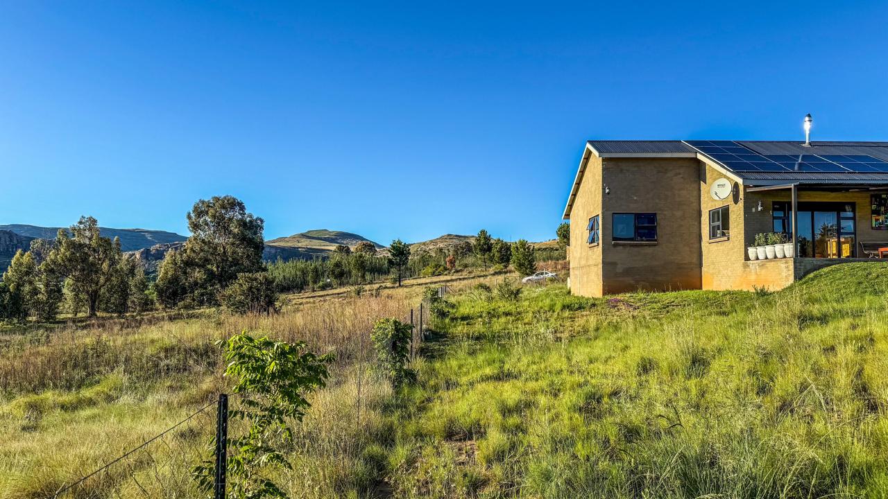 A truly unique and well-built property located in the heavenly surroundings of Clarens. A short 4.5 km from Clarens Town and Golf Estate lies this owner-planned and built, north-facing fully self-sustainable home with solar panels, gas and borehole water.