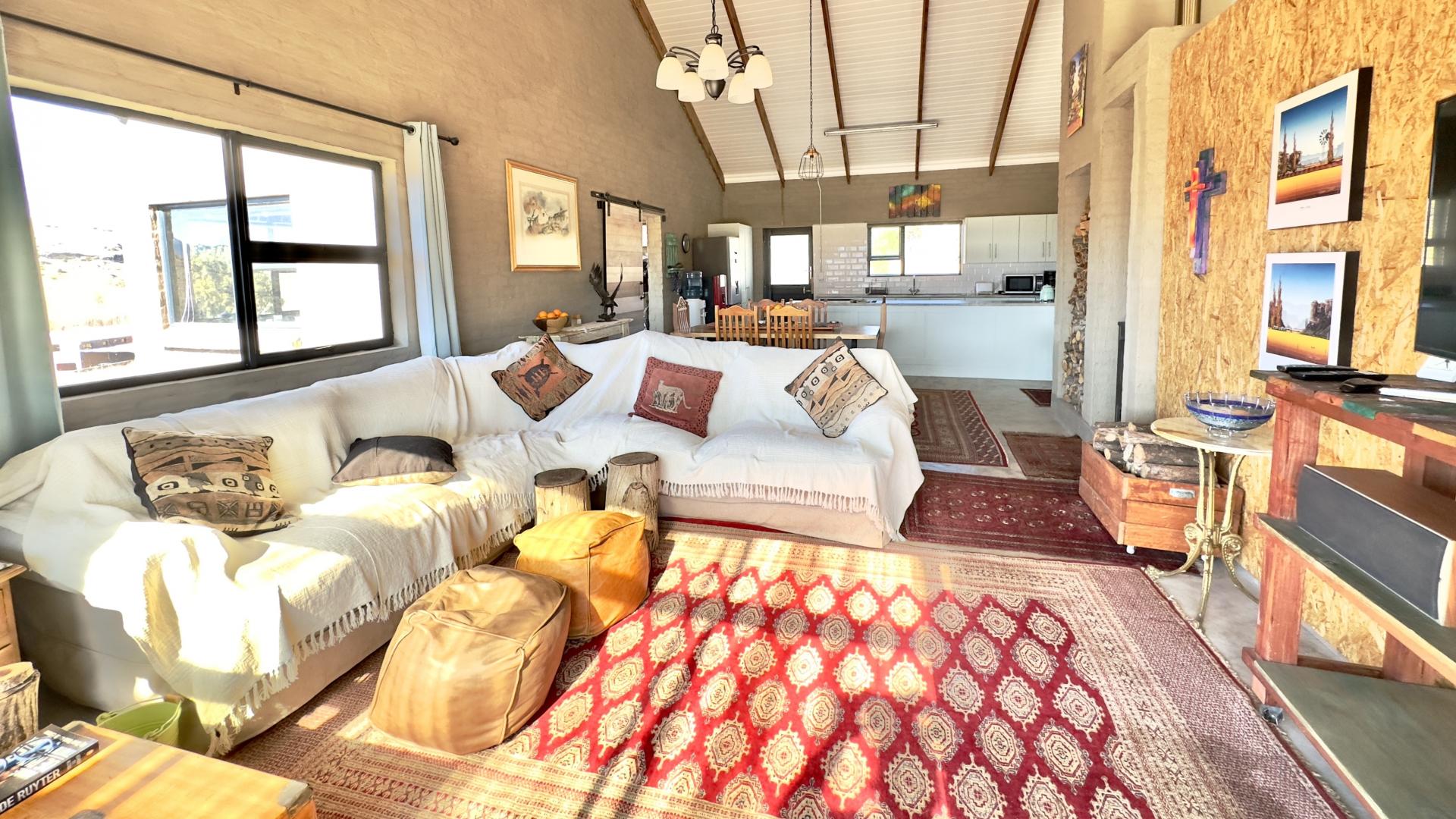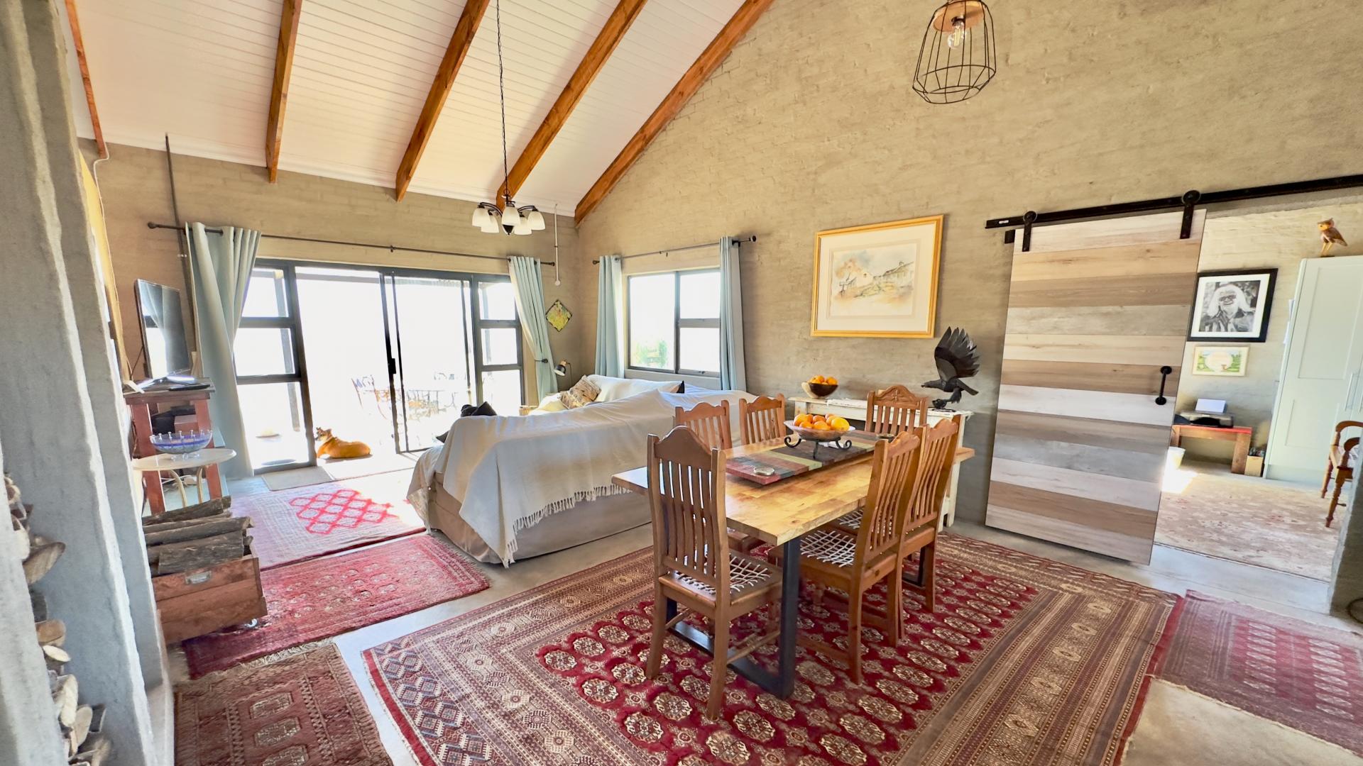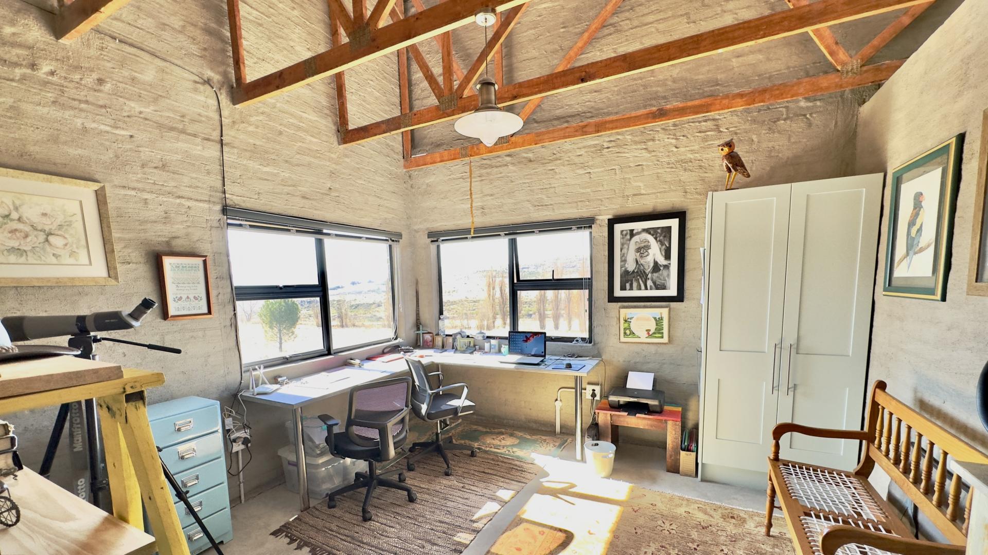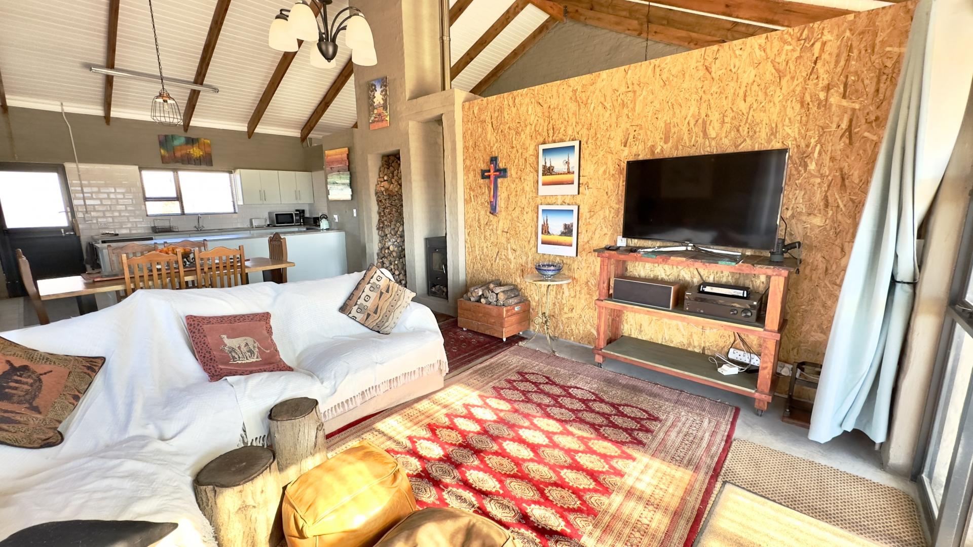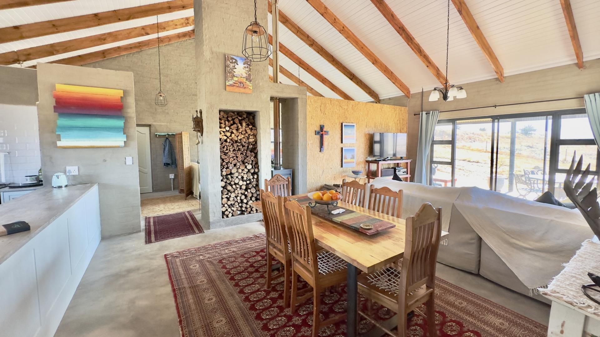 A truly unique and well-built property located in the heavenly surroundings of Clarens. A short 4.5 km from Clarens Town and Golf Estate lies this owner-planned and built, north-facing fully self-sustainable home with solar panels, gas and borehole water.