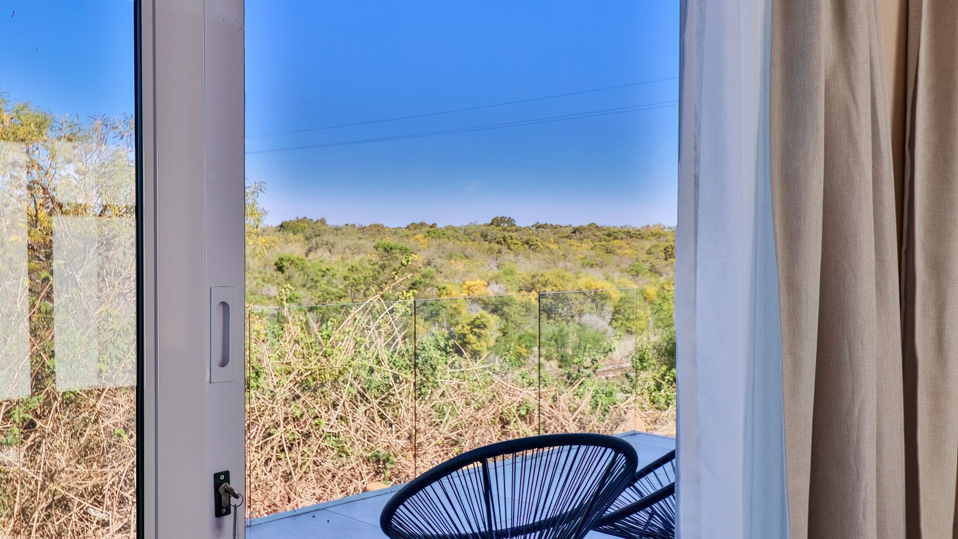Step outside from the living area onto a charming patio, where you can unwind and enjoy breathtaking views of the tranquil Onrus River with the sound of the ocean in the background.