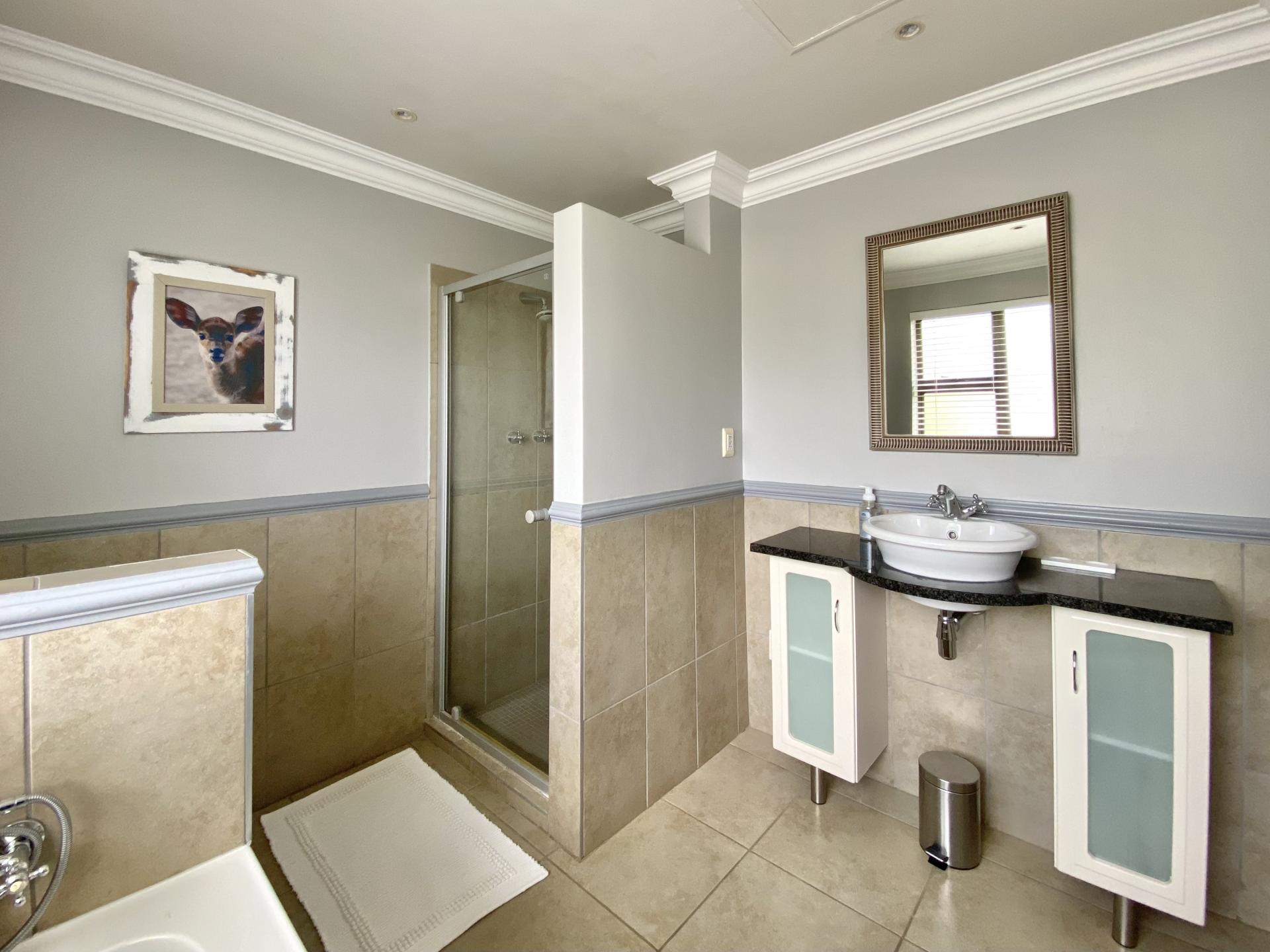 This professionally styled fully furnished 2 bedroom, 2 full bathroom house has a gorgeous open plan living area with a gas fireplace and kitchen that flows out onto the patio complete with a built-in braai and views over the private garden. Villa is equipped with 2 air-conditioners & partial underfloor heating. The garden is mature and established.