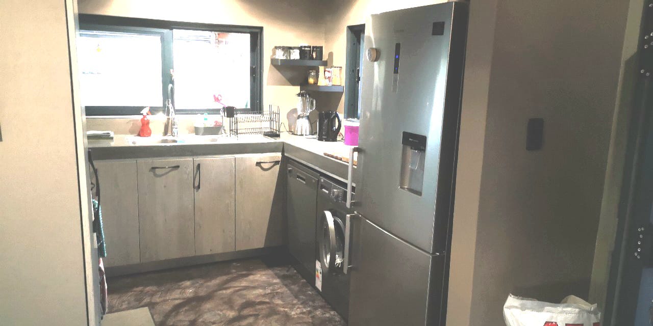 Step into the inviting entertainment area, where a built-in braai, sparkling pool and cozy BOMA create the perfect setting for unforgettable evenings under the stars. From here modern aluminum framed glass doors lead you into the open-plan interior, where every detail has been carefully considered and perfectly executed. All windows and doors are aluminum fitted with slam-lock security, providing peace of mind without compromising on elegance.