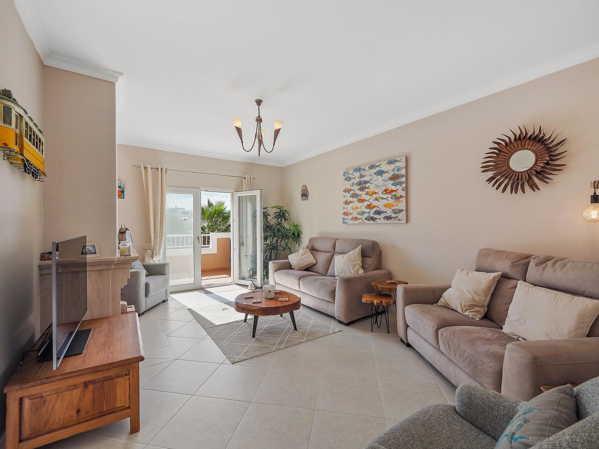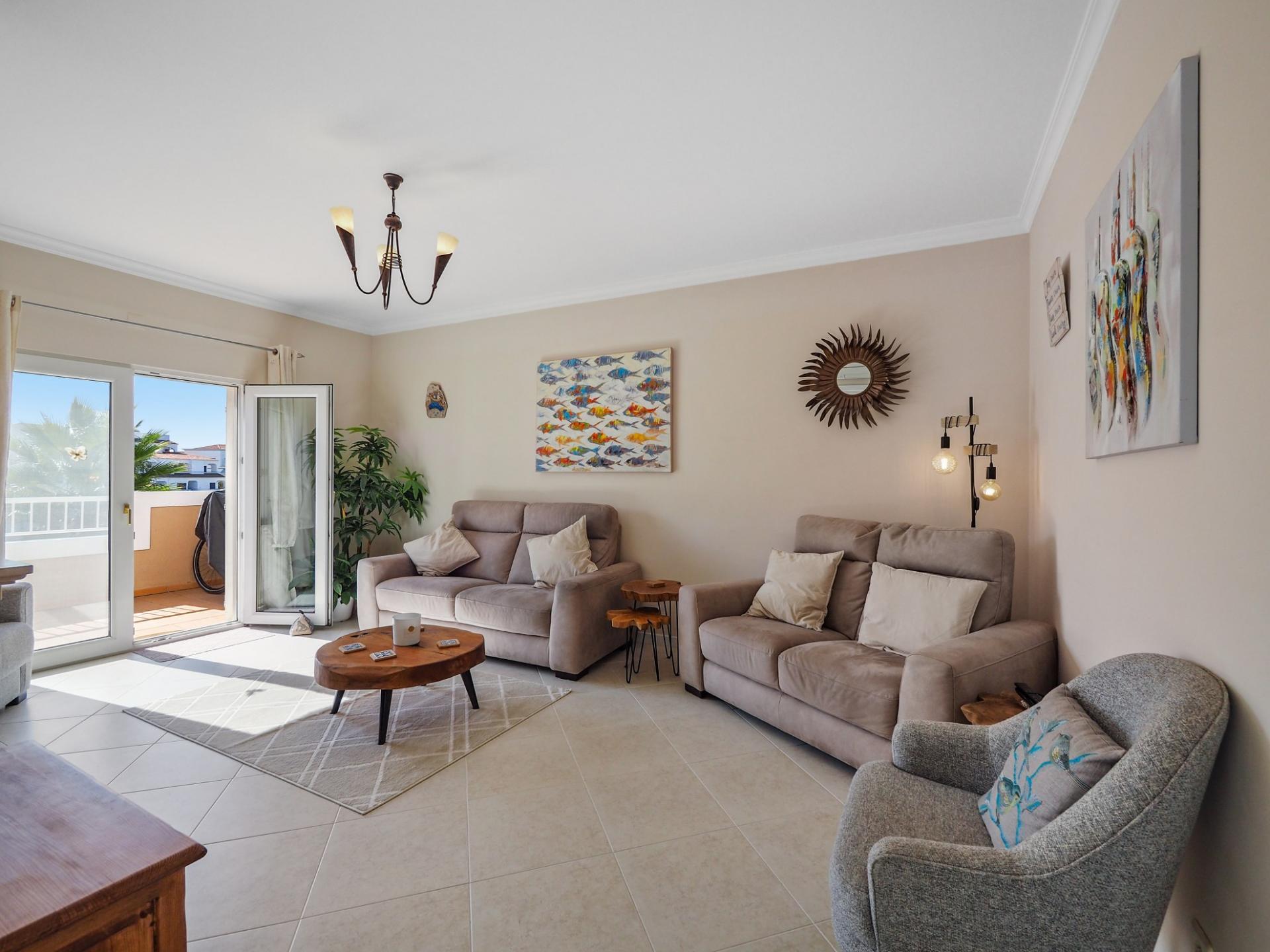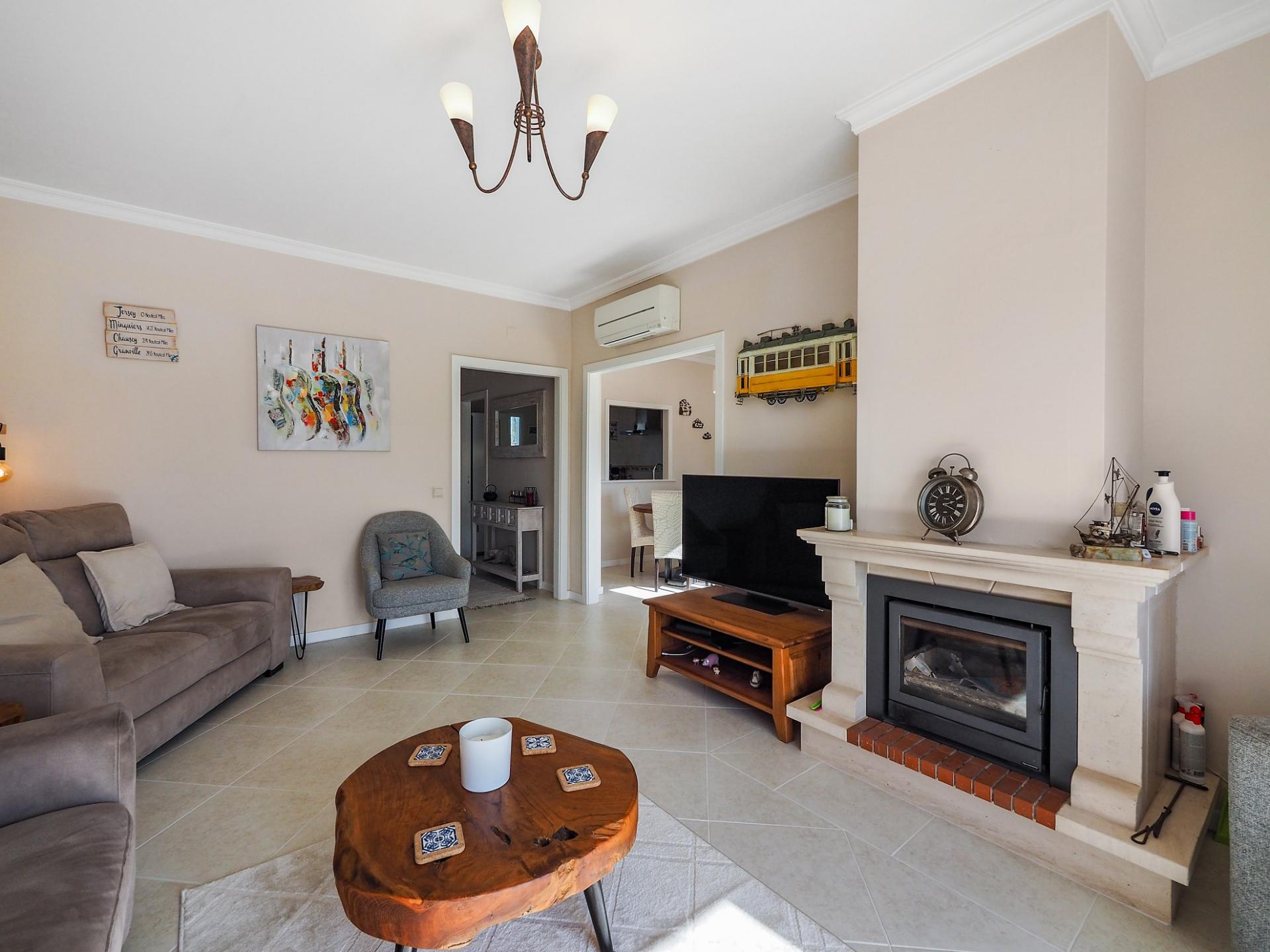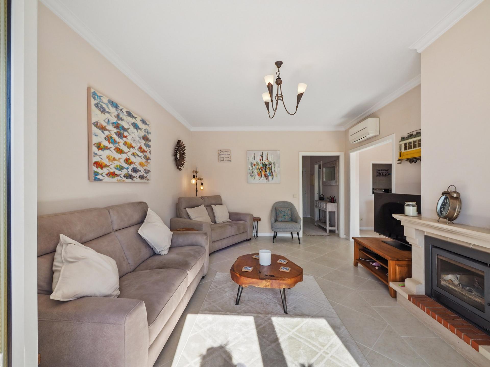 A propriedade desfruta de ar condicionado na sala de estar e nos quartos.