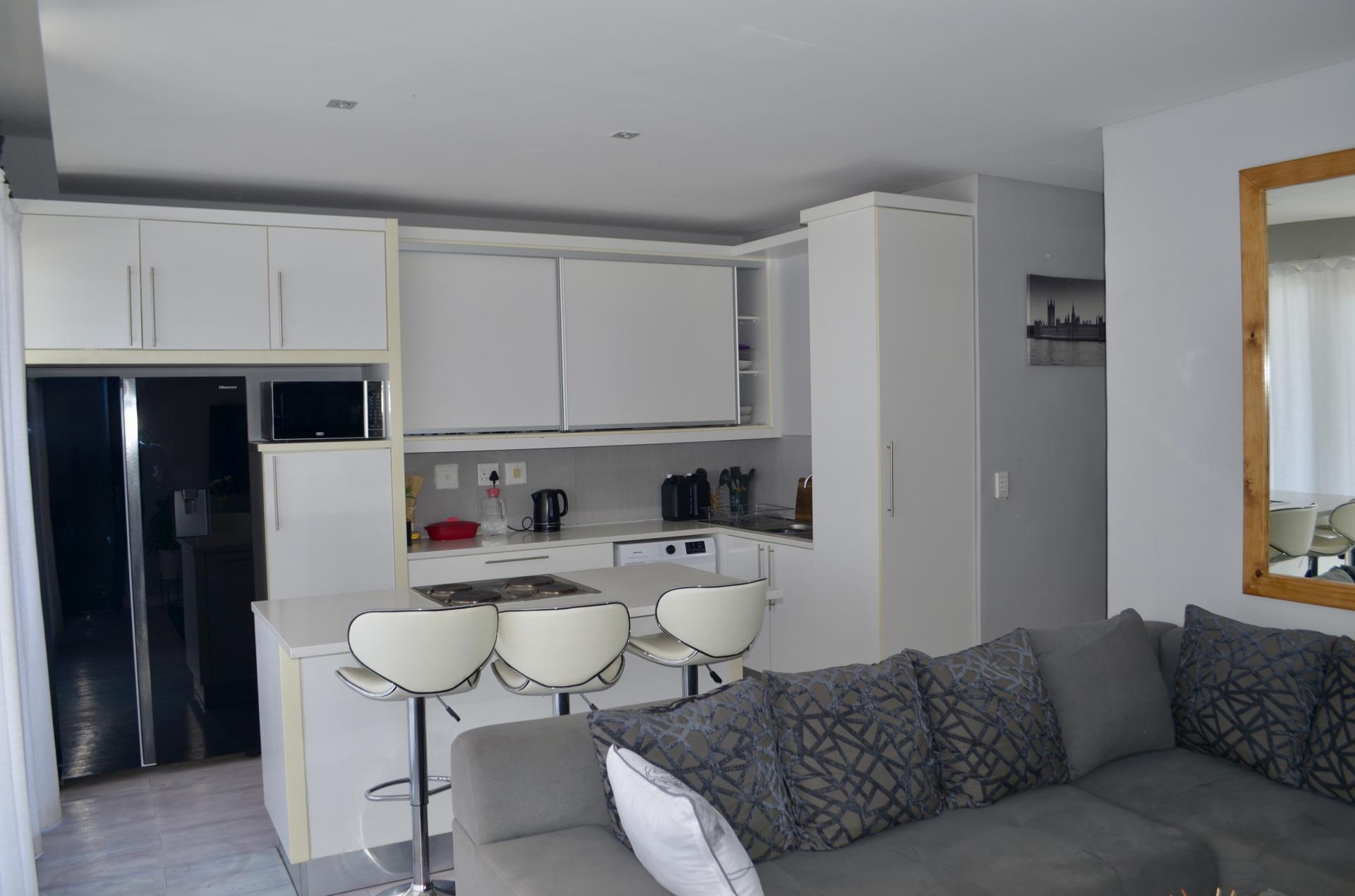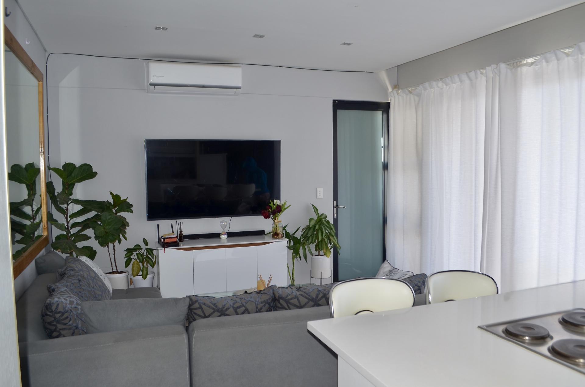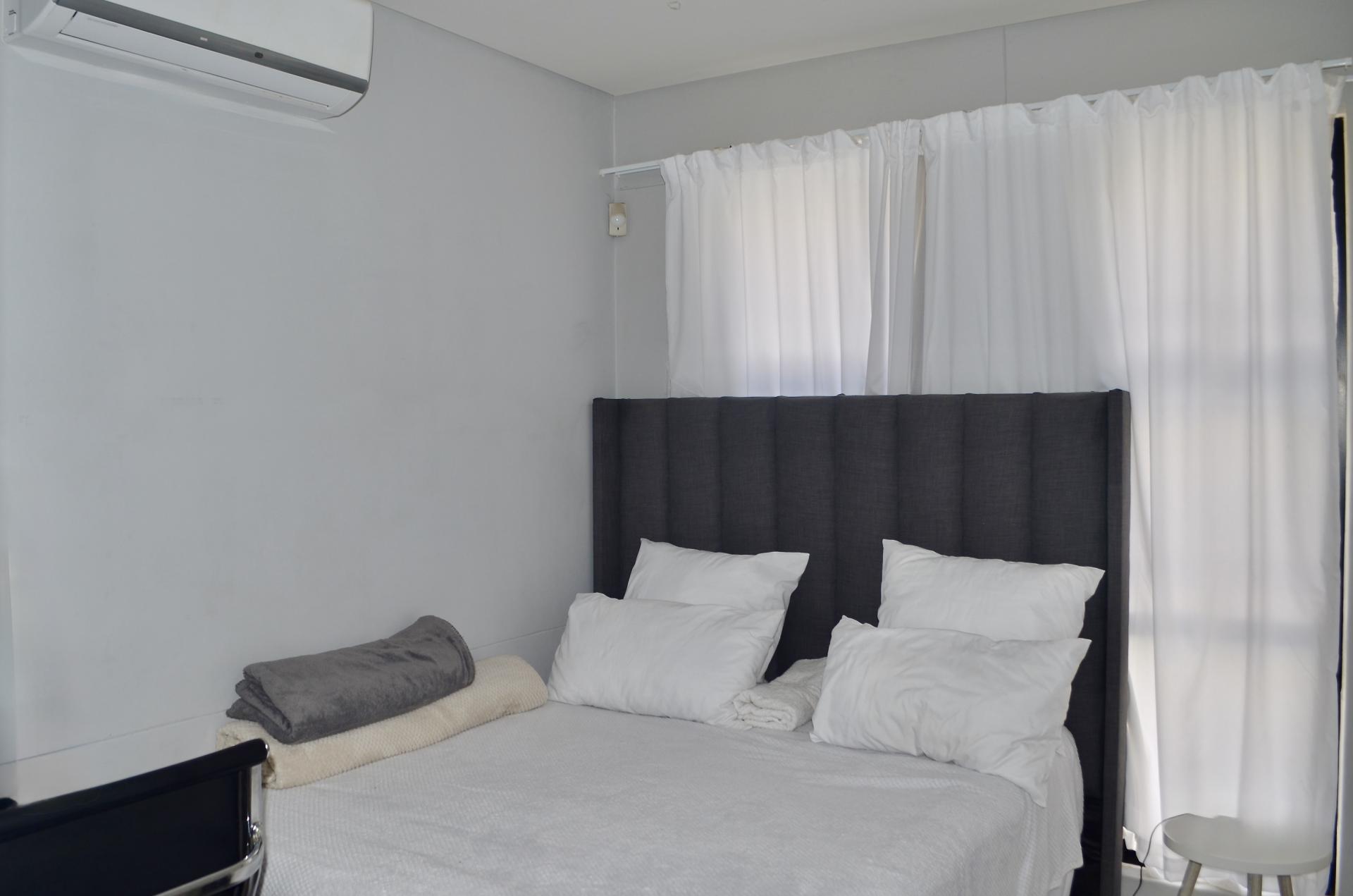 The semi-spacious living area is fitted with an air conditioner and offers direct access to the patio through sliding doors. A DSTV dish is already installed for convenience.
