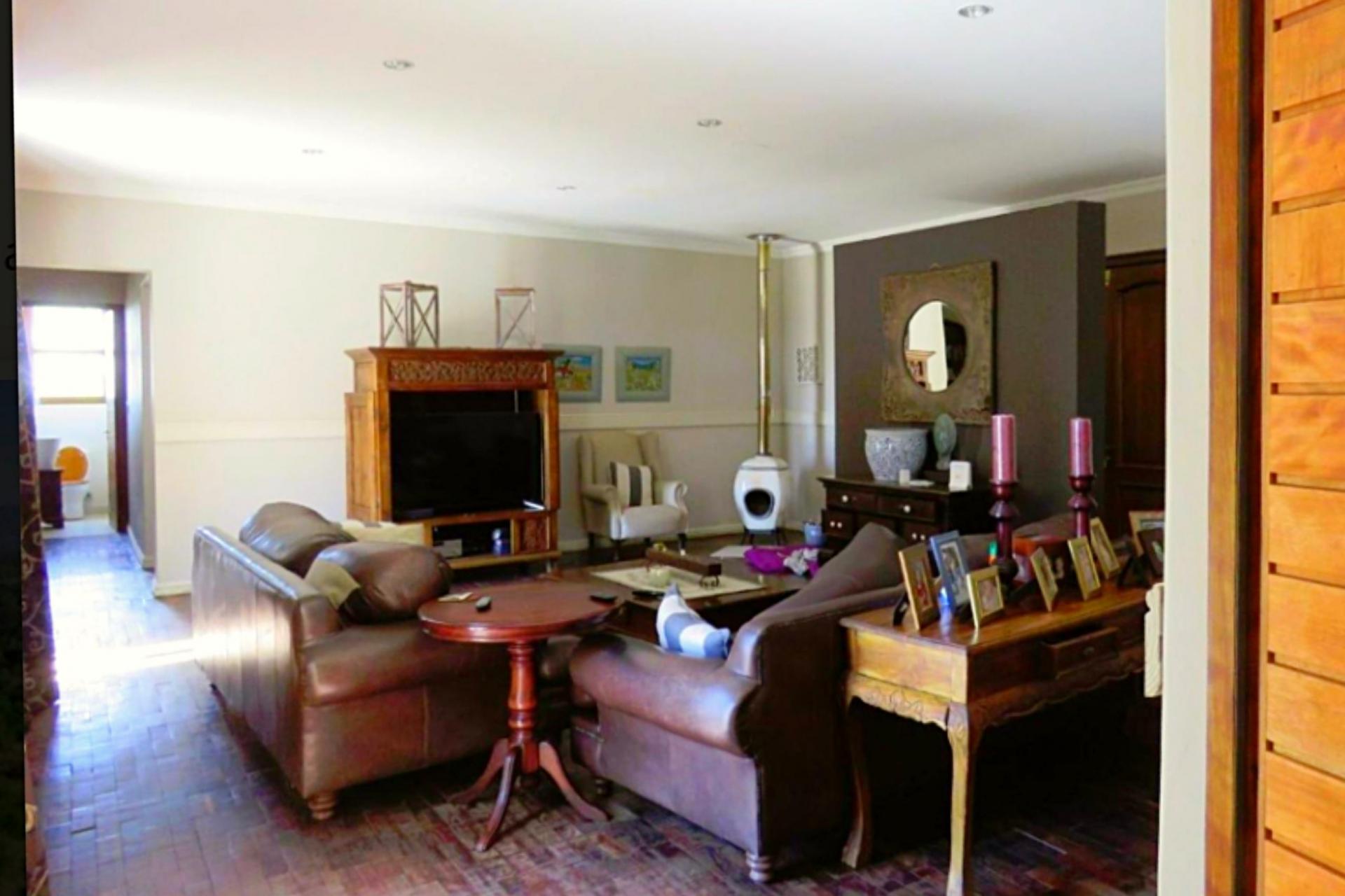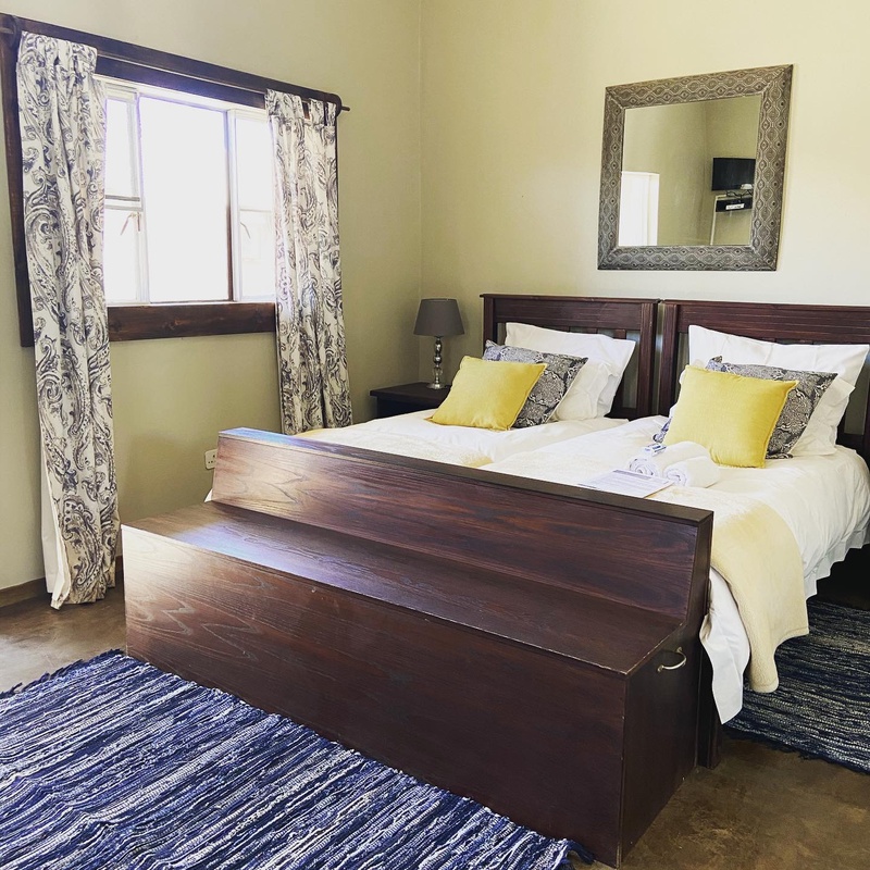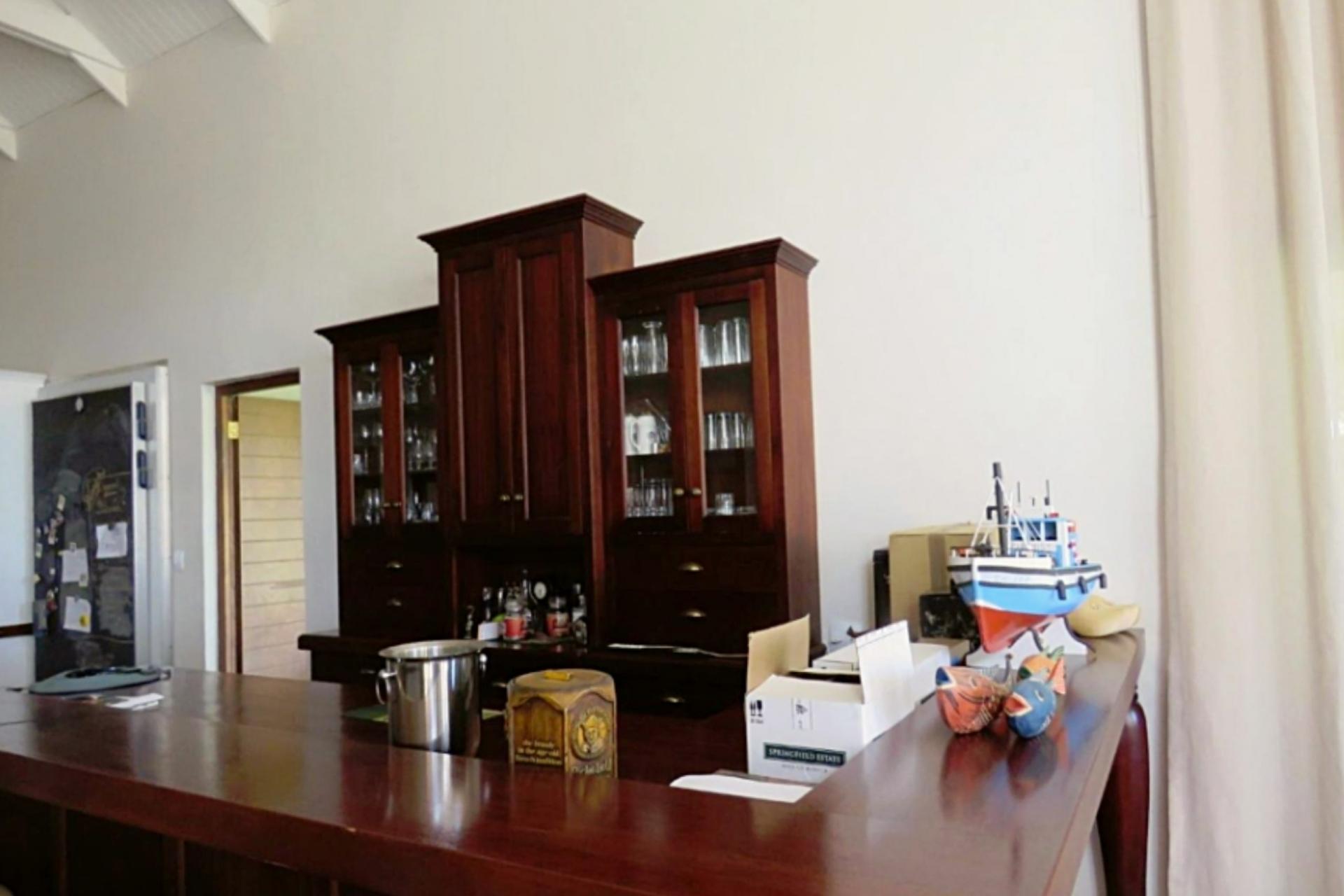 Solid Kiaat wood bar, complete with an under-bar fridge, creating a warm and welcoming atmosphere.