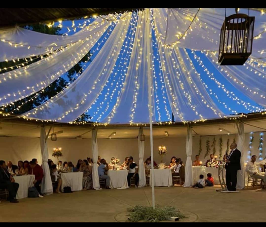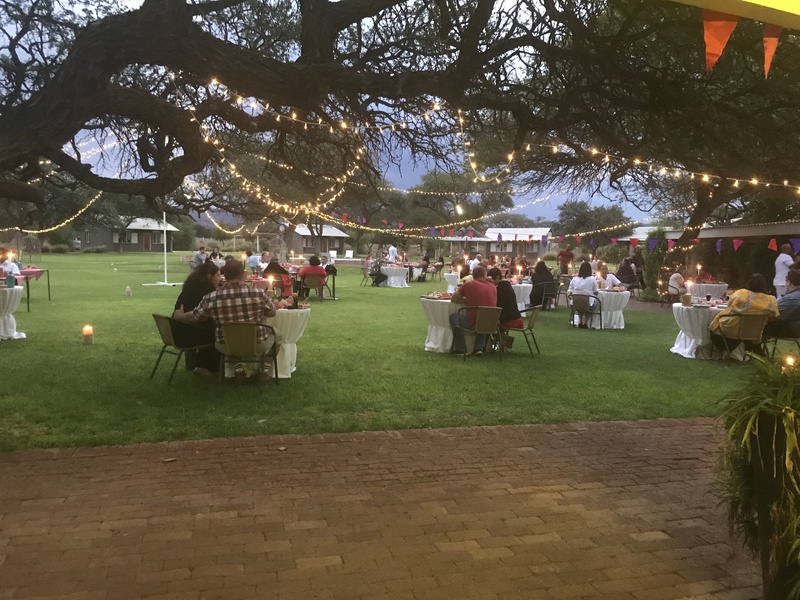 Boma area with dining, a bar, and buffet/spit BBQ stations.