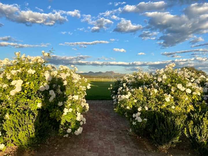 A magnificent rose garden, herb garden, and a patio with an outdoor BBQ for leisurely moments.