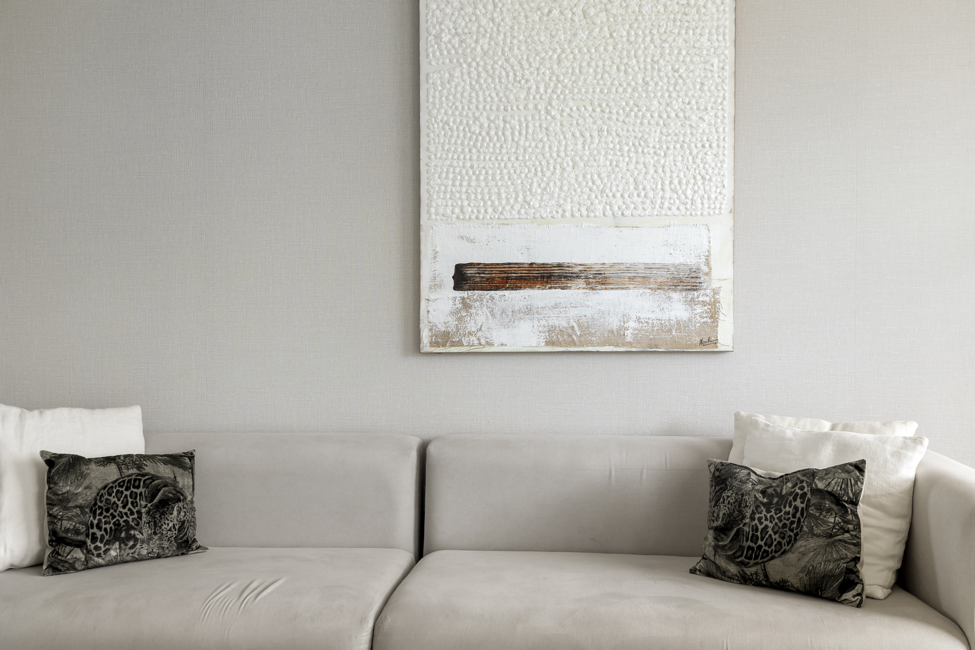 A masterclass in contemporary architecture, the apartment features sleek lines, floor-to-ceiling glass doors, and expansive terraces that frame the sea views. The layout and finishes reflect thoughtful modern design, harmonising natural light and open-plan living.