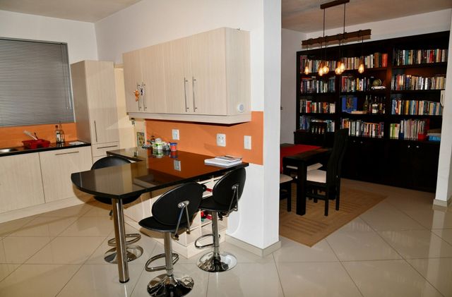 - Dining area with bookshelf