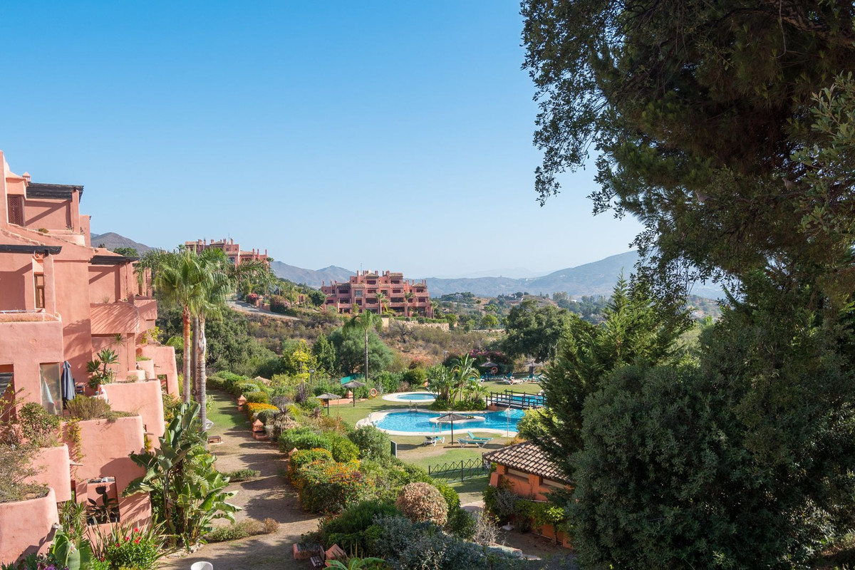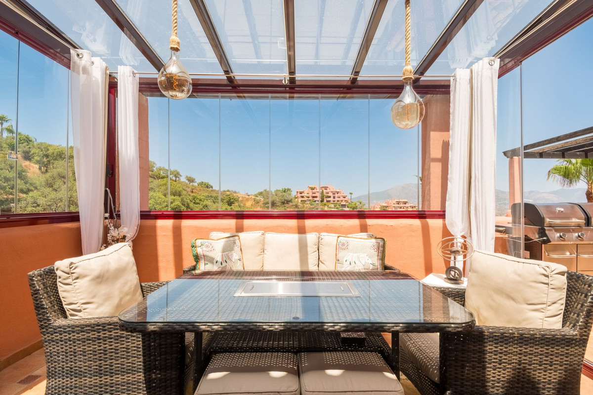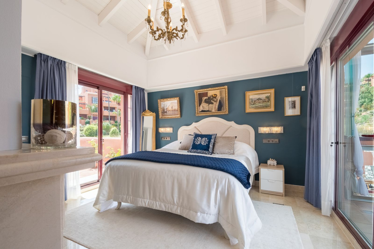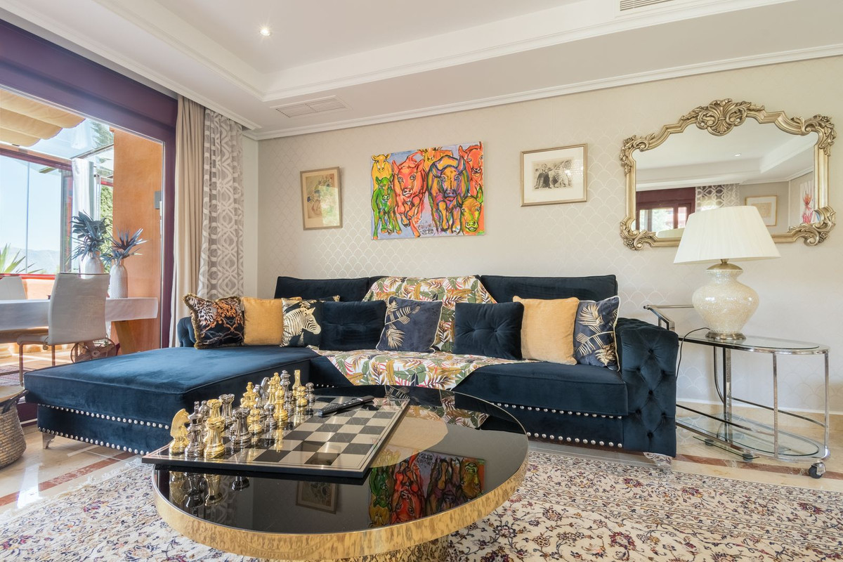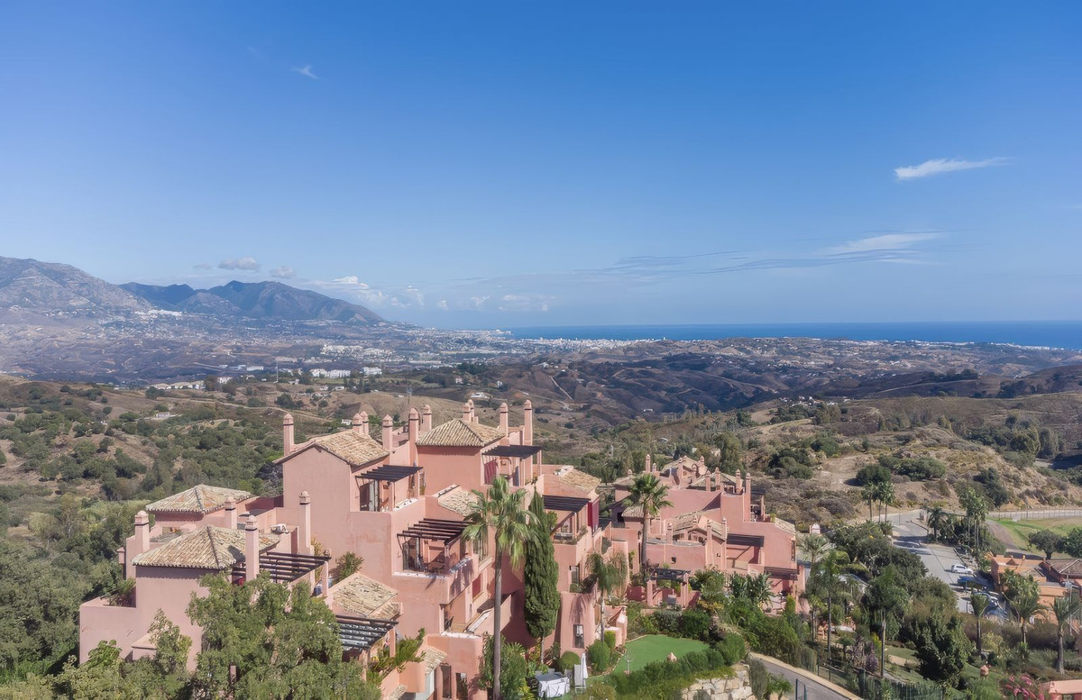 Breathtaking 3-bedroom duplex penthouse in La Mairena featuring large terraces, golf and pool views, marble flooring, private underground parking, access to multiple swimming pools, lush gardens, and exclusive use of El Soto leisure facilities with golf, gym, and spa.