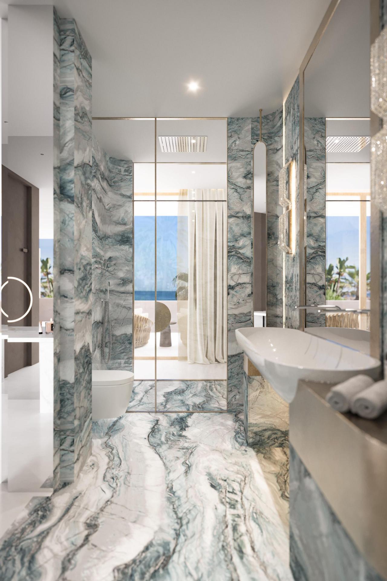The property includes three spacious double bedrooms, each with its own en-suite bathroom. These suites are designed for privacy and comfort, combining generous proportions with serene ambiance and direct access to terraces or sea views.