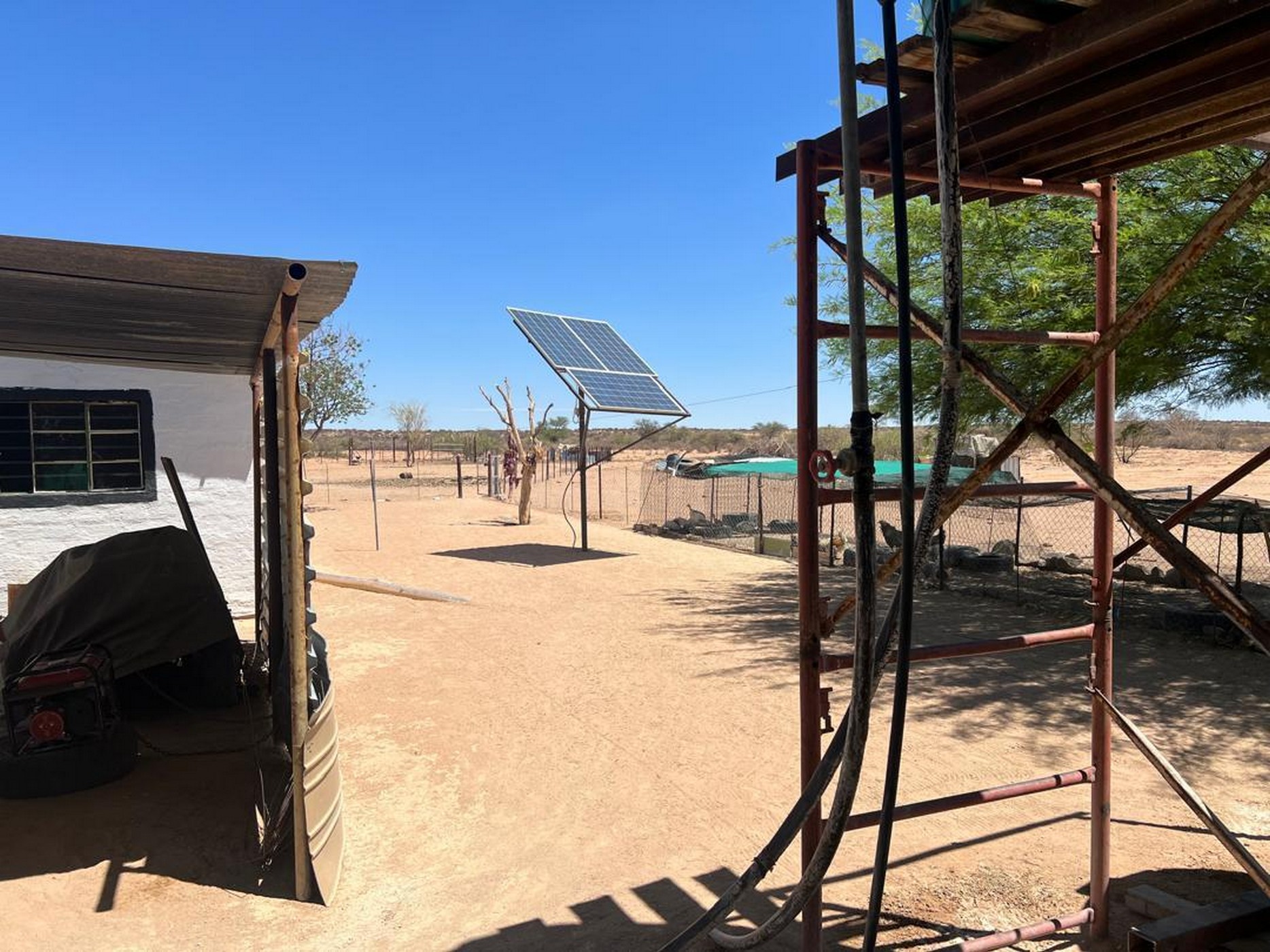 Discover an extraordinary self-sustainable paradise just 75km from Rehoboth South, Namibia - a pristine 225-hectare smallholding farm where modern comfort meets natural abundance. This exceptional property features a stylish three-bedroom home powered by solar electricity, excellent quality borehole water, and meticulously maintained infrastructure including 3*2500 litres water tanks,2 livestock kraals, and worker accommodations. The farm's remarkably fertile soil supports a thriving variety of fruit trees and vegetables, while the natural riverbed and visiting wildlife like kudus create a truly magical atmosphere for those seeking both productivity and tranquility.