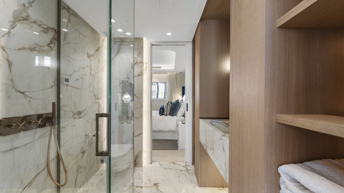 Upon entering, you’ll be captivated by the ambiance reminiscent of a luxury yacht, with the Mediterranean Sea just steps away, offering breathtaking views and a serene coastal experience.
