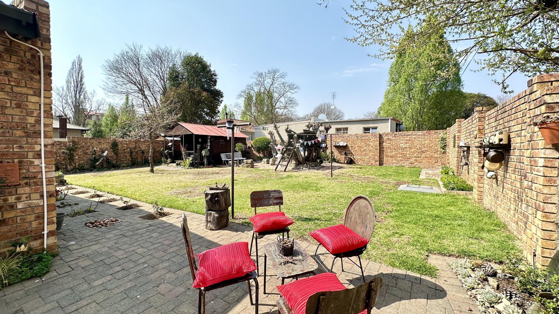 Outside, you’ll find a manicured, irrigated garden with 40 roses. a Wendy house, an outdoor toilet, and a garden room — perfect for storage or hobby use.