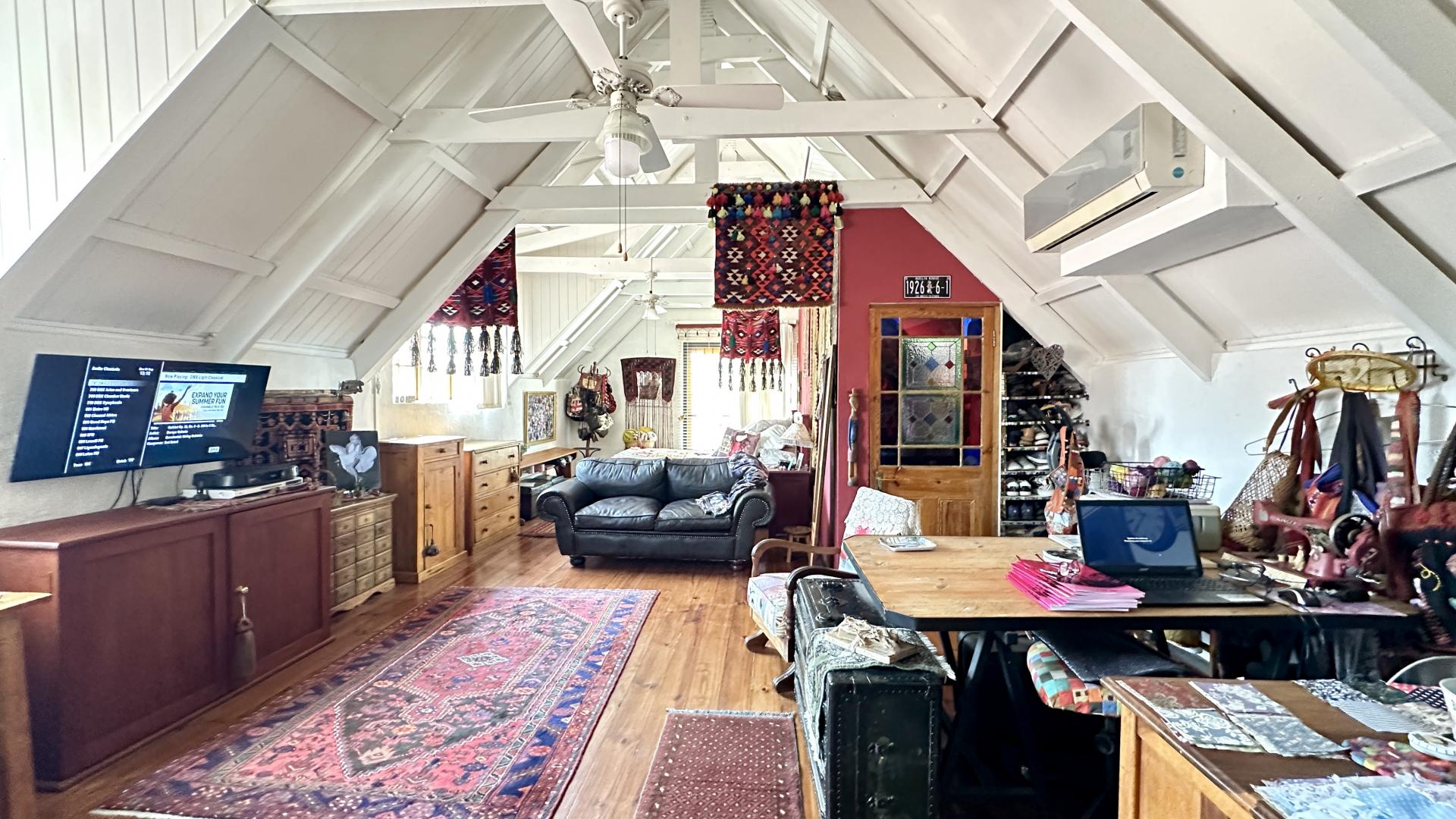 Air con and ceiling fan in the Master bedroom with a walk-in cupboard