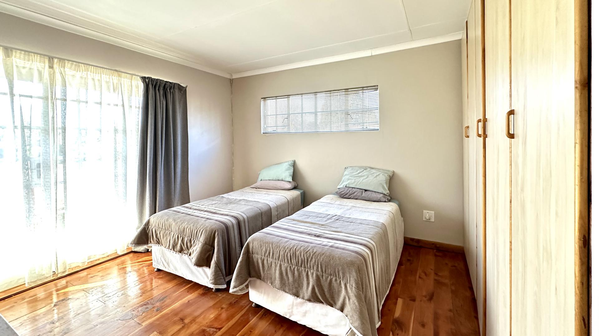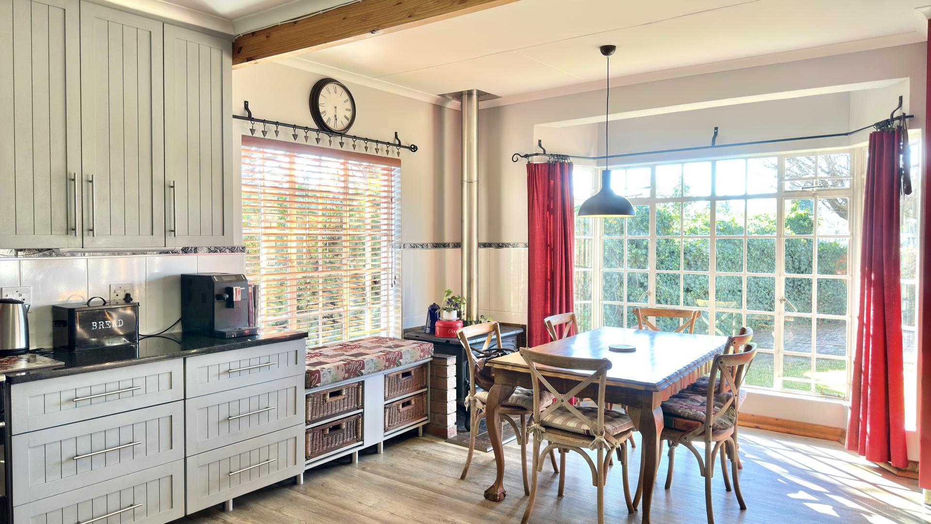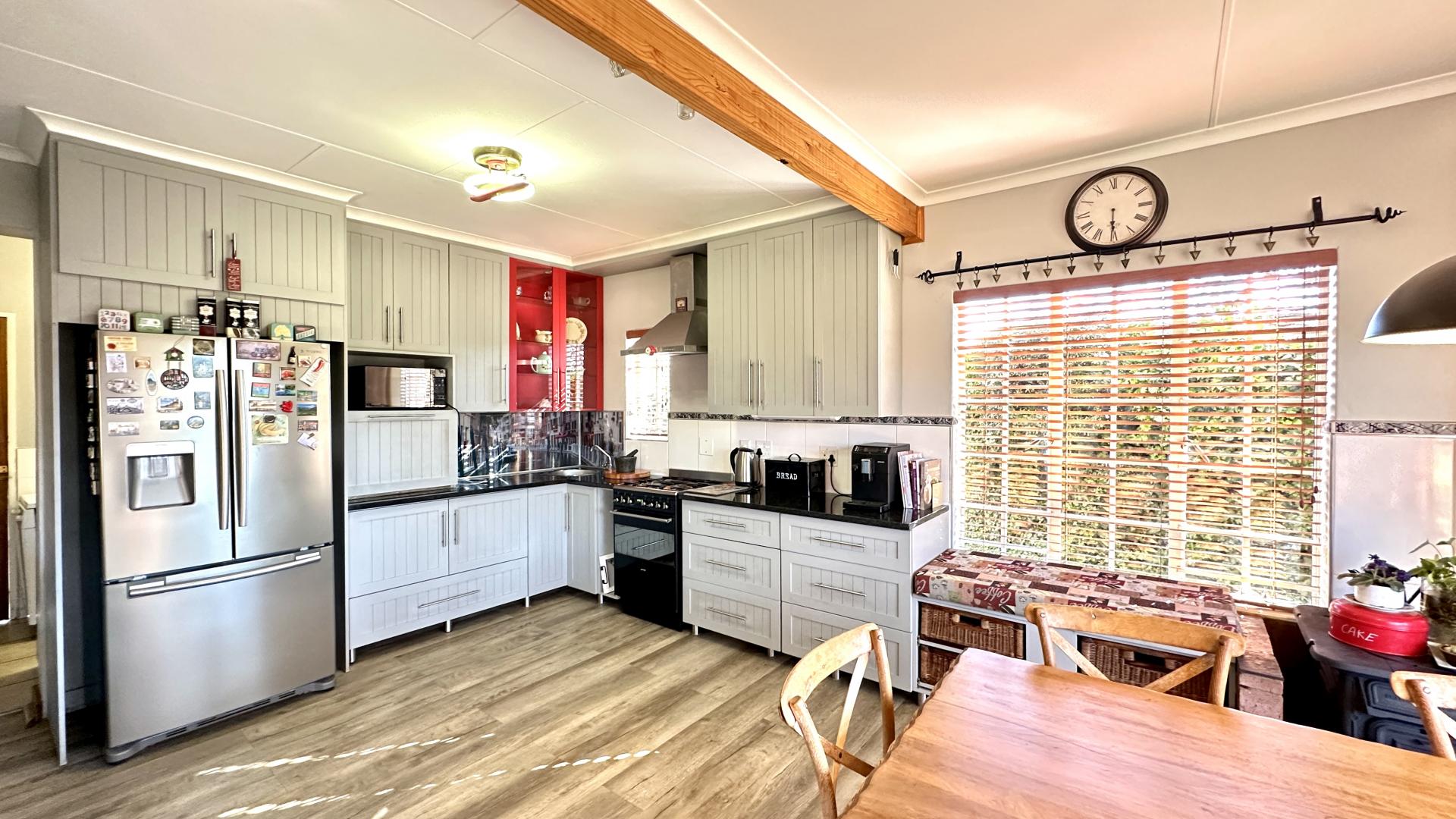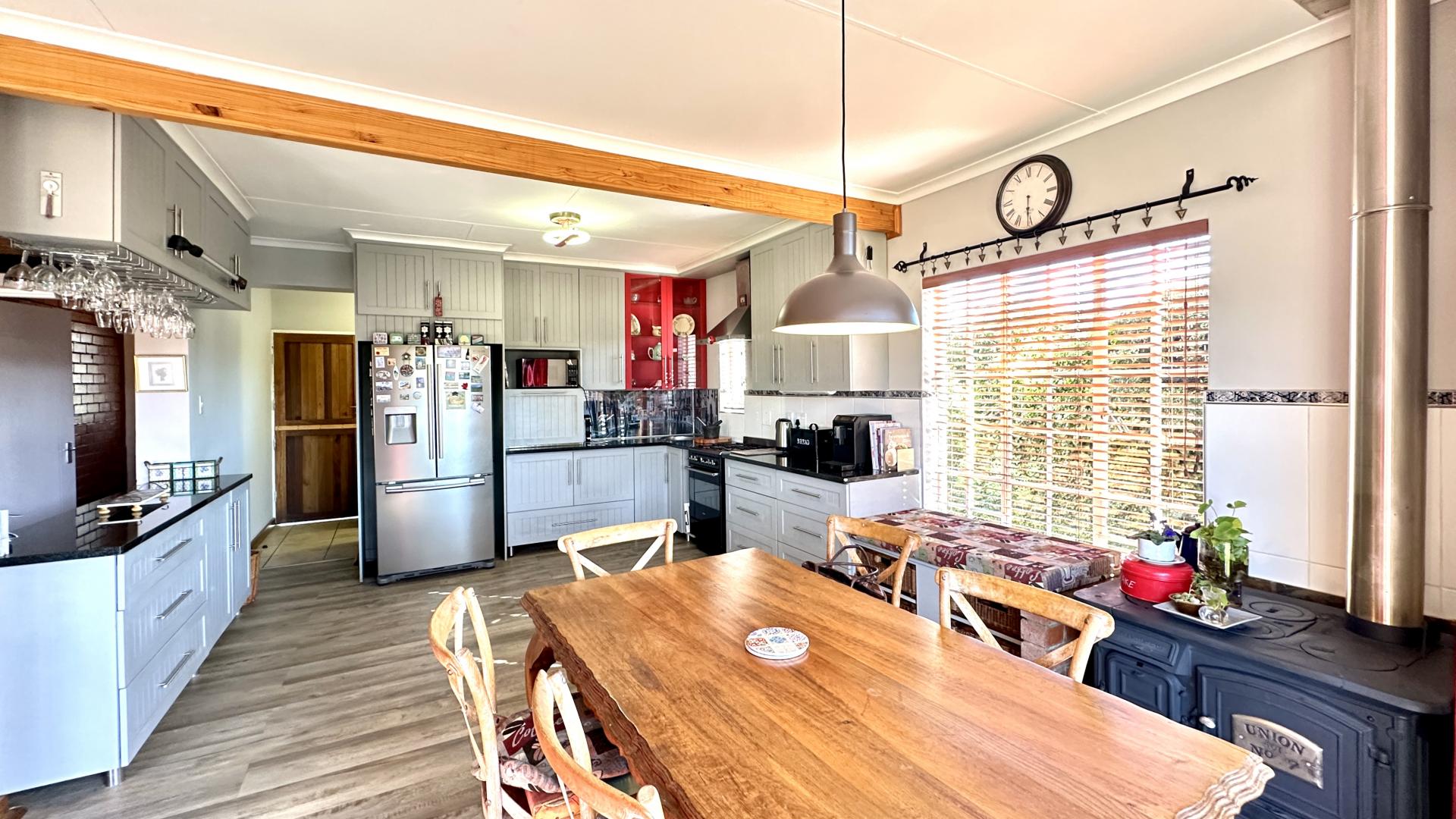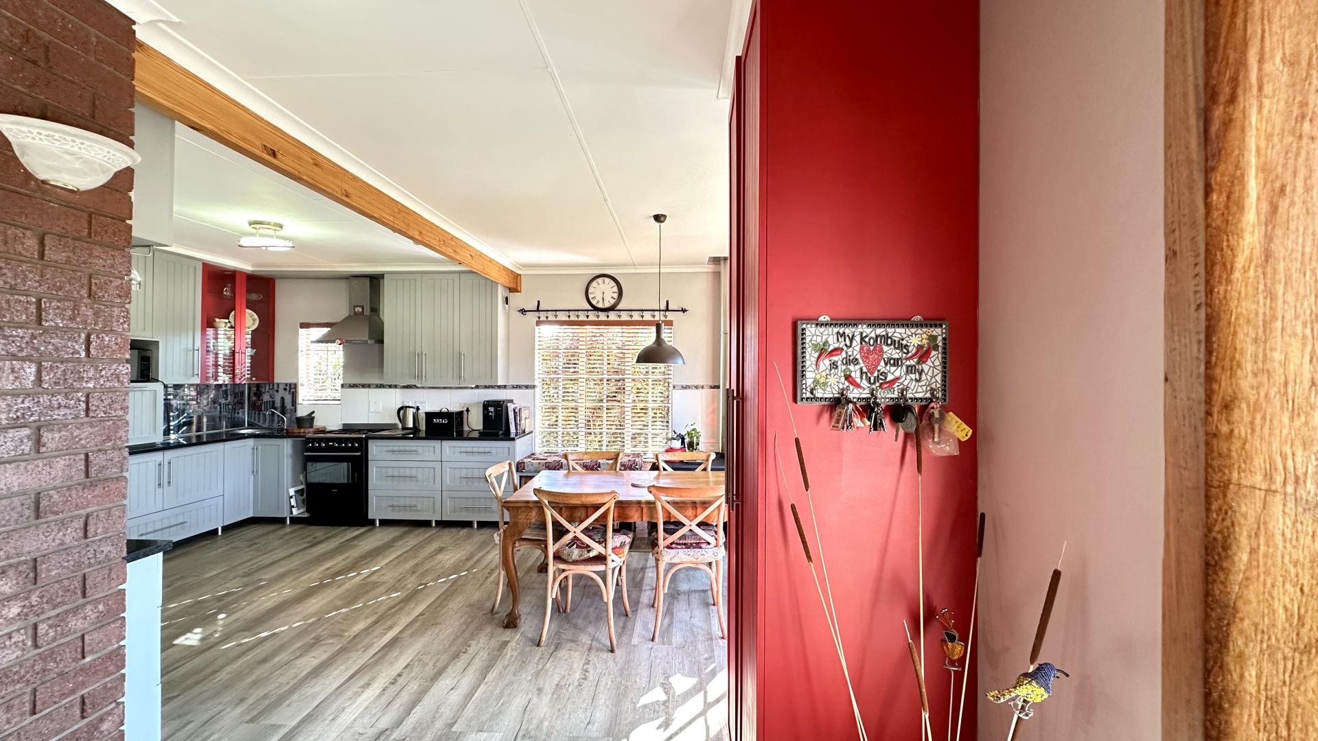 Generous living spaces flow seamlessly into an entertainment room complete with a built-in braai, ideal for hosting guests. A private study and powder room are conveniently situated off the main living area with a cozy combustion stove, adding both warmth and practicality.