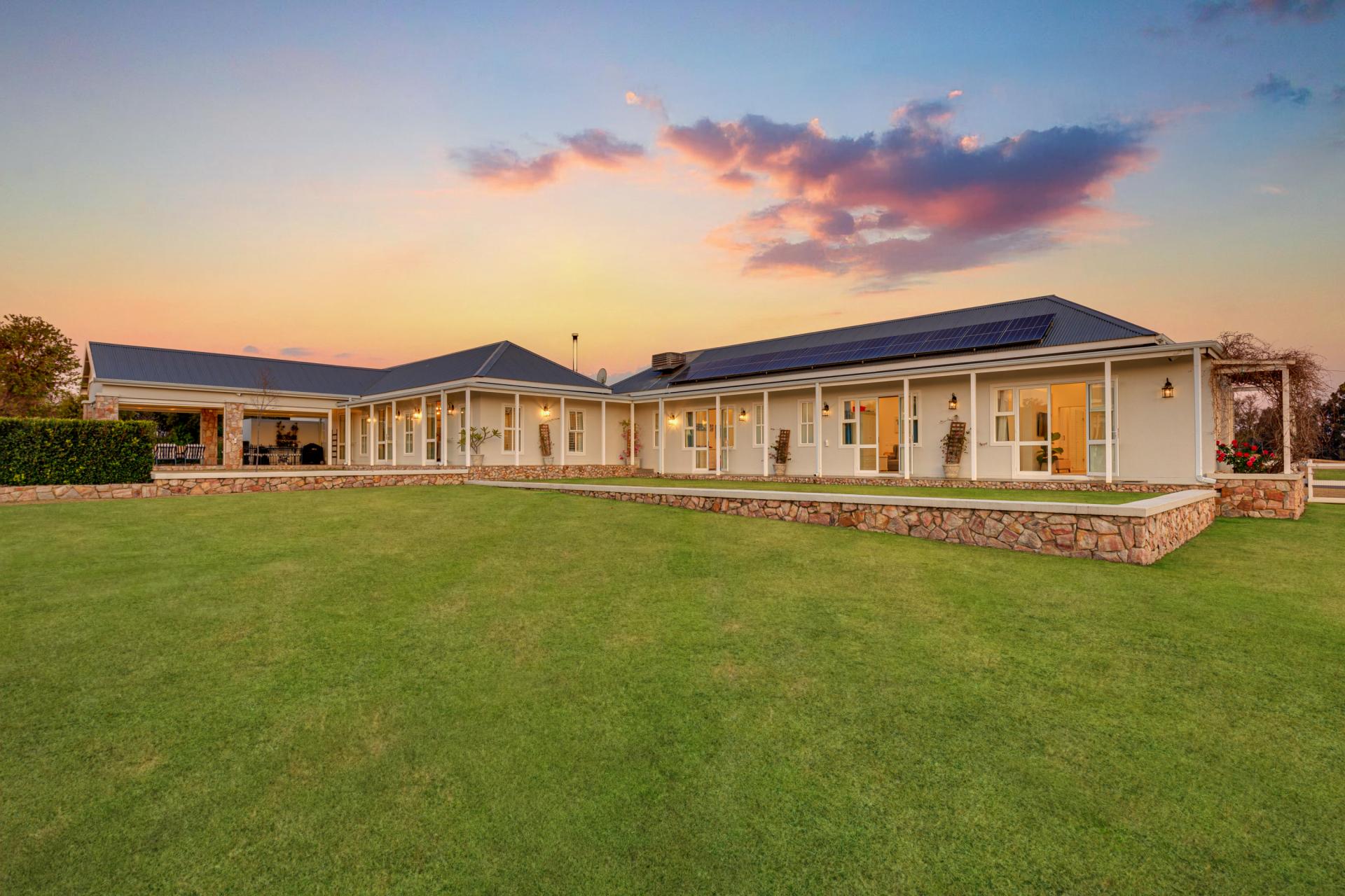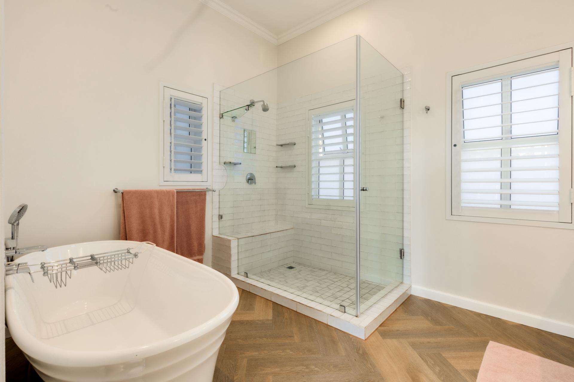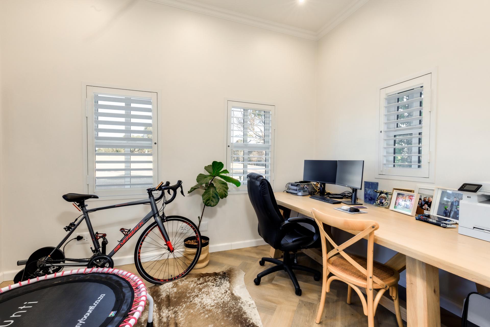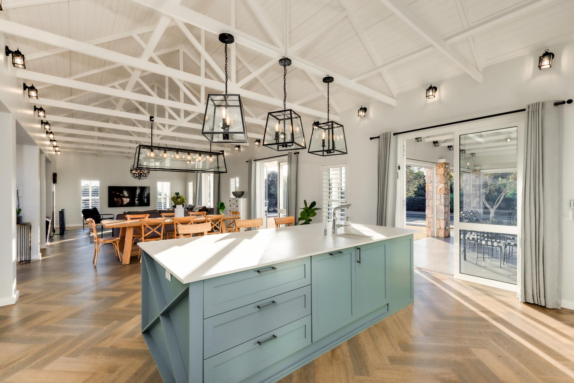 From the moment you walk in - there’s a Nestor Martin wood burning fireplace in the lounge for cozy winter nights, a large and bright open plan modern country kitchen, dining room and lounge all looking onto the landscaped garden and sparkling pool. The three bedrooms are all comfortably en-suite and a Calore electric fireplace warms the main bedroom. There are thoughtful touches everywhere — Caesarstone kitchen counters, soft-close Blum hinges, plantation shutters, automated blinds on the patio, cool Breeze aircon system in main living areas.