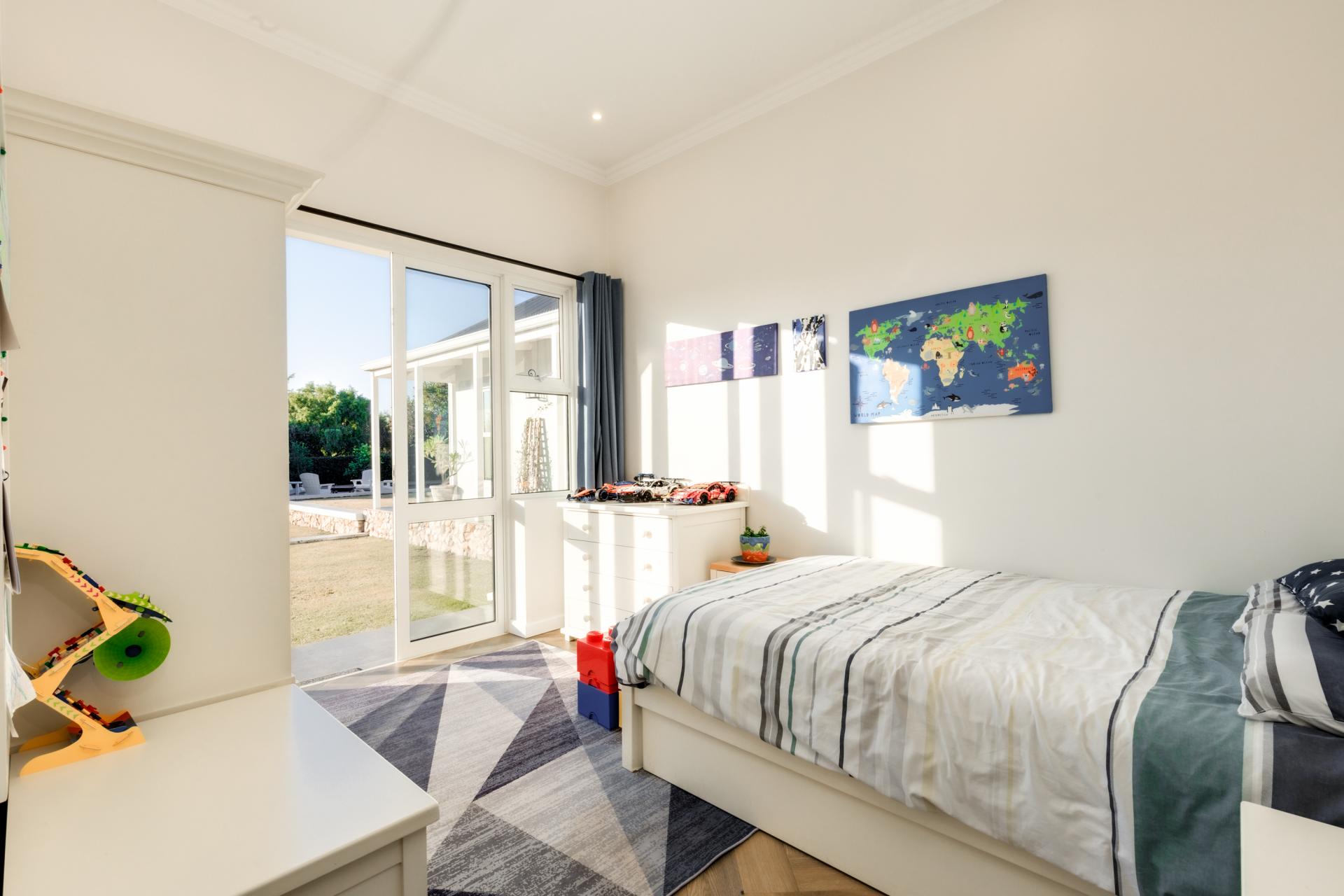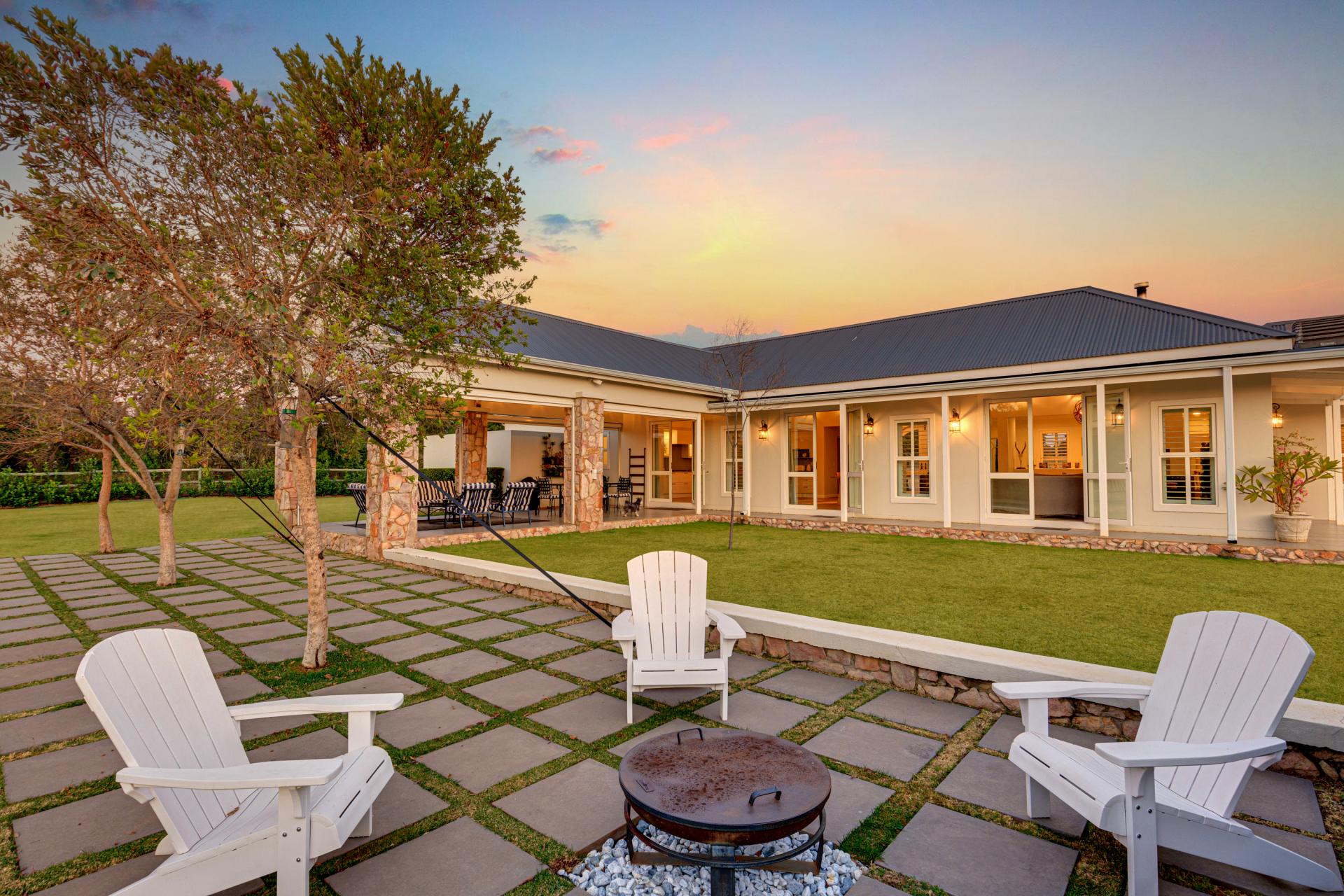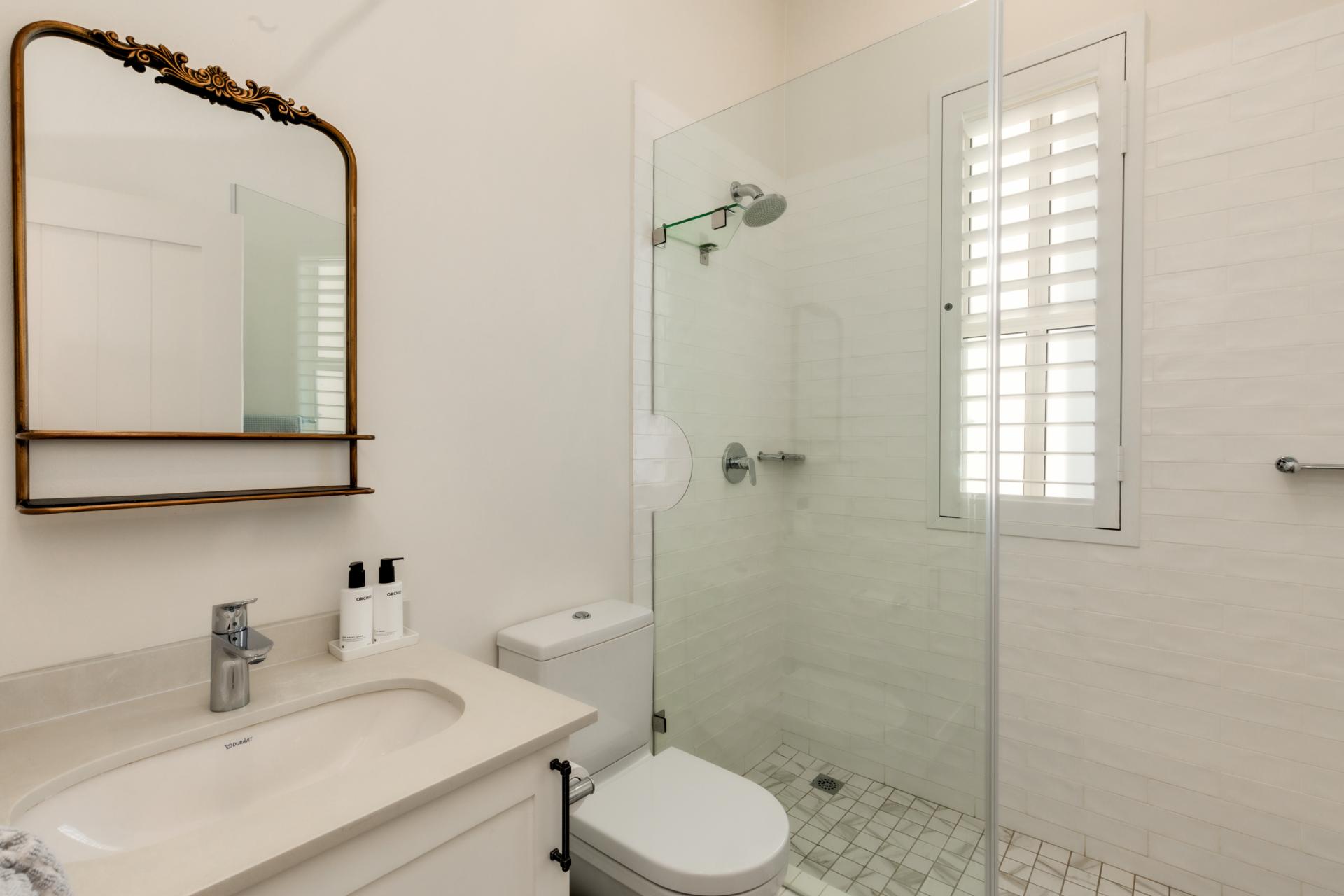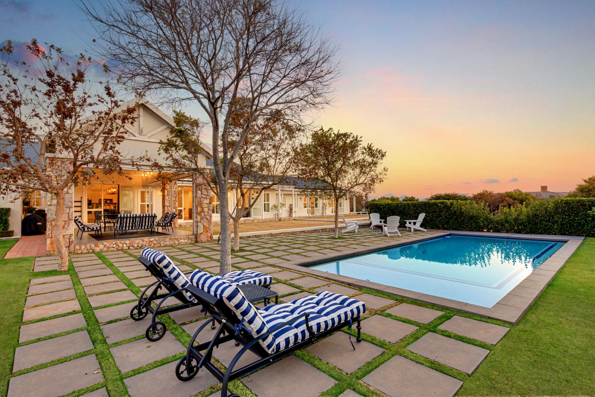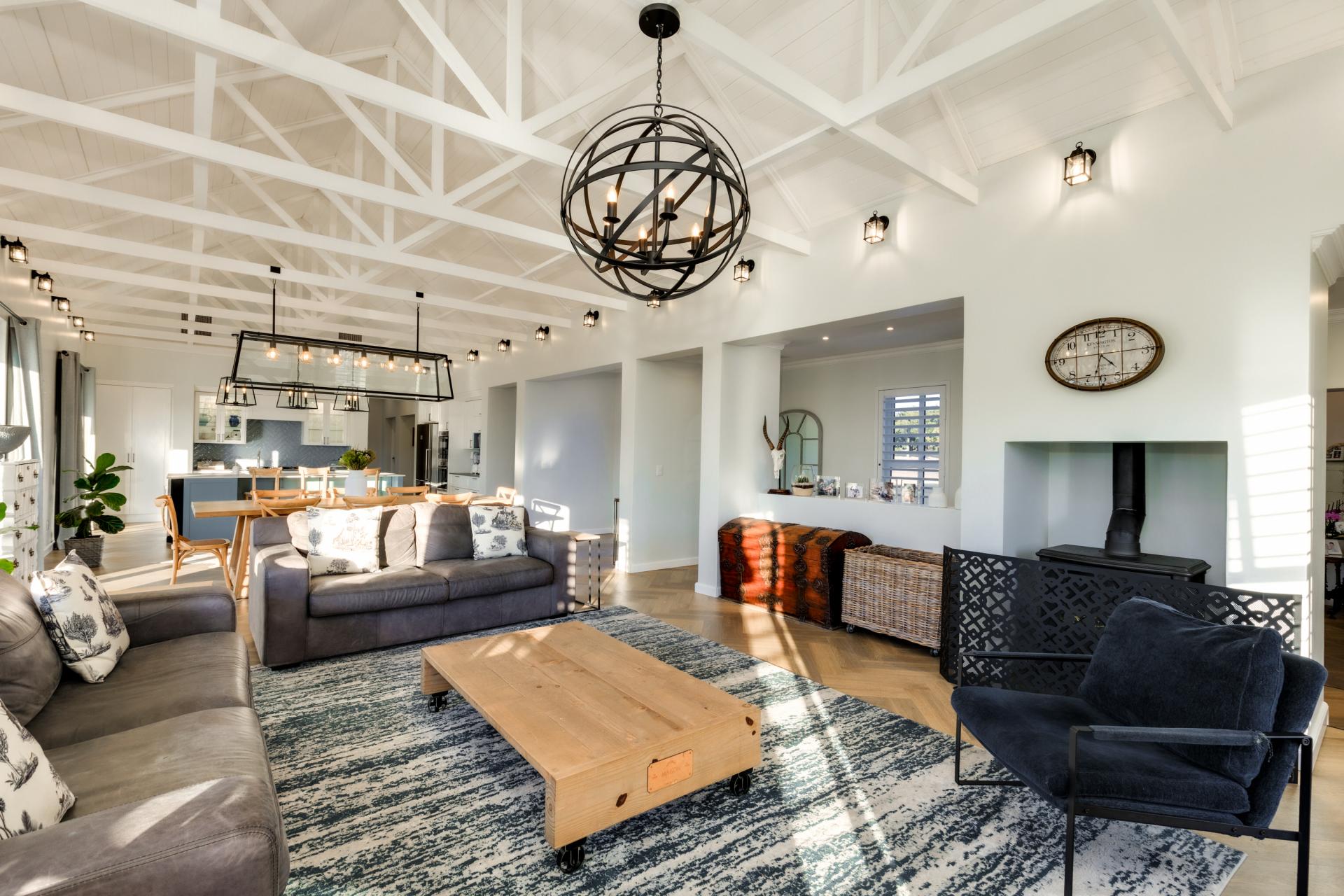 From the moment you walk in - there’s a Nestor Martin wood burning fireplace in the lounge for cozy winter nights, a large and bright open plan modern country kitchen, dining room and lounge all looking onto the landscaped garden and sparkling pool. The three bedrooms are all comfortably en-suite and a Calore electric fireplace warms the main bedroom. There are thoughtful touches everywhere — Caesarstone kitchen counters, soft-close Blum hinges, plantation shutters, automated blinds on the patio, cool Breeze aircon system in main living areas.