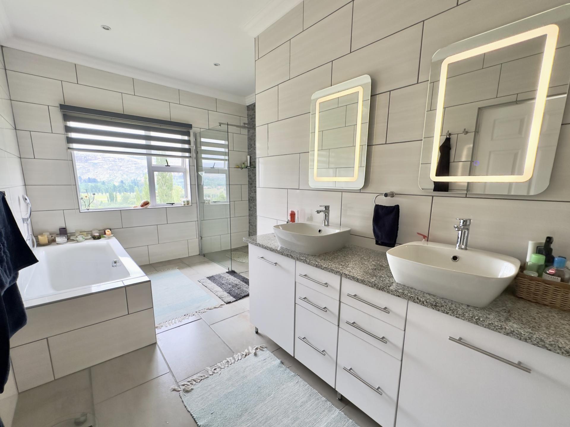 The accommodation includes 3 spacious bedrooms with envious views and built-in cupboards, with a full master luxury en-suite bathroom and another shared bathroom. They are all situated together on the first floor with a balcony. The parking area has plentiful, paved parking space as well as a double garage.