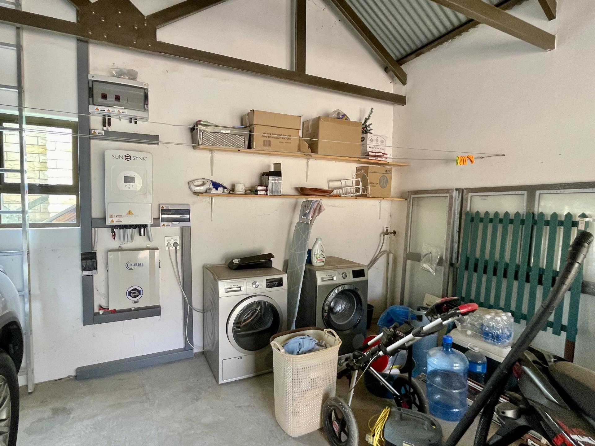 Sustainability meets sophistication with a 5.5 kW SunSync solar system, including five solar panels and a lithium battery, offering energy efficiency and peace of mind. The property also features two geysers and two remote-controlled garages, ensuring comfort and ample storage for your vehicles and gear.