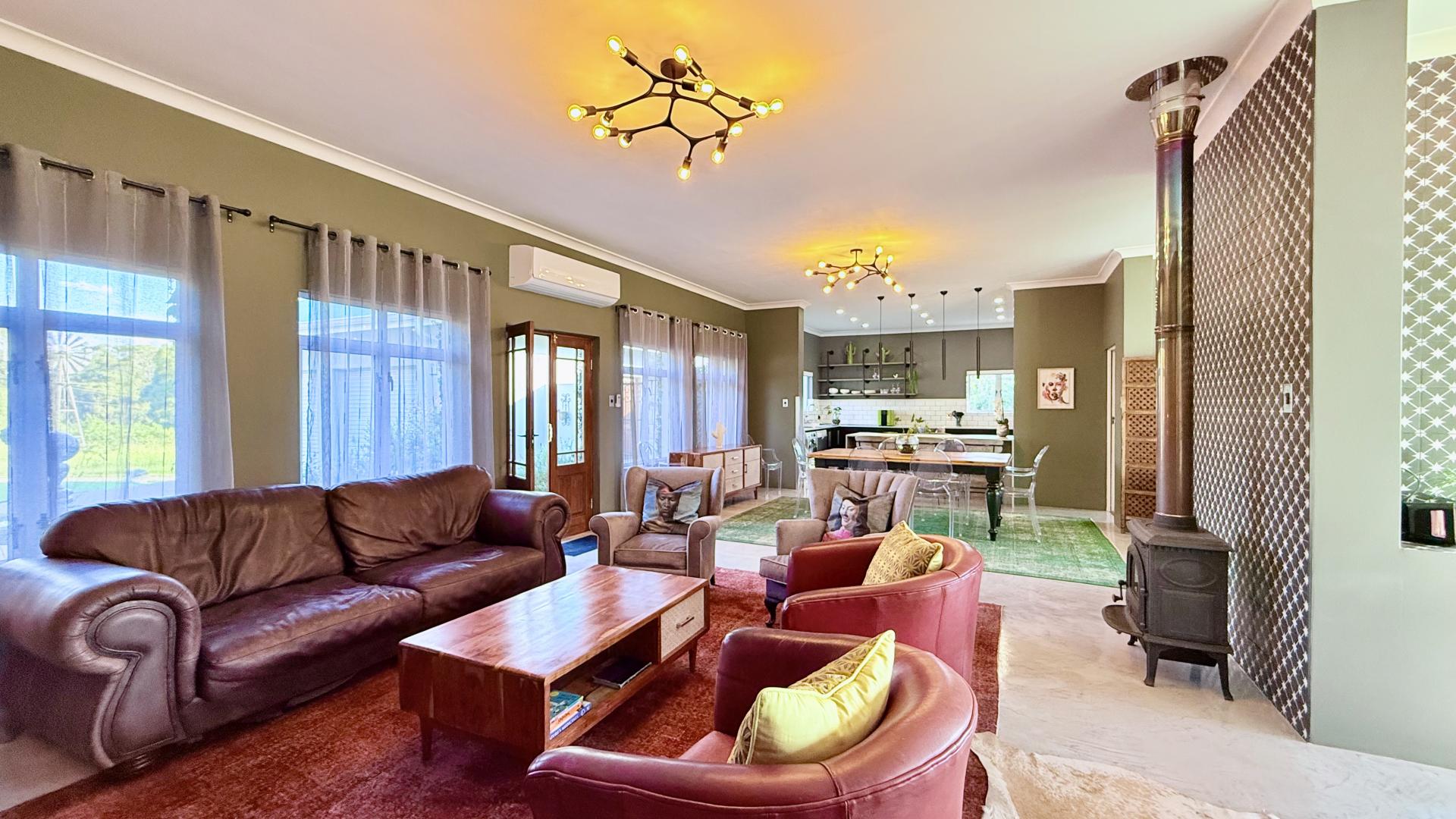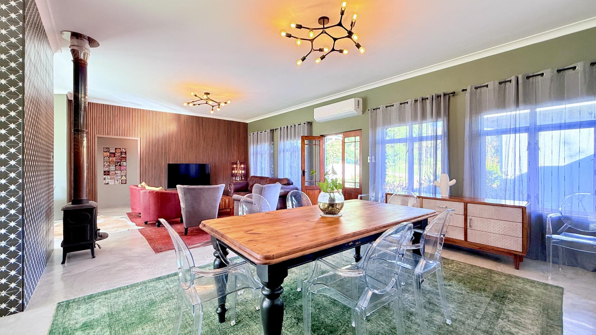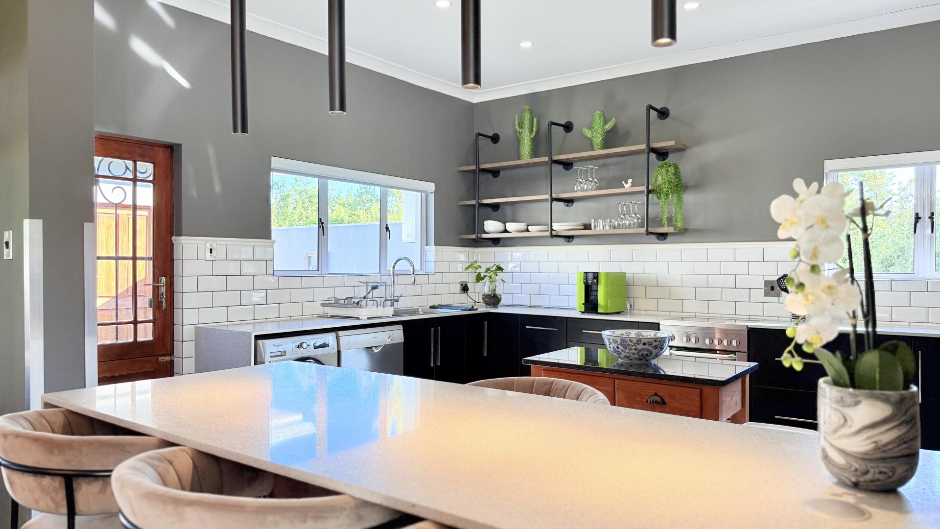 Nestled in a tranquil setting within a prestigious Golf Estate, this elegant 3-bedroom home offers a perfect blend of privacy and luxury. It features two beautifully designed bathrooms and spacious, thoughtfully crafted open-plan living areas, complete with an indoor gas braai and a cozy combustion stove.
