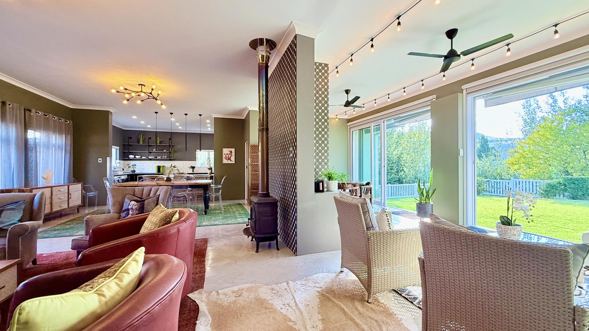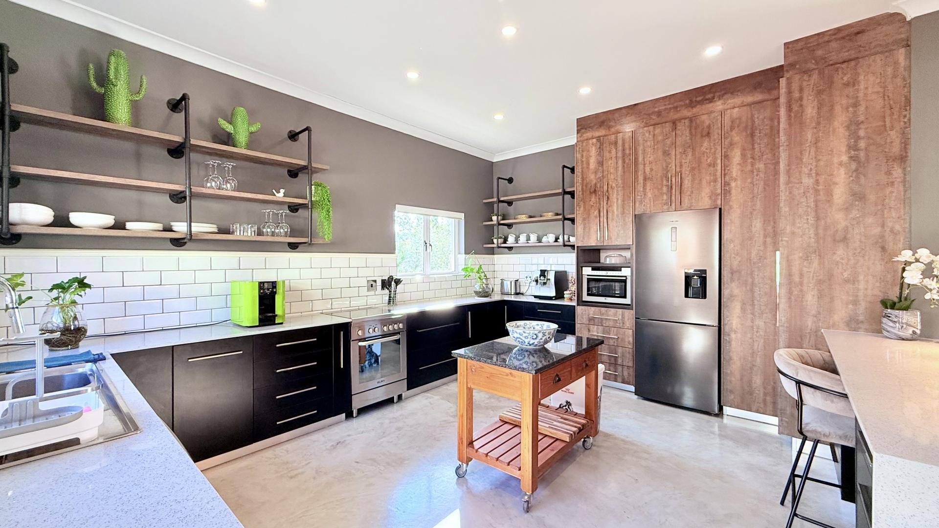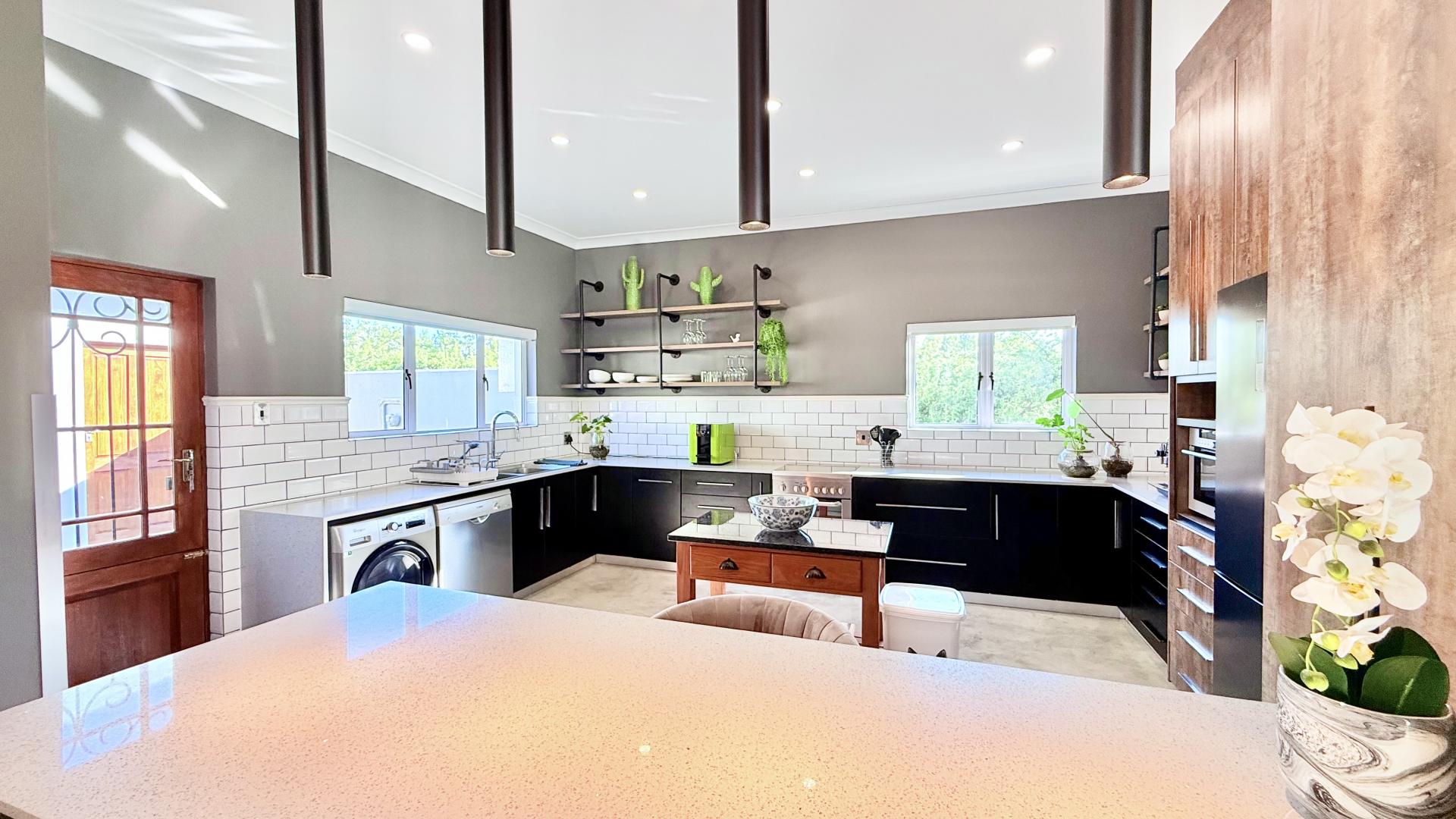 Nestled in a tranquil setting within a prestigious Golf Estate, this elegant 3-bedroom home offers a perfect blend of privacy and luxury. It features two beautifully designed bathrooms and spacious, thoughtfully crafted open-plan living areas, complete with an indoor gas braai and a cozy combustion stove.
