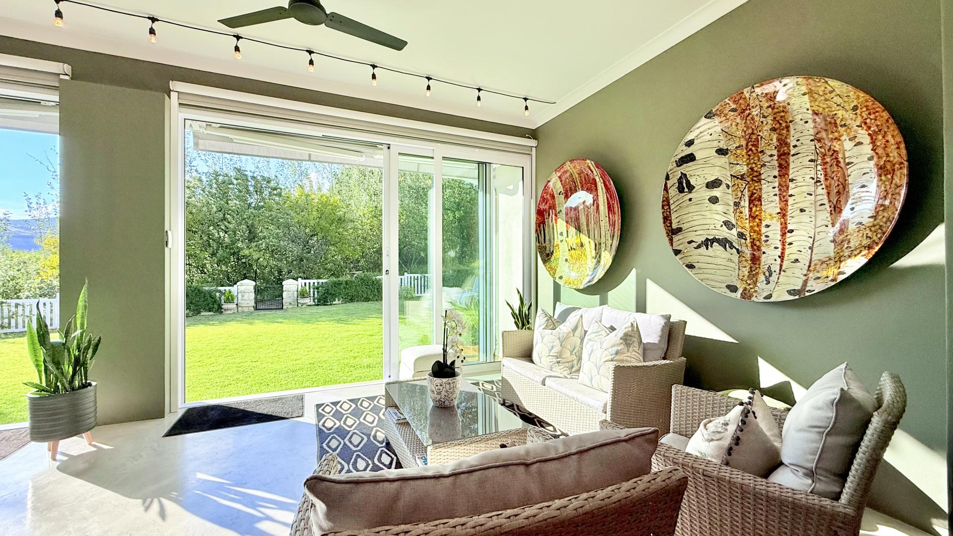 Additional premium features include remote-controlled blinds and outdoor canopies, double-glazed sliding glass doors, and a fenced front garden. A JoJo tank ensures a reliable backup water supply.