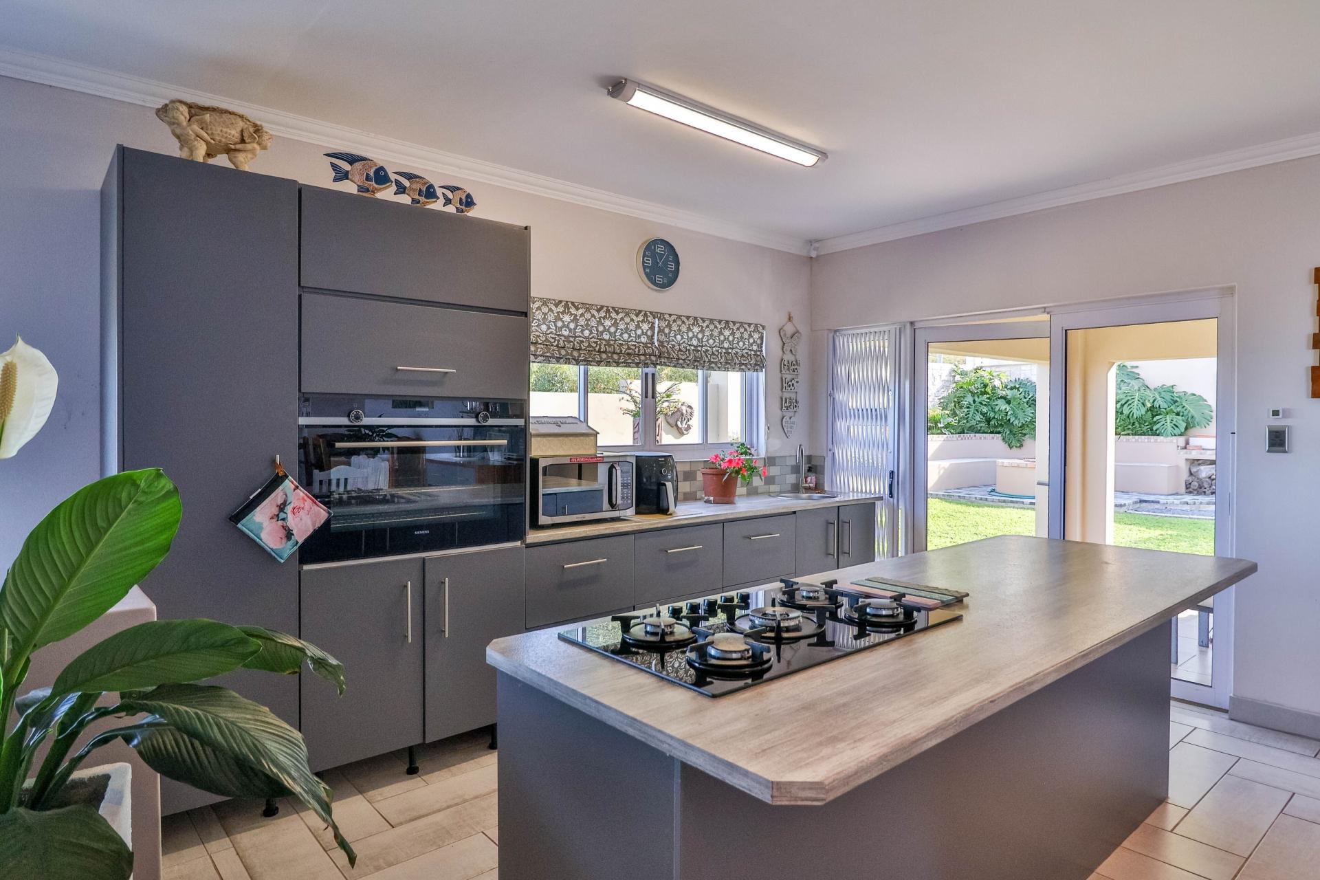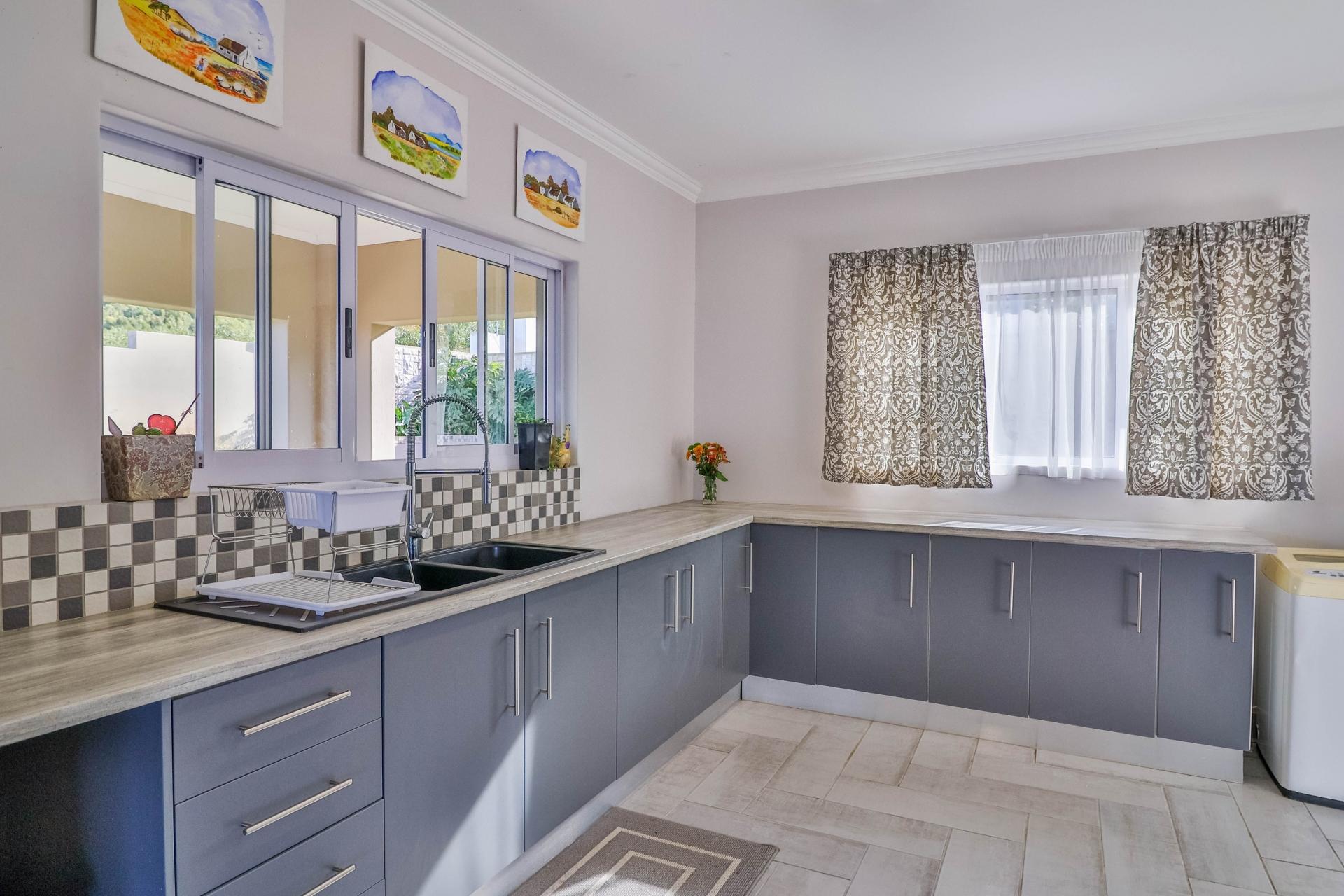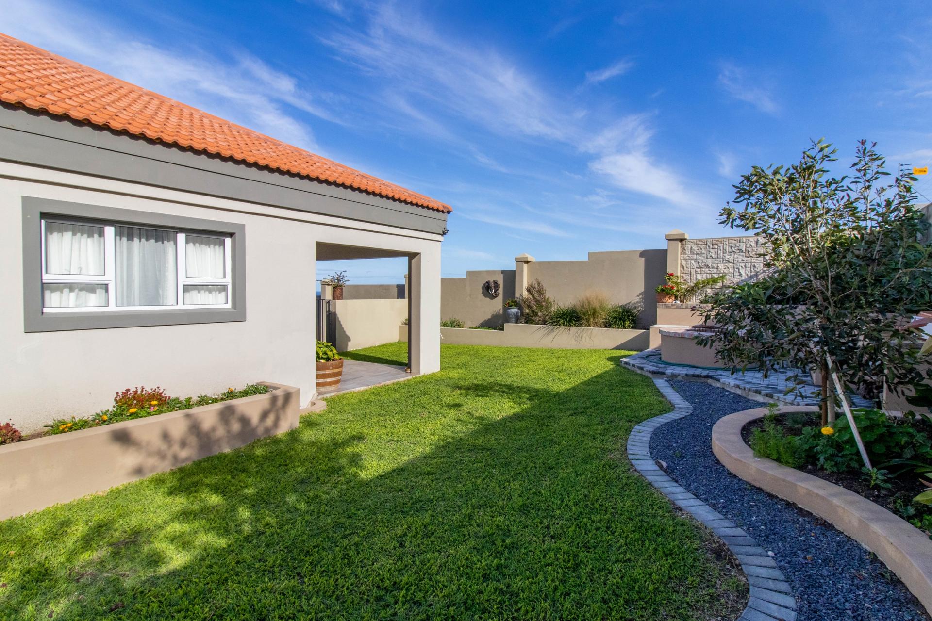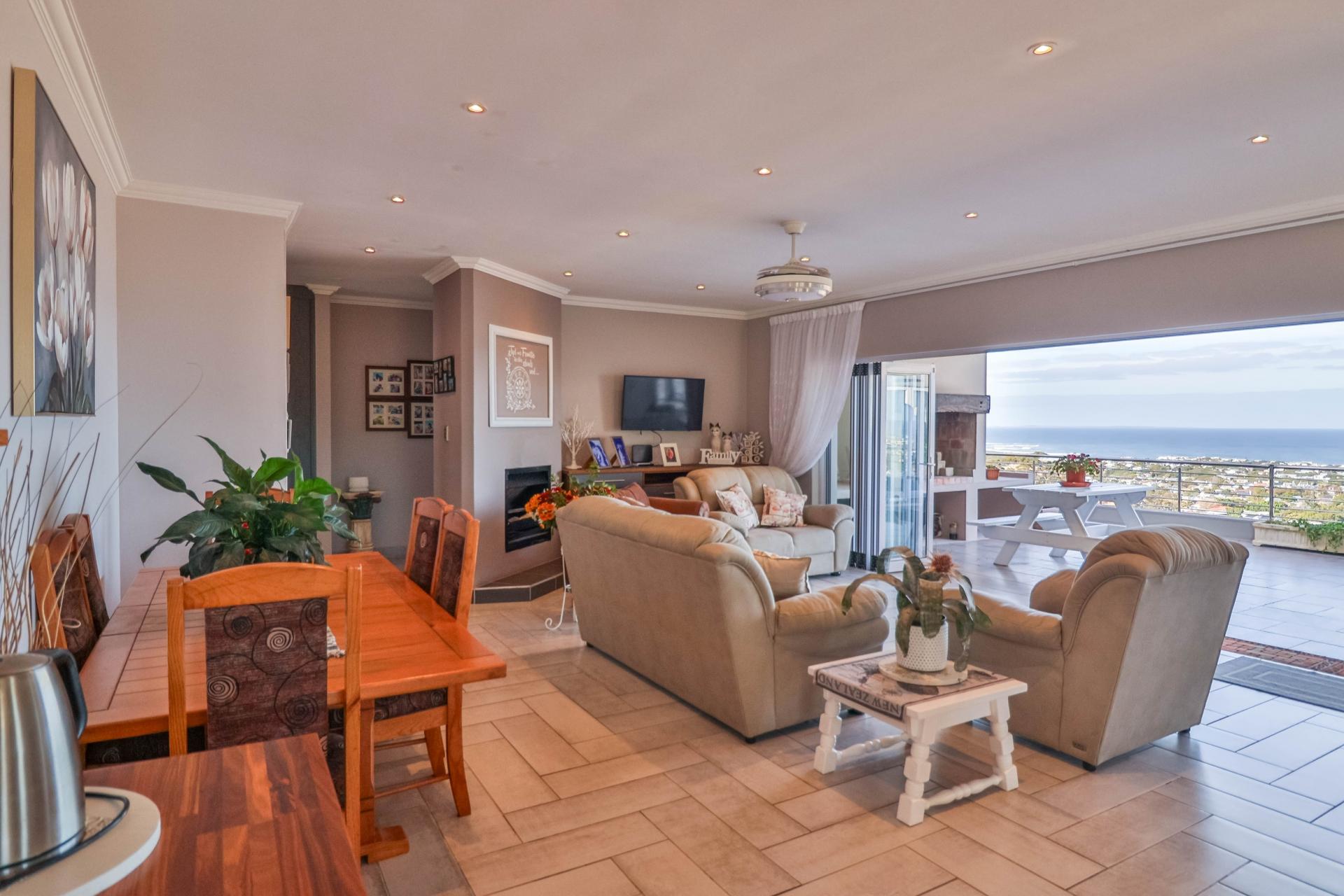 The well-maintained garden features a fire pit and scenic mountain views, creating a perfect retreat for outdoor enjoyment. The home also boasts 3 large garages on the lower level with direct access to the house and a spacious storeroom perfect for storing tools and outdoor items. Set within a secure and peaceful estate, this home offers the perfect blend of nature and convenience. Its prime location provides easy access to all amenities, including beaches, schools, wine farms, and restaurants.