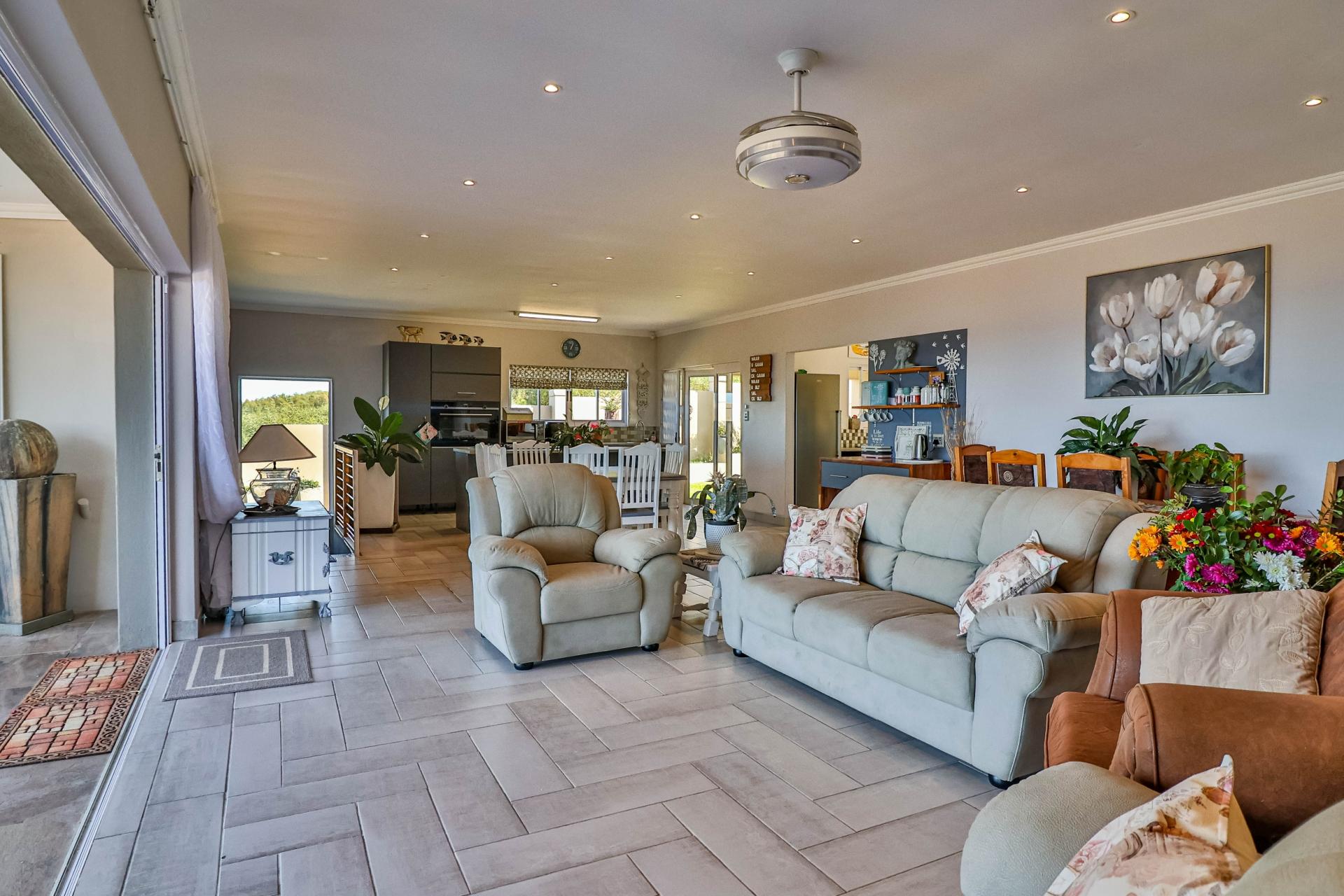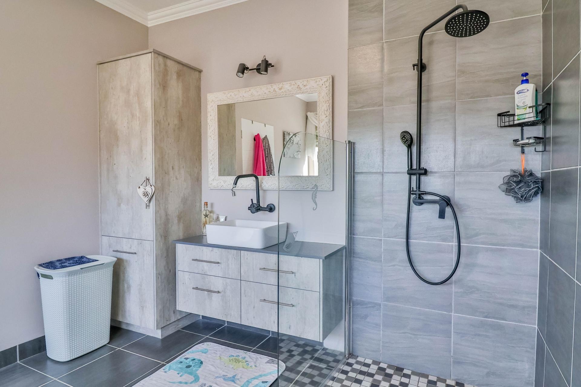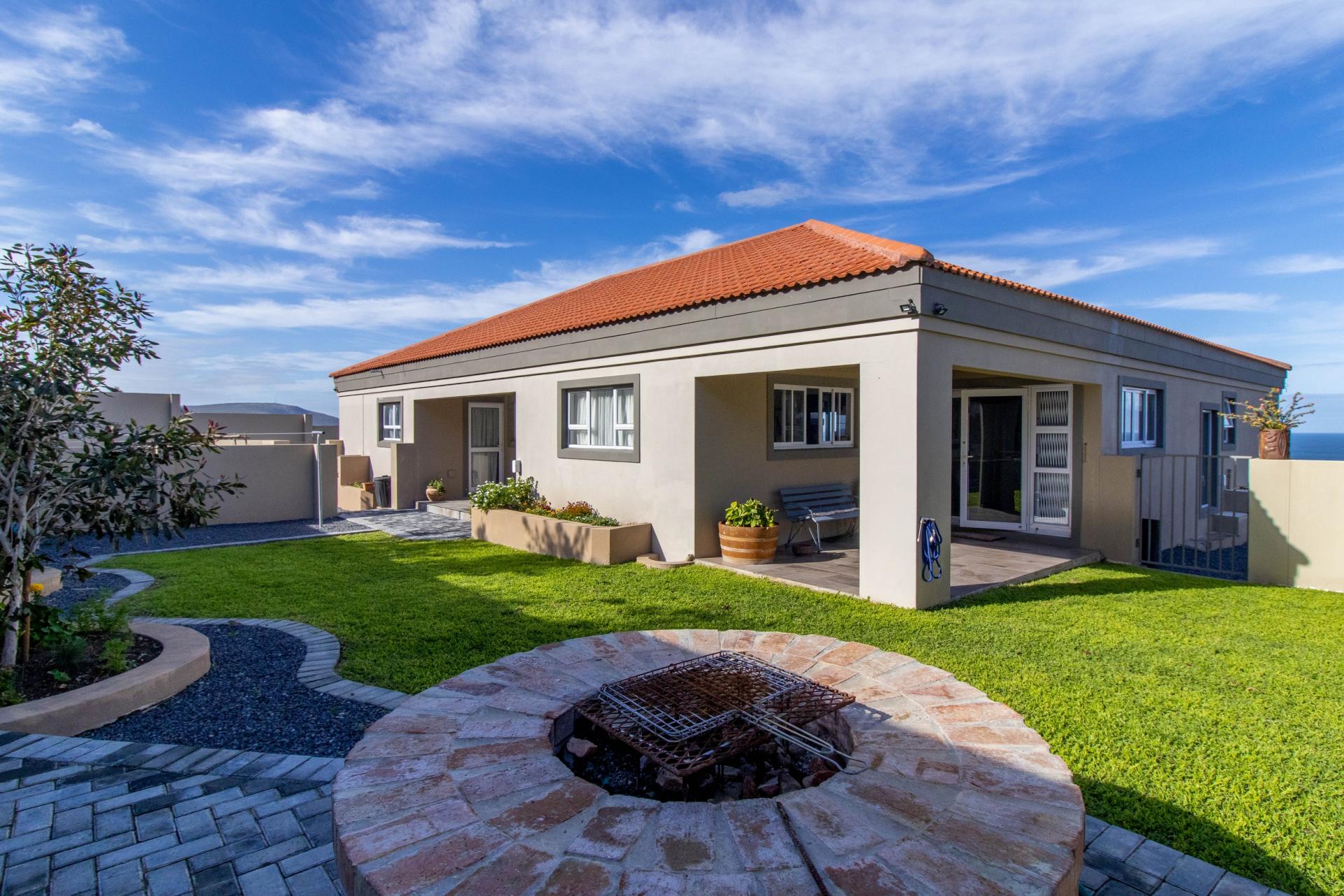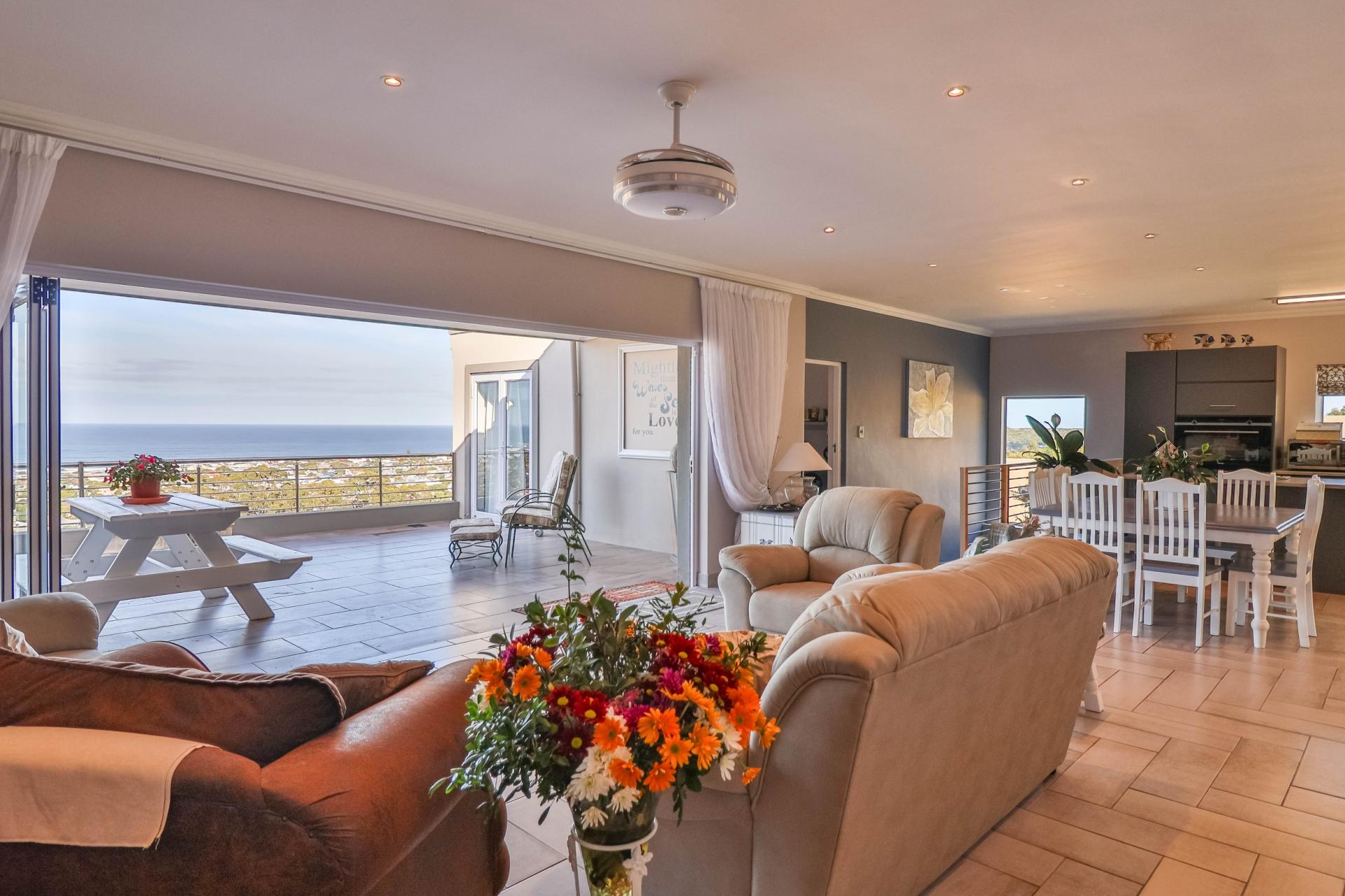 The well-maintained garden features a fire pit and scenic mountain views, creating a perfect retreat for outdoor enjoyment. The home also boasts 3 large garages on the lower level with direct access to the house and a spacious storeroom perfect for storing tools and outdoor items. Set within a secure and peaceful estate, this home offers the perfect blend of nature and convenience. Its prime location provides easy access to all amenities, including beaches, schools, wine farms, and restaurants.