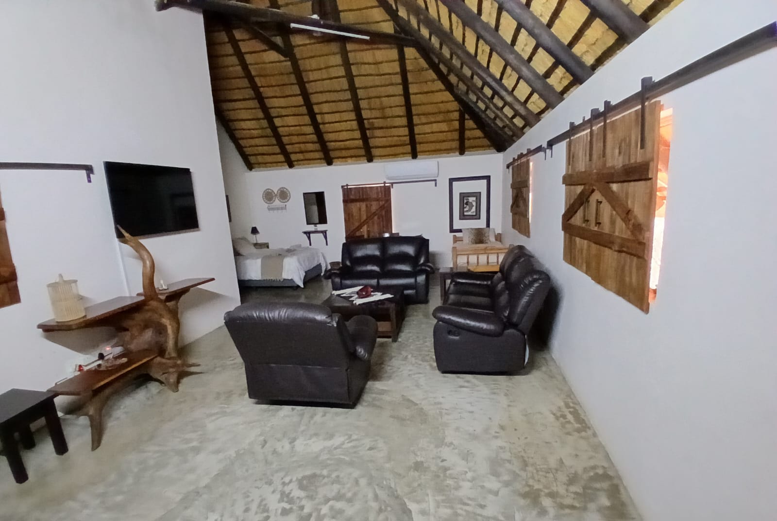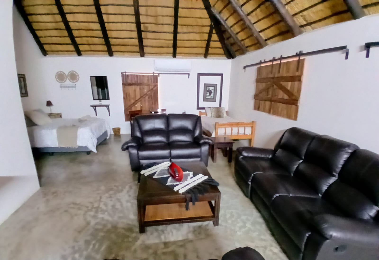 At the centtre of this property is the unique and truly enormous lapa with fold down canvas walls for cooler evenings. Built for relaxed open-air living and bush viewing while relaxing or entertaining. This expansive area includes: