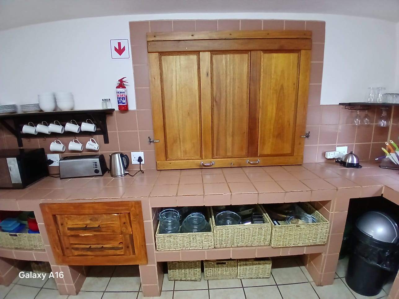 The well-planned kitchen is accessed from the outside, with a large serving window connecting directly to the built-in braai area in the Lapa, whether you're prepping meals or enjoying a sundowner, you are never far from the fun.