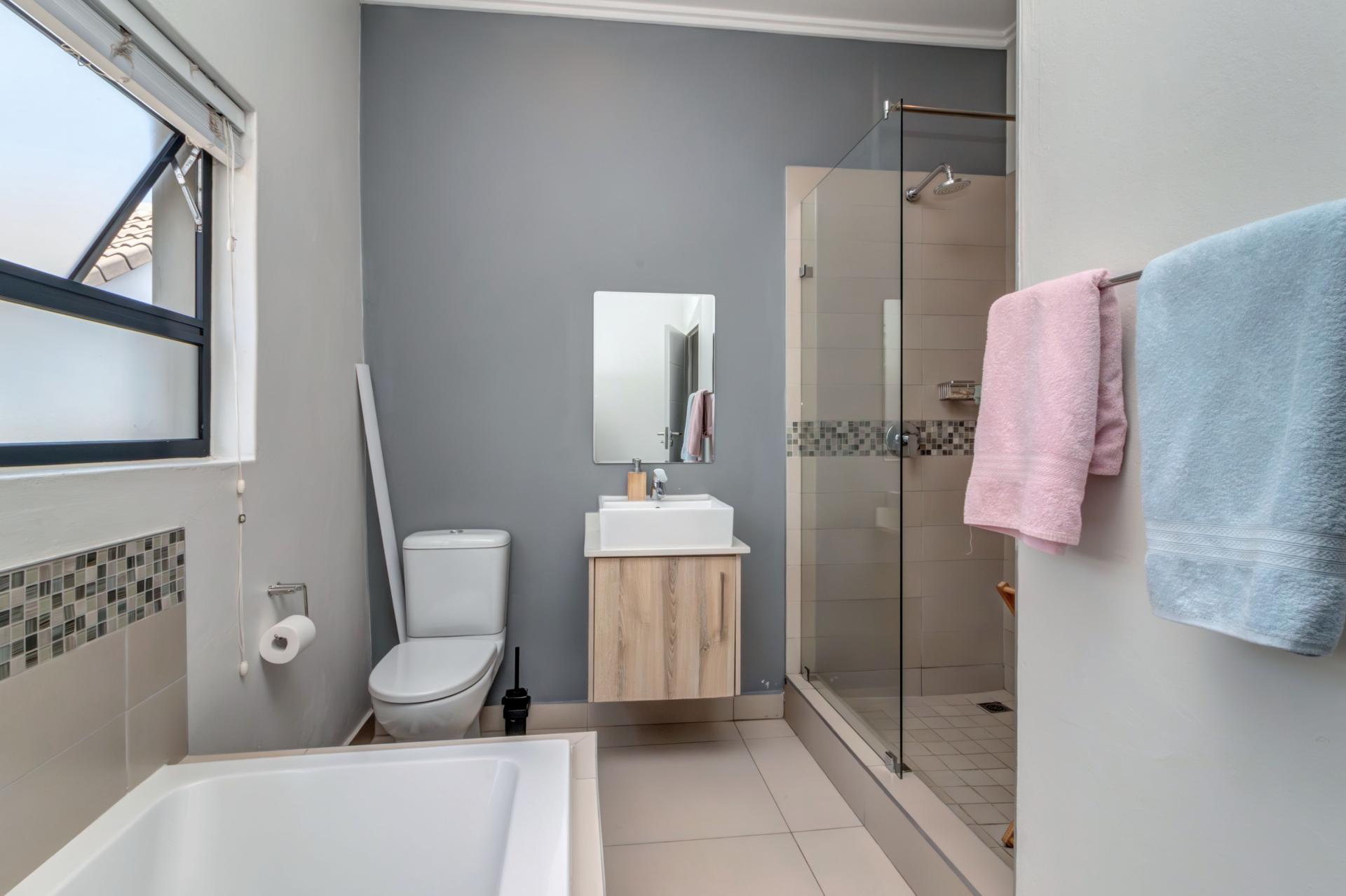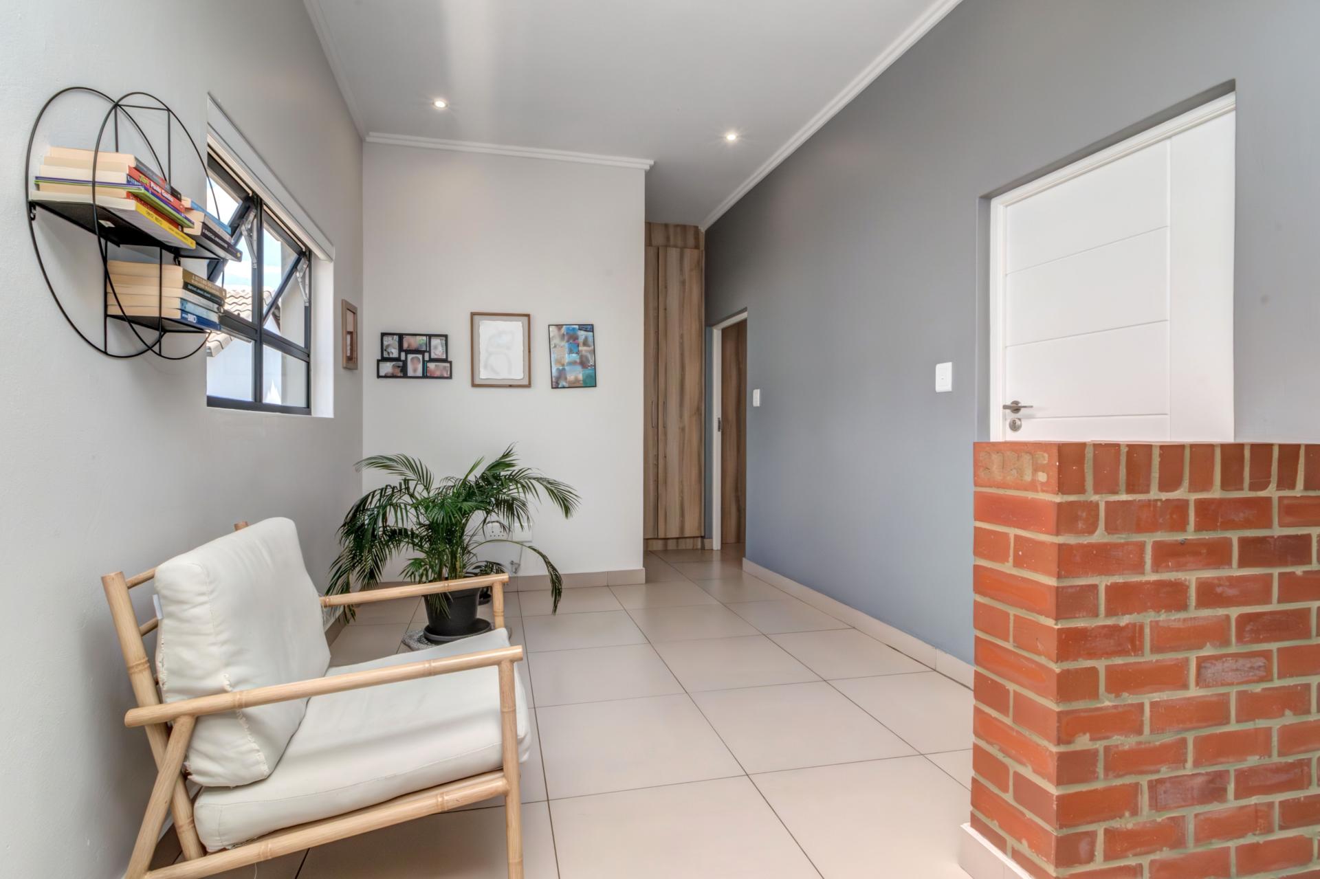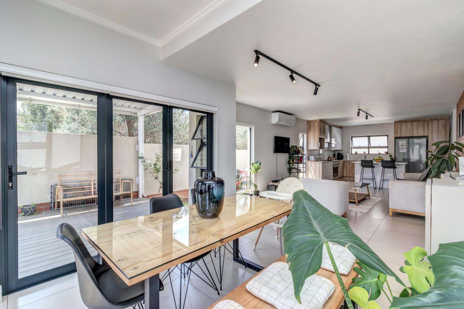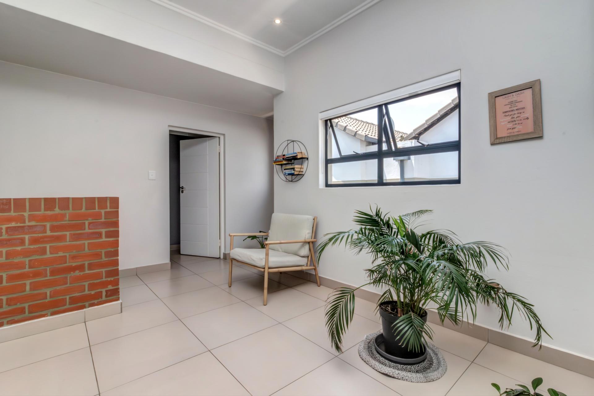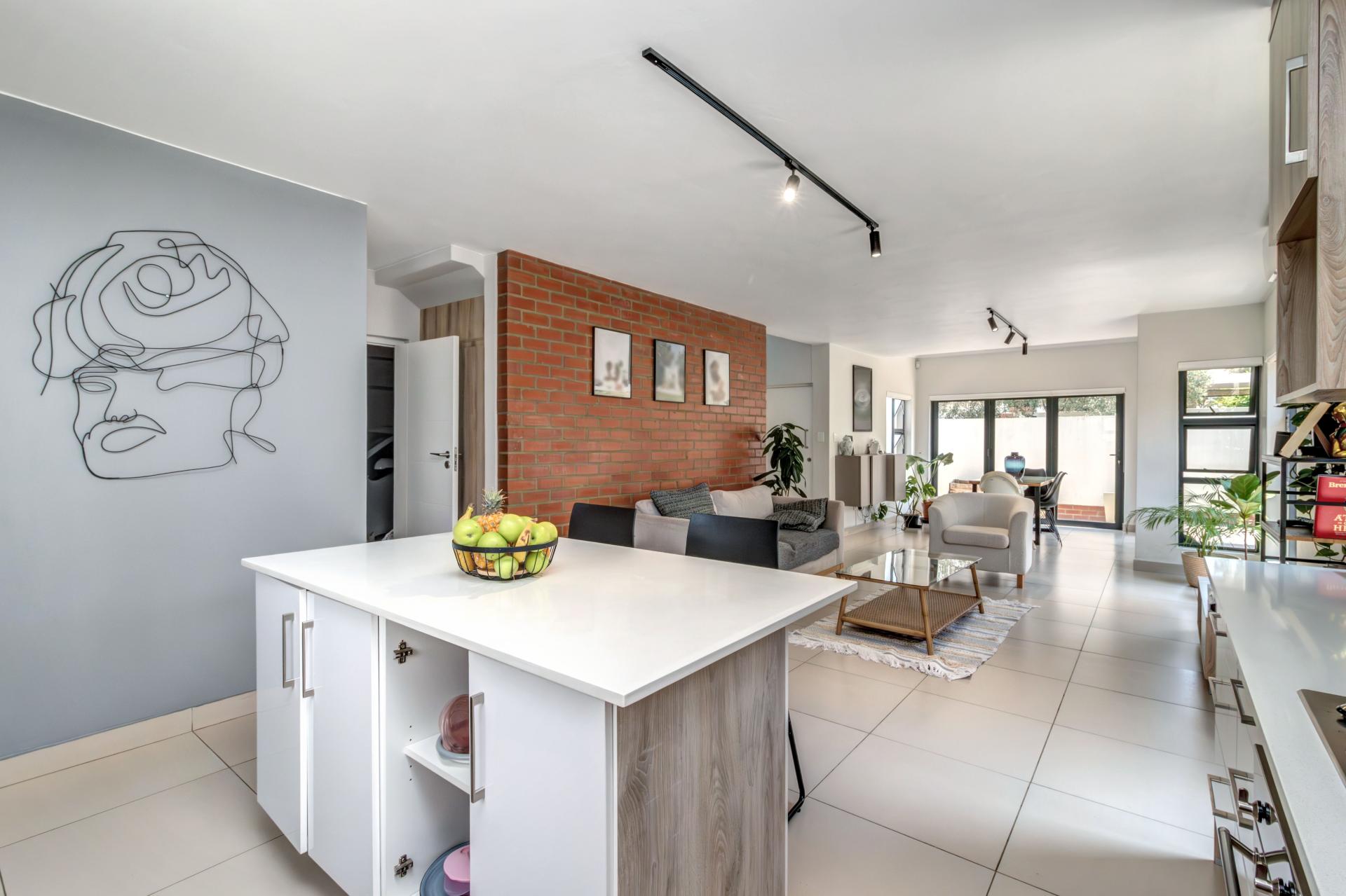 A lovely modern, spacious, and light property with a private garden is available for the discerning buyer. The property is situated in popular Valriche Estate in Broadacres and offers 3 bedrooms, 2.5 bathrooms and an open plan design. As one enters from the front door you are greeted with a modern, tiled, open plan lounge with feature wall and dining room area with an easy flow into the modern granite top kitchen. The kitchen has a built-in gas stove, ample cupboard space, and an additional space ideal for a laundry as well as a modern centre island with granite tops. The modern stack doors open to a private garden and patio area, making entertainment a breeze. Upstairs is 3 spacious bedrooms, all with built in cupboards and modern laminate flooring. The main bedroom has a full en-suite and there is also a full guest bathroom for the other 2 bedrooms to share. Added extras include a pyjama lounge upstairs and a double garage with direct access into the house.