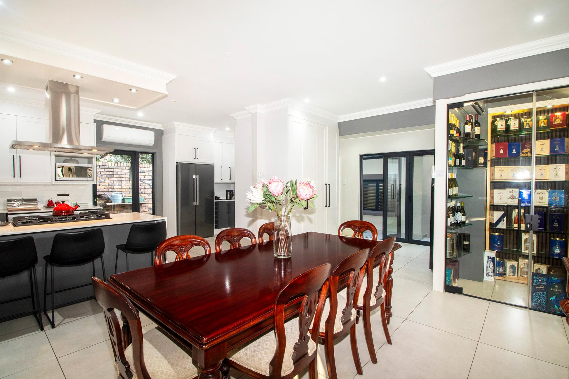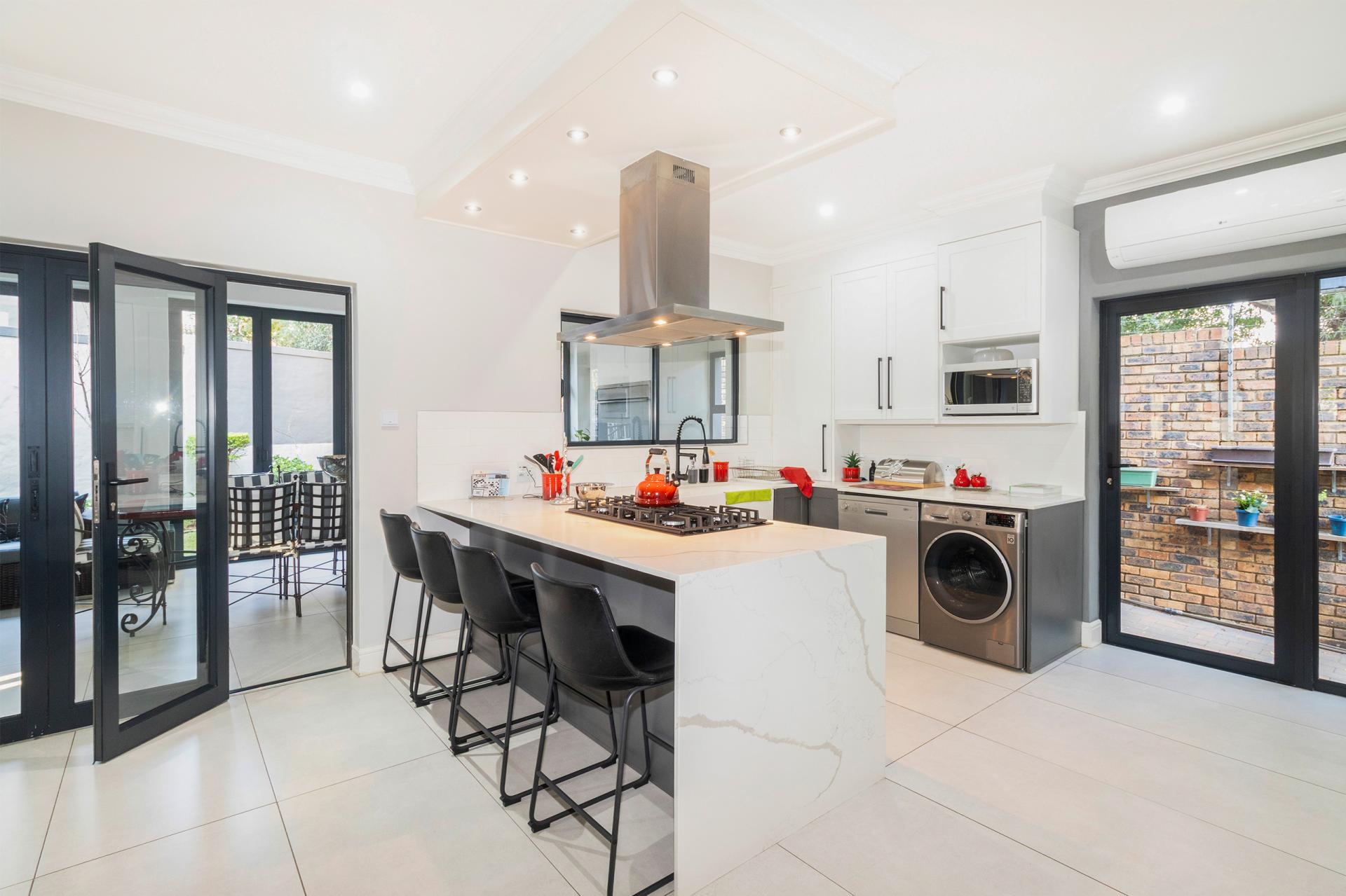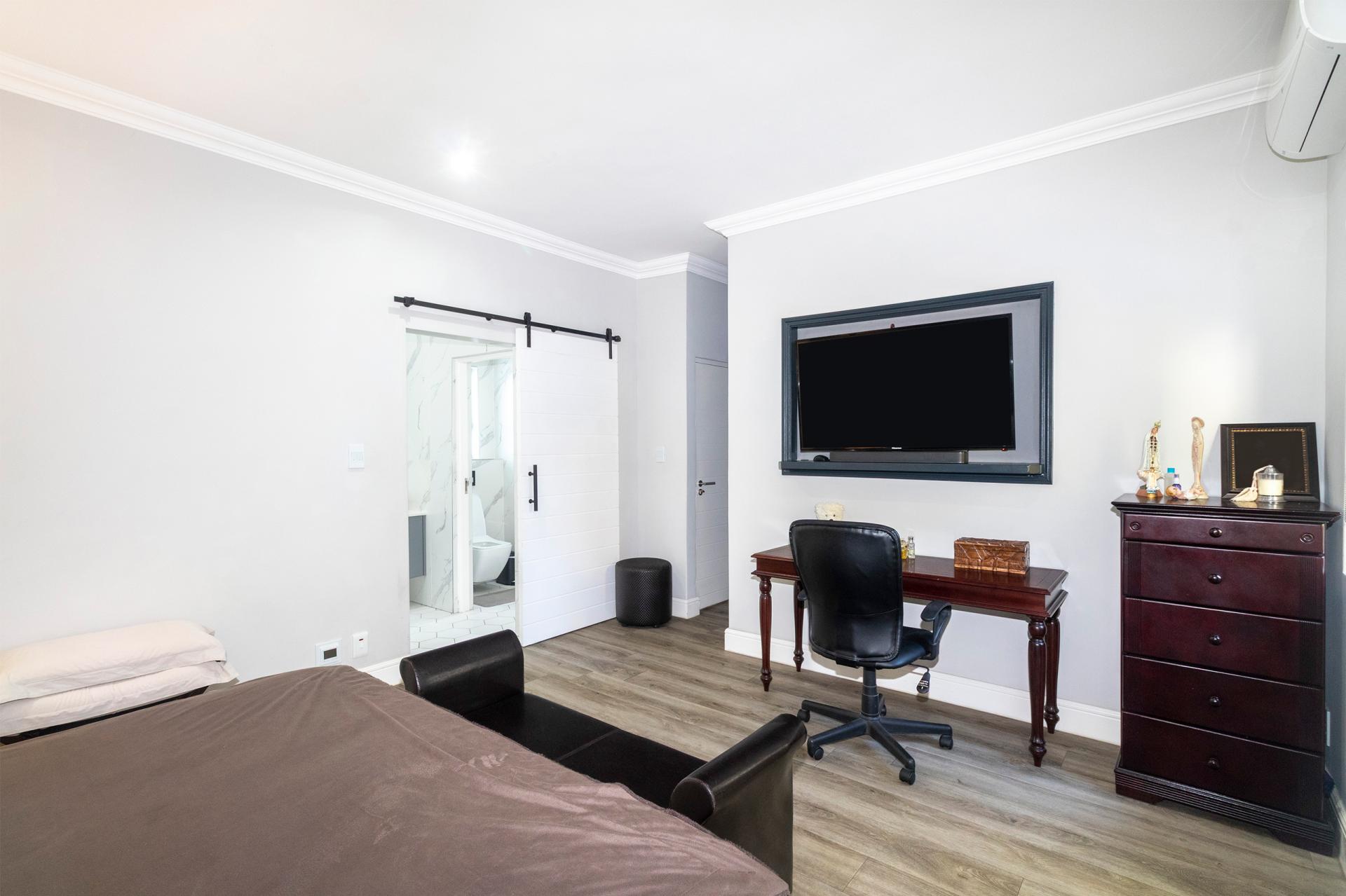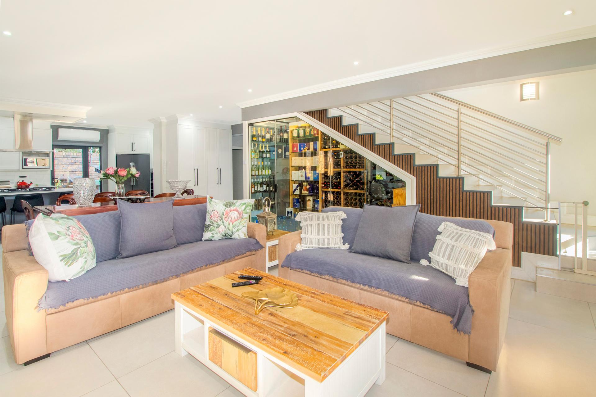 All three bedrooms are en-suite, offering privacy and comfort, while a stylish guest bathroom and large dedicated study add to the home’s convenience. The open-plan lounge and dining area flows effortlessly into a beautiful, well-appointed kitchen featuring a large gas stove — ideal for both everyday family meals and entertaining. From here, the living spaces extend into a fully enclosed entertainment patio, complete with a custom-built bar — perfect for hosting guests all year round. A cozy pajama lounge offers a secondary living area for relaxed family time.
